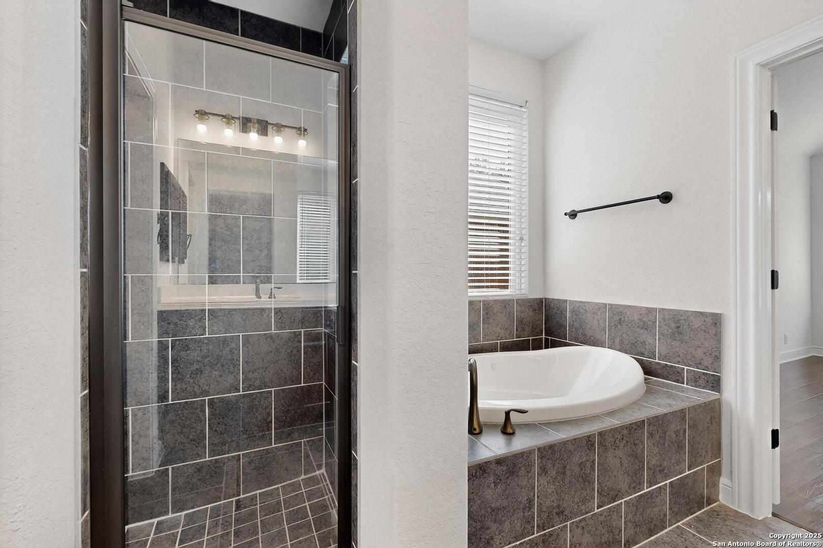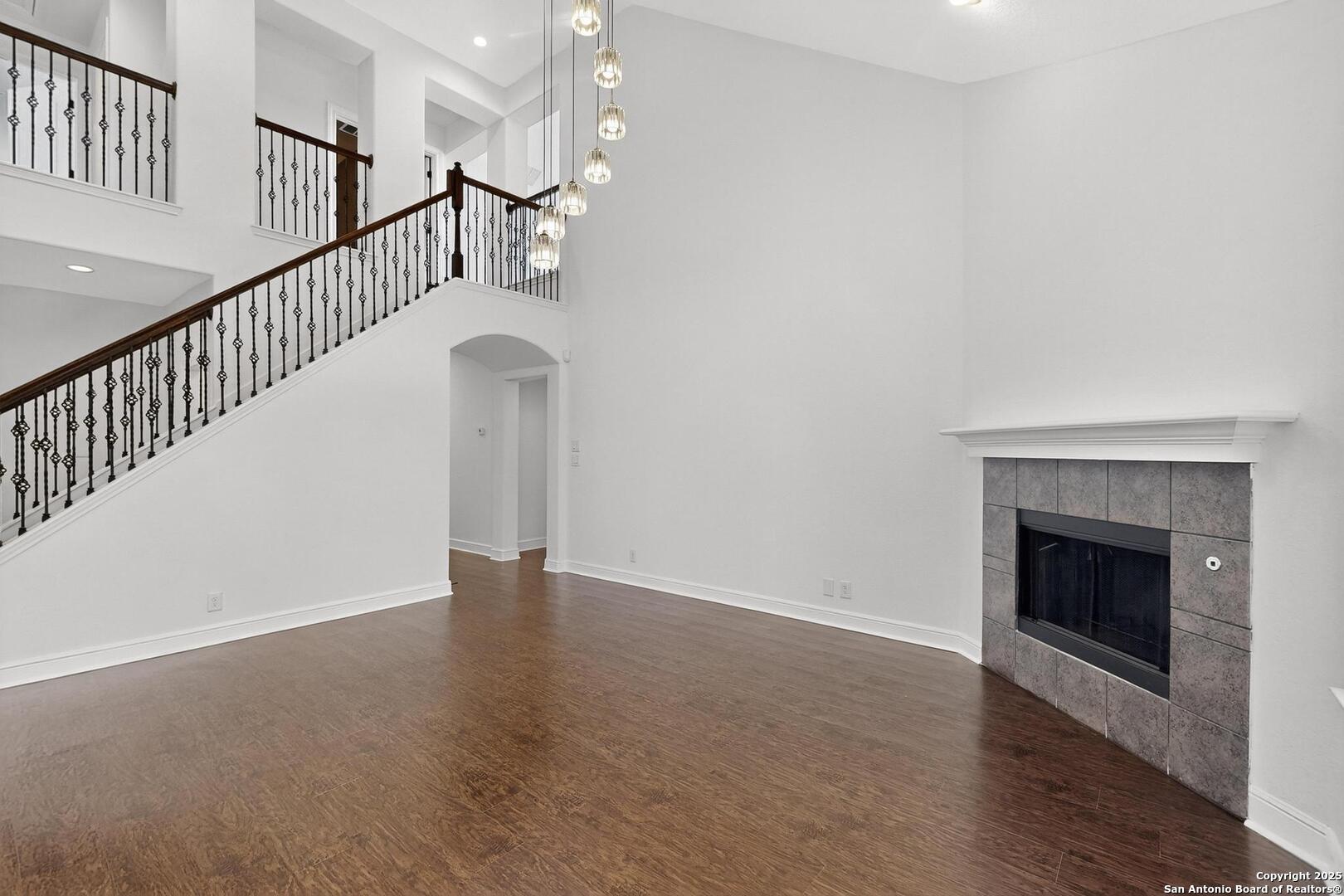 Gorgeous two-story home in the peaceful, gated community of Valencia Hills, offers both security and tranquility on a cul-de-sac lot. Step inside to a light and bright open floor plan that welcomes you with its spacious layout. Recent updates include fresh interior paint, updated flooring, and stylish decorative lighting throughout, giving the home a modern and inviting feel. The generous living room, with high ceilings boasting a cozy fireplace, seamlessly flows into the open kitchen, where you'll find a breakfast bar, stainless steel appliances, including gas cooking, and ample counter and cabinet space. The adjoining dining area offers beautiful backyard views, making it a perfect spot for meals. The primary suite on the main floor features an ensuite bath with a relaxing whirlpool tub, separate shower, and plenty of space for unwinding. Entry area has a flex room that could be extra dining or an office area. A beautiful wrought-iron staircase leads to the second floor, where you'll find a media room, a game room, and additional bedrooms, providing plenty of space for entertainment and relaxation. The backyard is a private retreat with a tall stone fence, natural trees, and a covered patio with a gas hook-up feature for a grill, ideal for outdoor gatherings. The large lawn offers room for recreation or gardening, adding to this home's appeal for everyday living. No neighbors behind the house. Don't miss the opportunity to make this your next home, book your personal tour today!