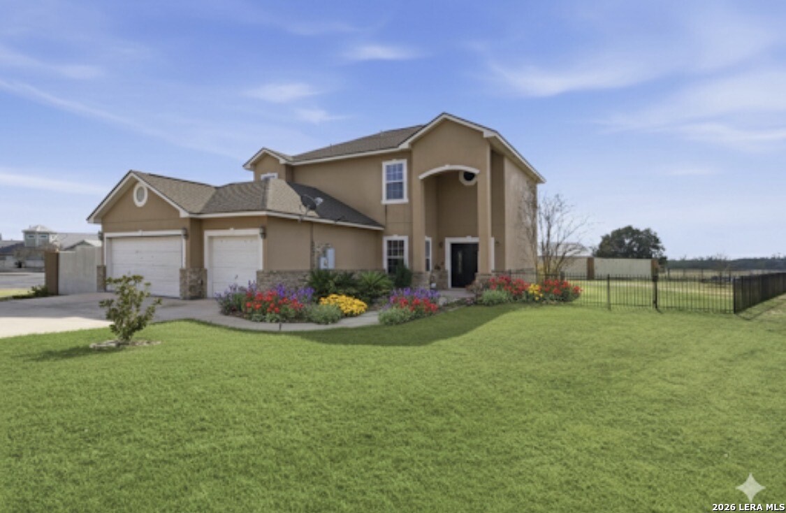 Highly motivated seller-bring offers! Stunning corner-lot home on an oversized lot with custom Craftsman finishes throughout. This 4-bedroom, 5-bath residence features an office/study that can serve as a 5th bedroom, a chef's kitchen with granite countertops, custom cabinetry, recessed and pendant lighting, and elegant shutter blinds. The expansive primary suite offers dual closets and his-and-hers bathrooms for ultimate privacy. Enjoy golf course views at the end of the 9th hole, just steps from the clubhouse and Lew's Patio & Grill-while still maintaining seclusion with a 7-ft custom masonry privacy wall. Two A/C units, easy San Antonio commute, and truly move-in ready luxury. ***Willing to help with some closing costs. ***