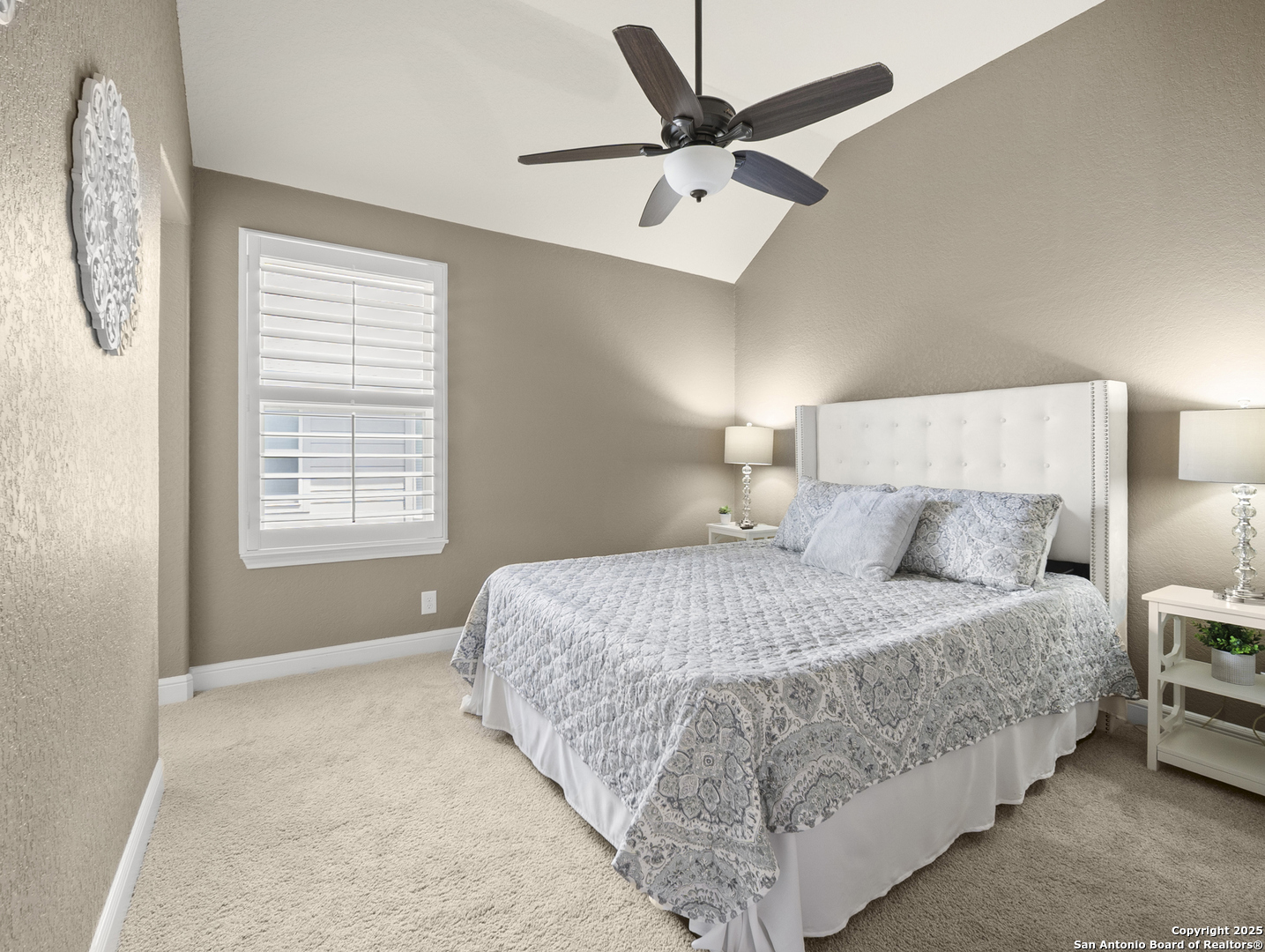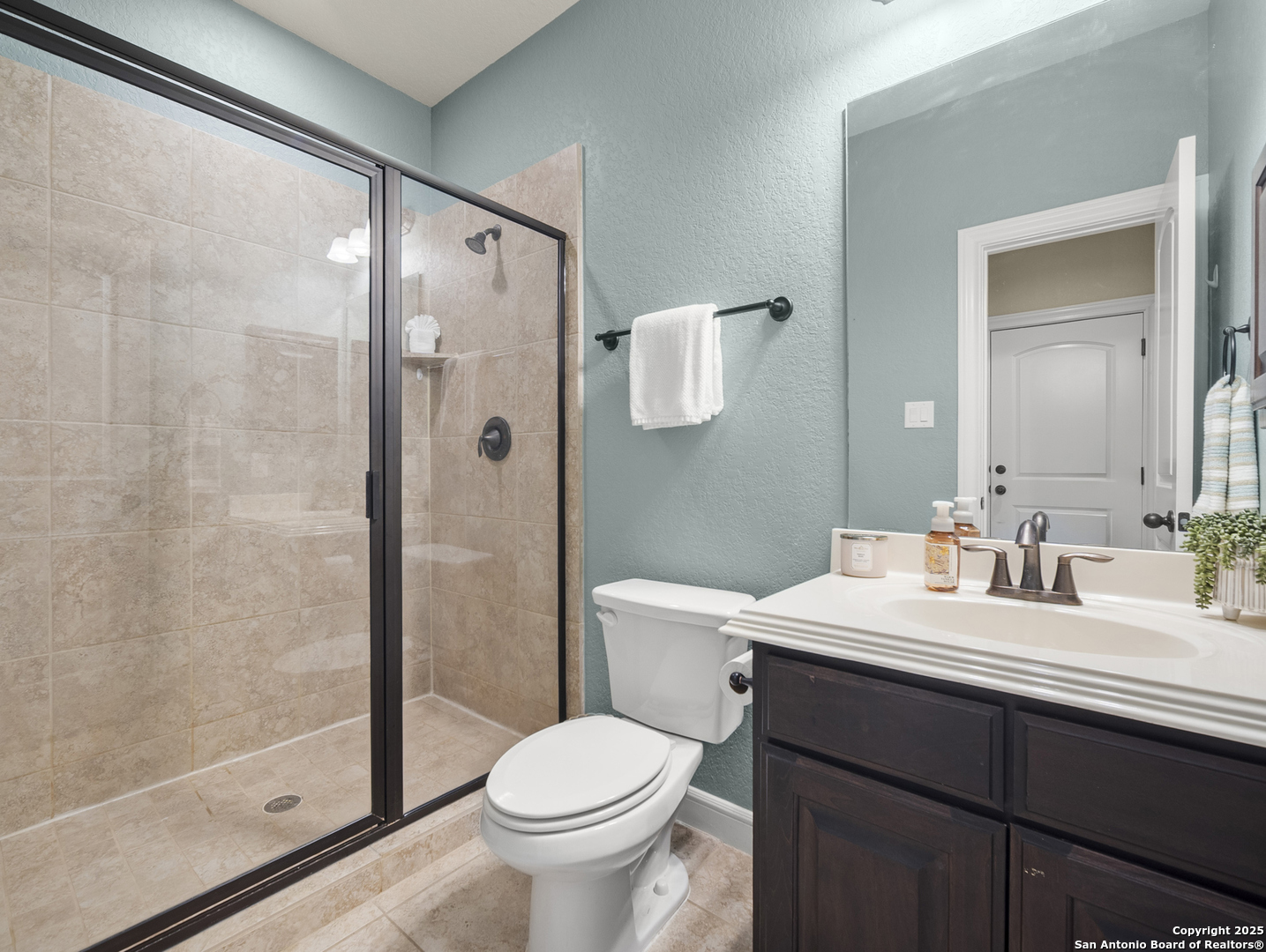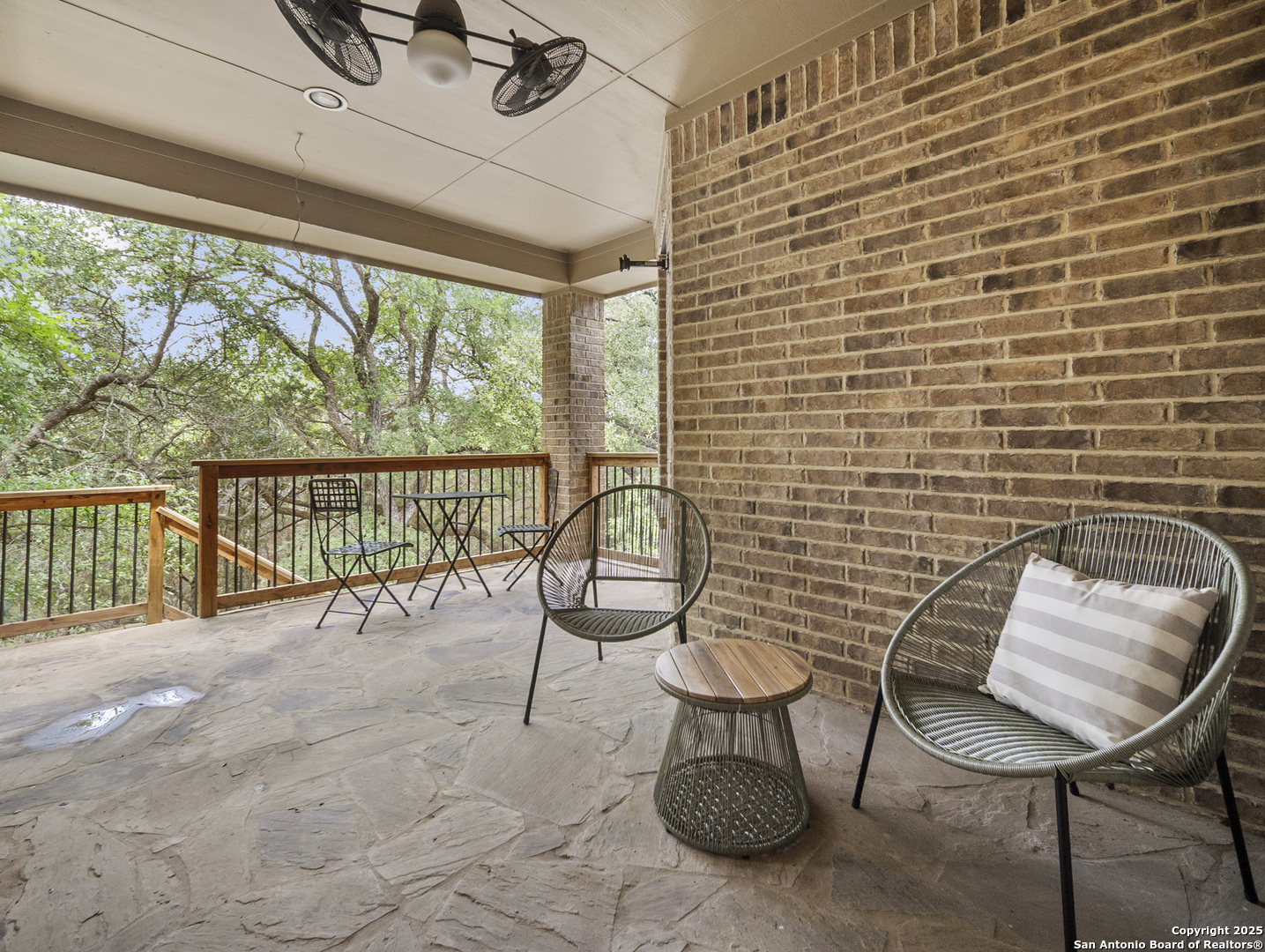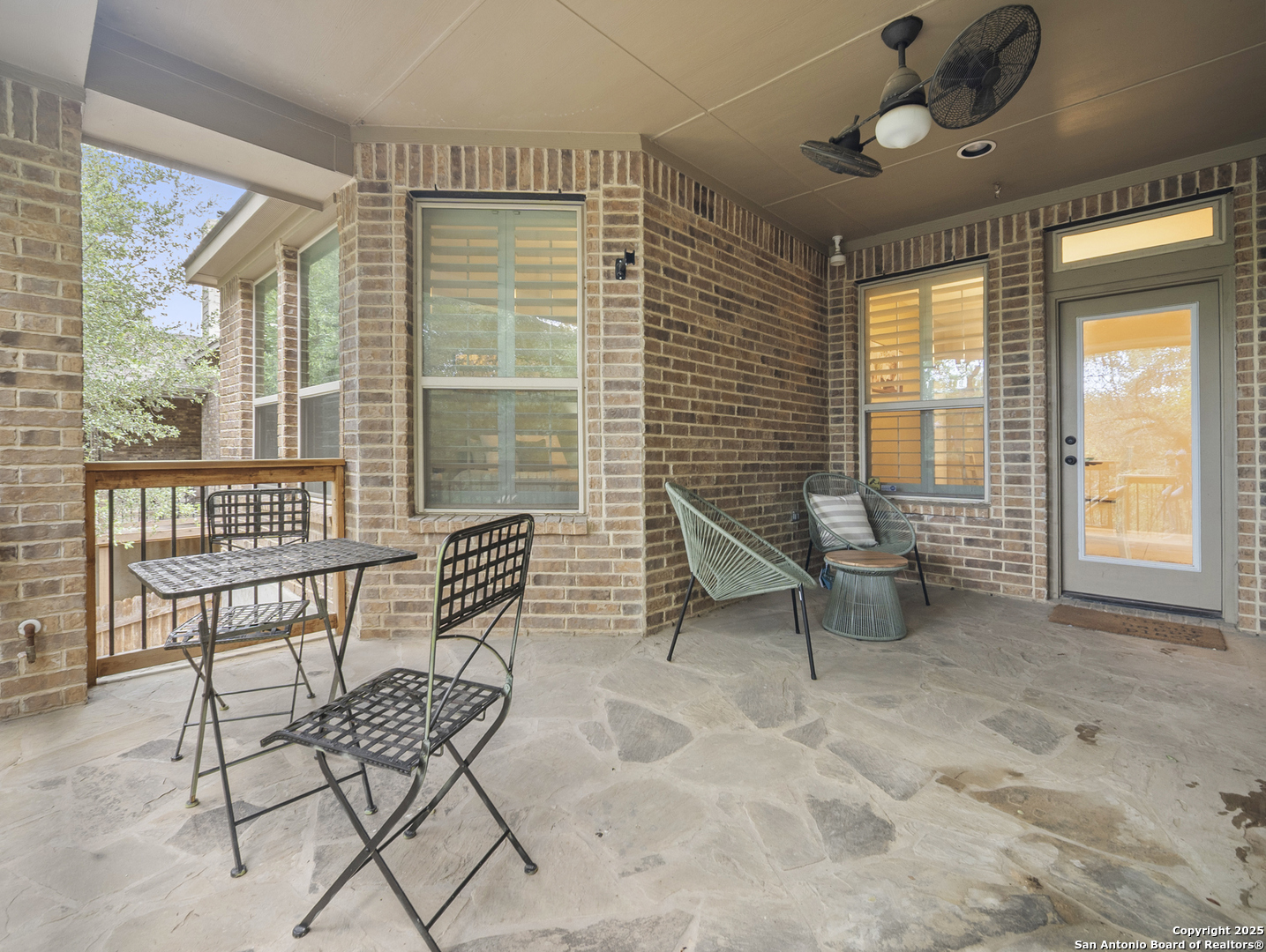 Beautifully maintained home in the gated community of Valencia Hills, offering comfort, space, and highly desirable NEISD zoning-Bulverde Creek Elementary, Tex Hill Middle, and Johnson High School. This property features a bright open layout with upgraded flooring, a private office ideal for remote work, and a dedicated media room with built-in surround sound. The chef's kitchen includes granite countertops, gas cooking, stainless steel appliances, abundant cabinetry, and a large island that opens to the main living area. The oversized primary suite provides a spacious retreat with double vanities and a generous walk-in closet. The backyard backs to a private greenbelt and includes an extended deck, covered patio, and ample room for outdoor living. Additional features include well-sized secondary bedrooms, a versatile upstairs living area, and a 2-car garage. Located minutes from Loop 1604, Highway 281, H-E-B, Costco, major shopping, dining, and employers. Ask about the preferred lender incentive with appraisal reimbursement after closing. Easy to show-schedule your tour today.