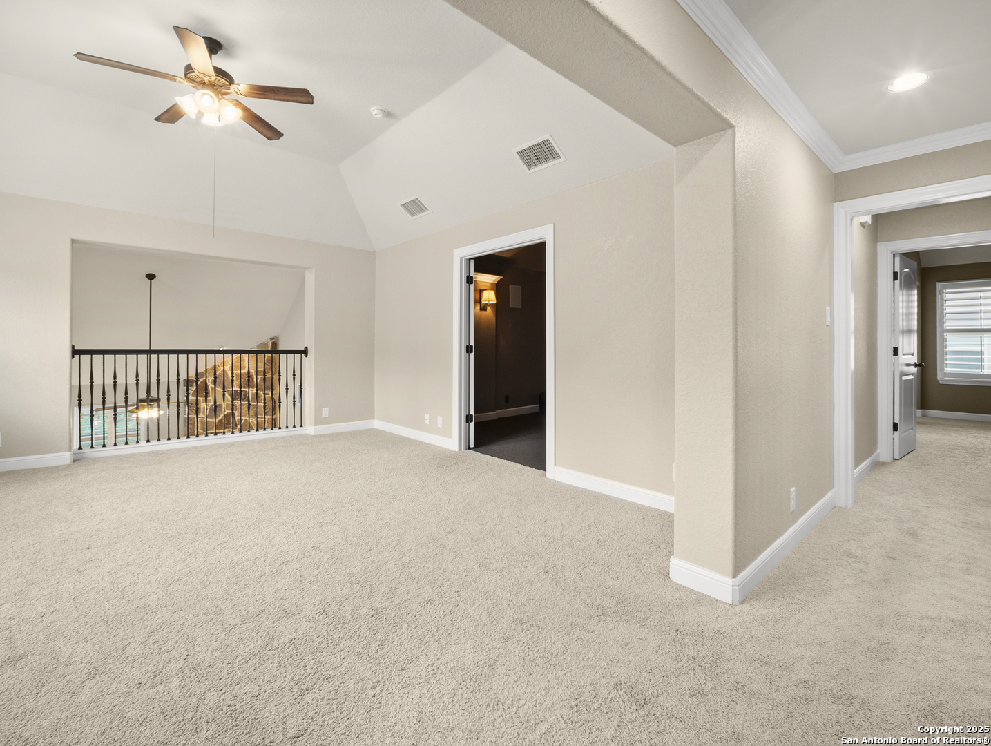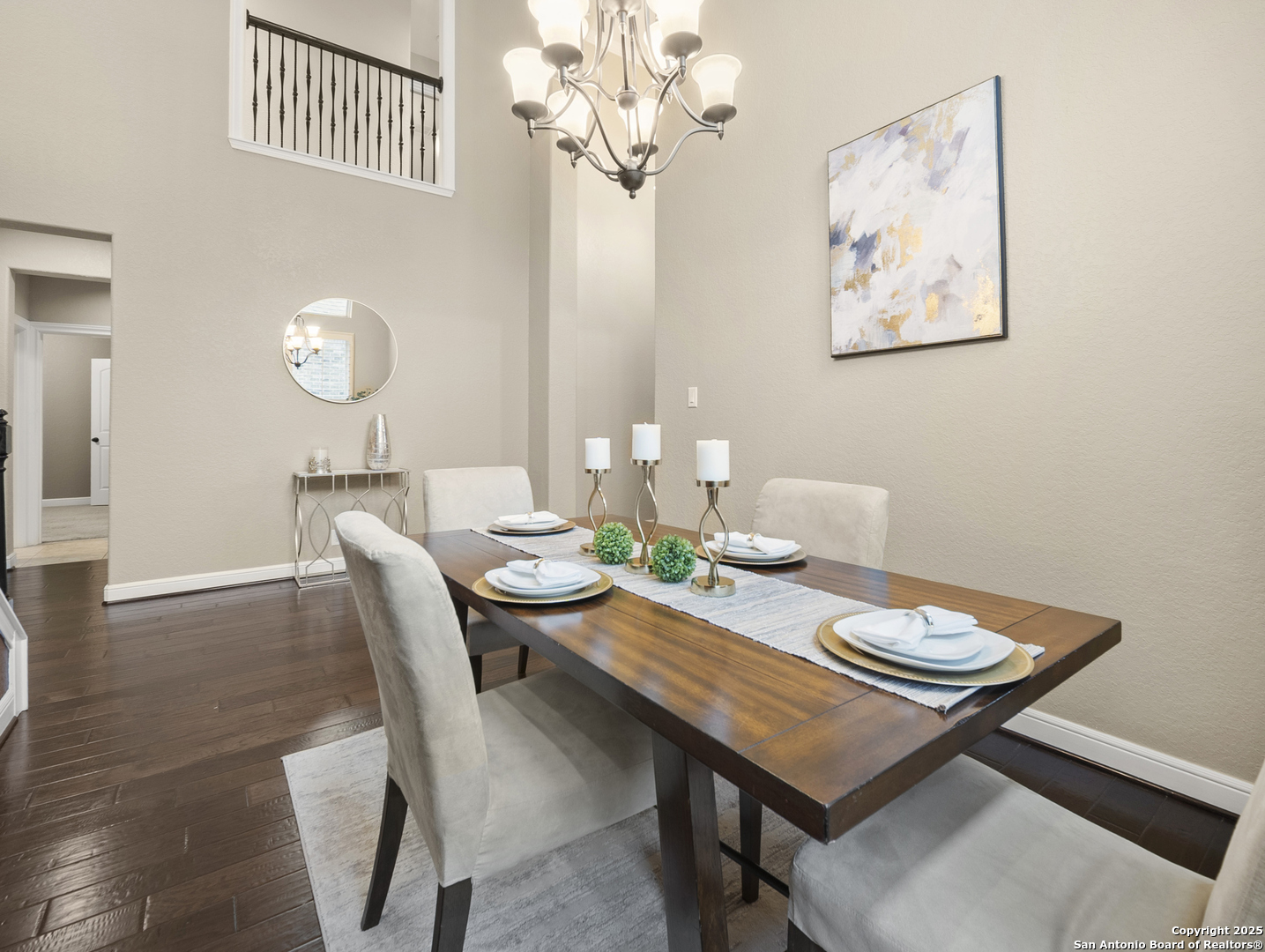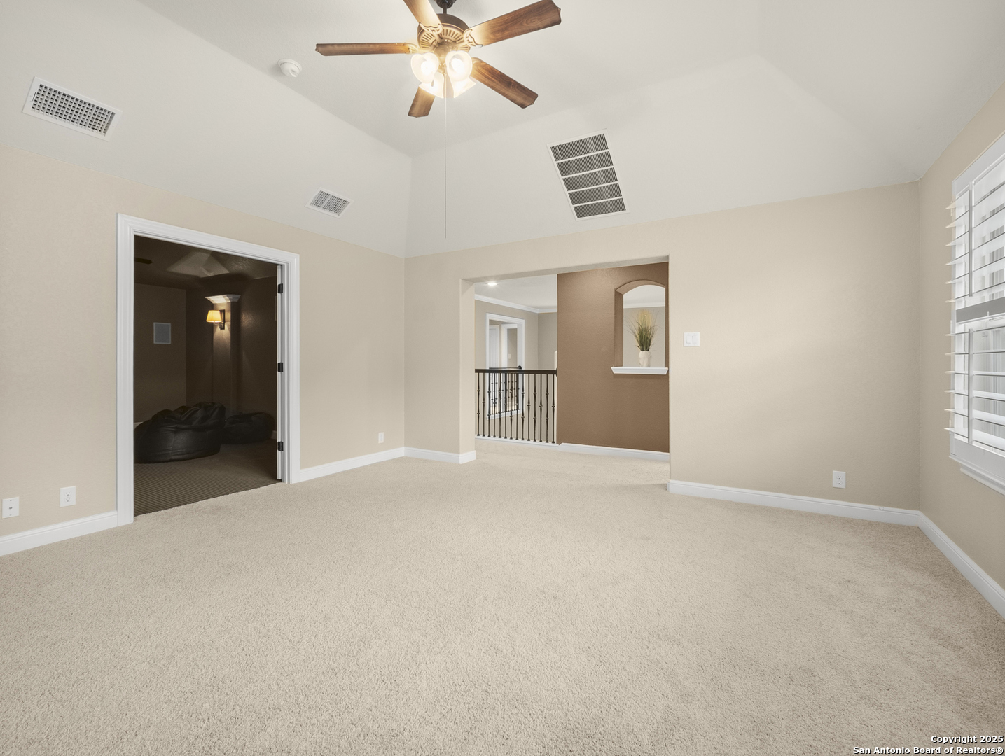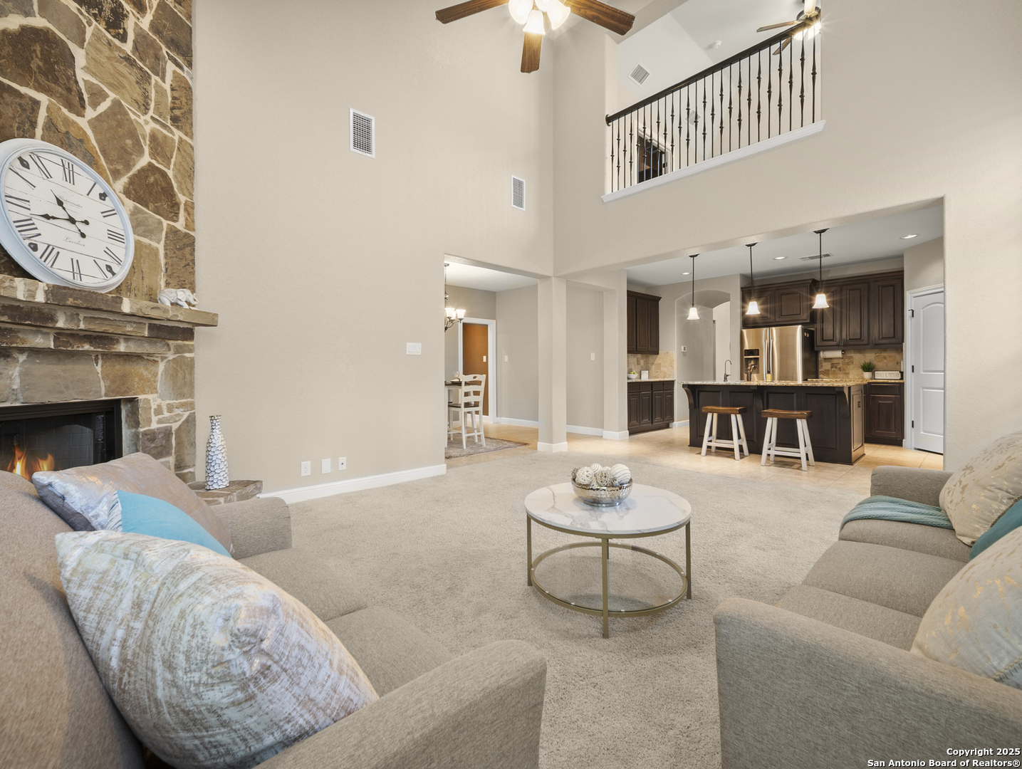 Beautifully maintained home in the gated community of Valencia Hills, offering comfort, space, and highly desirable NEISD zoning-Bulverde Creek Elementary, Tex Hill Middle, and Johnson High School. This property features a bright open layout with upgraded flooring, a private office ideal for remote work, and a dedicated media room with built-in surround sound. The chef's kitchen includes granite countertops, gas cooking, stainless steel appliances, abundant cabinetry, and a large island that opens to the main living area. The oversized primary suite provides a spacious retreat with double vanities and a generous walk-in closet. The backyard backs to a private greenbelt and includes an extended deck, covered patio, and ample room for outdoor living. Additional features include well-sized secondary bedrooms, a versatile upstairs living area, and a 2-car garage. Located minutes from Loop 1604, Highway 281, H-E-B, Costco, major shopping, dining, and employers. Ask about the preferred lender incentive with appraisal reimbursement after closing. Easy to show-schedule your tour today.