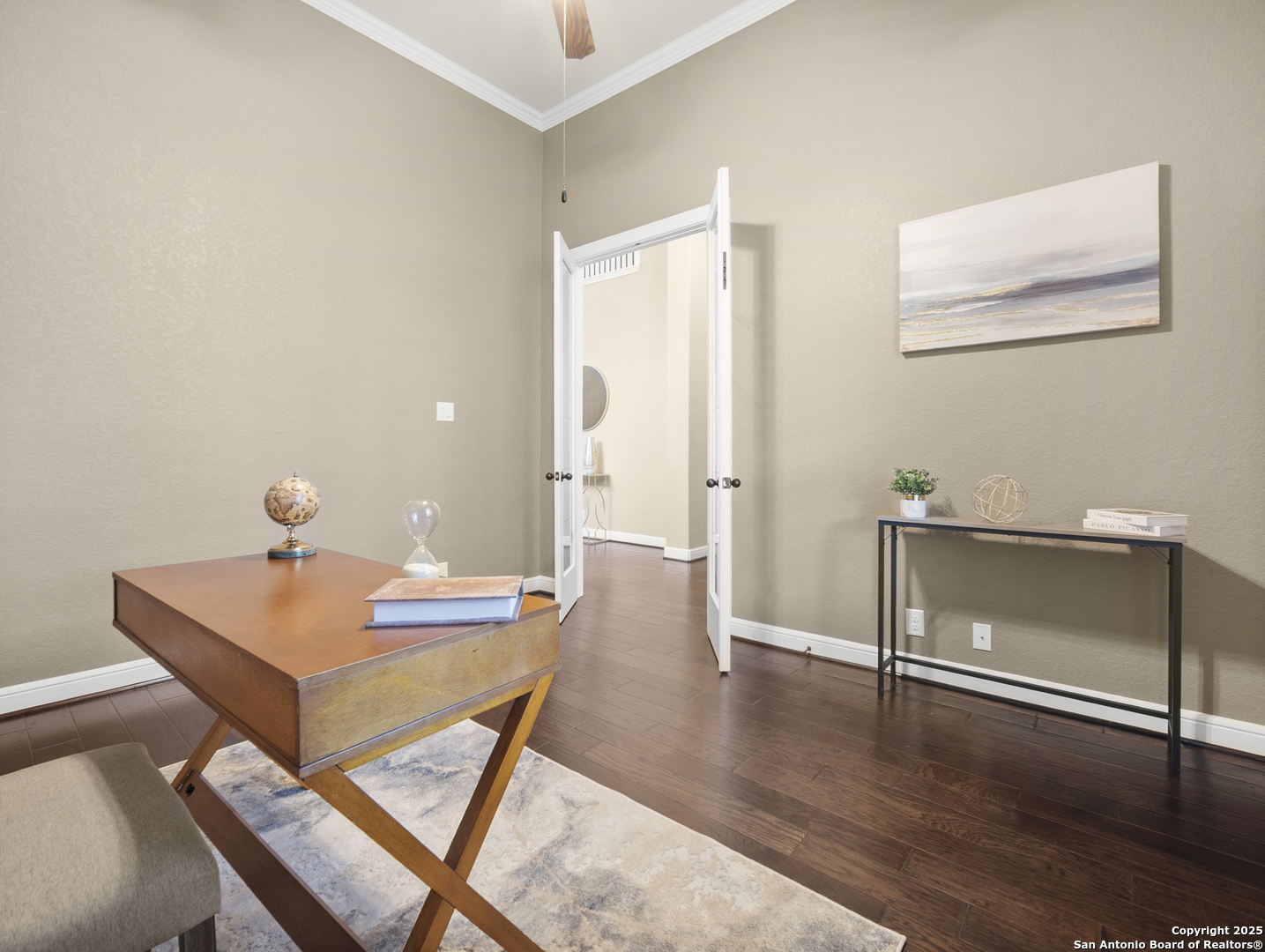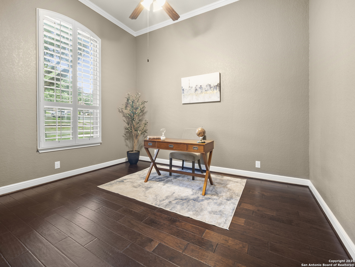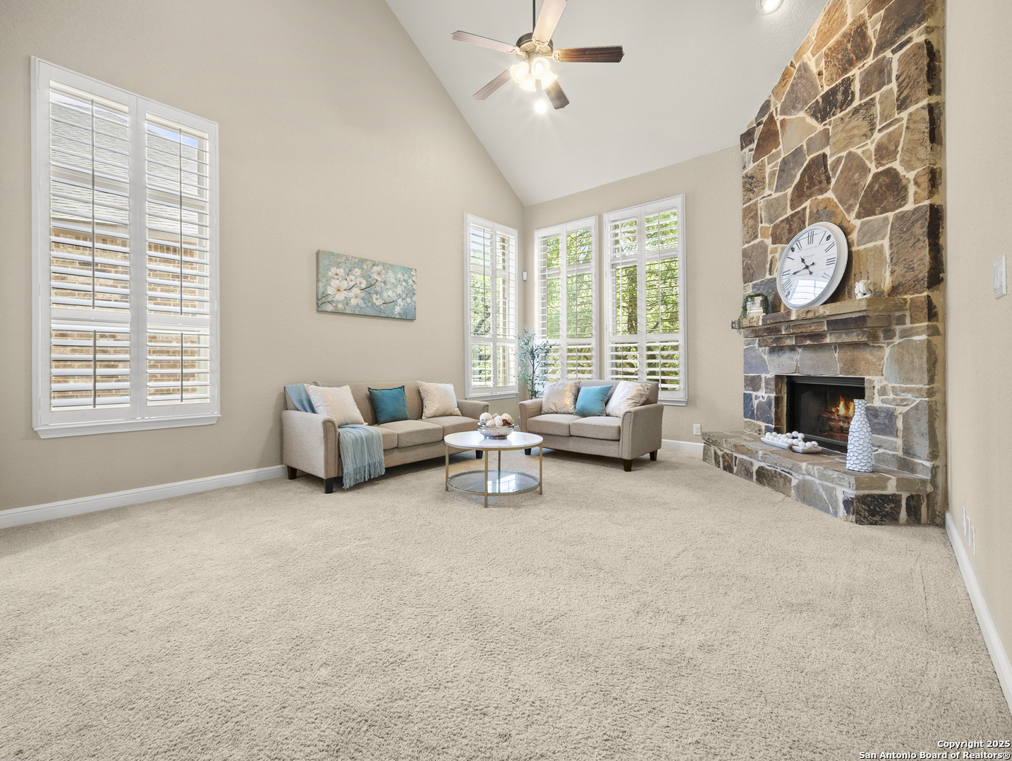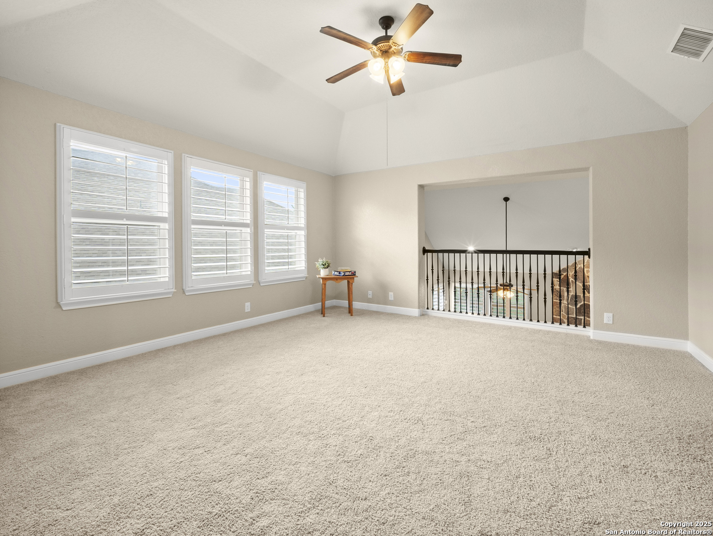 Beautifully maintained home in the gated community of Valencia Hills, offering comfort, space, and highly desirable NEISD zoning-Bulverde Creek Elementary, Tex Hill Middle, and Johnson High School. This property features a bright open layout with upgraded flooring, a private office ideal for remote work, and a dedicated media room with built-in surround sound. The chef's kitchen includes granite countertops, gas cooking, stainless steel appliances, abundant cabinetry, and a large island that opens to the main living area. The oversized primary suite provides a spacious retreat with double vanities and a generous walk-in closet. The backyard backs to a private greenbelt and includes an extended deck, covered patio, and ample room for outdoor living. Additional features include well-sized secondary bedrooms, a versatile upstairs living area, and a 2-car garage. Located minutes from Loop 1604, Highway 281, H-E-B, Costco, major shopping, dining, and employers. Ask about the preferred lender incentive with appraisal reimbursement after closing. Easy to show-schedule your tour today.