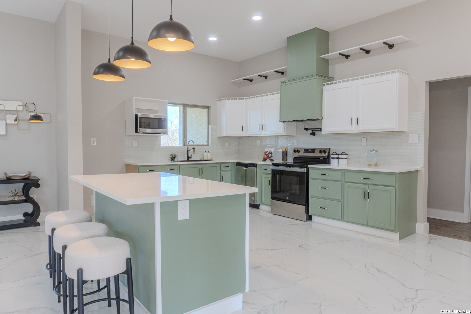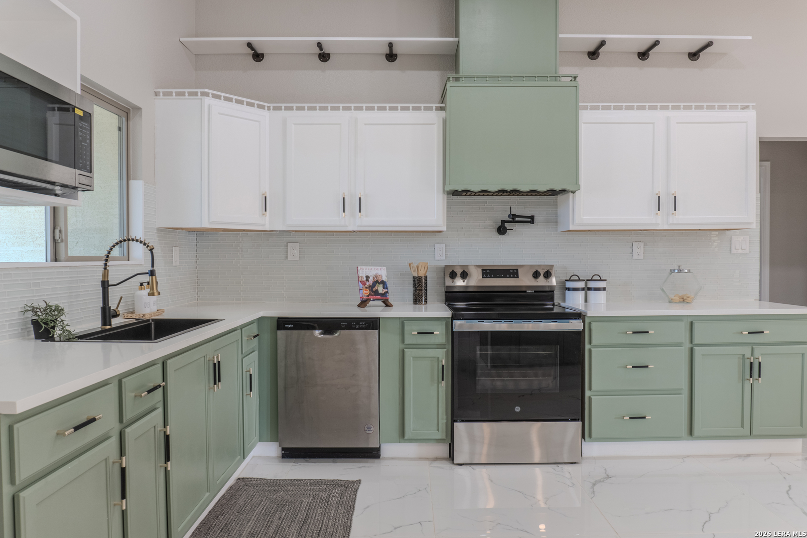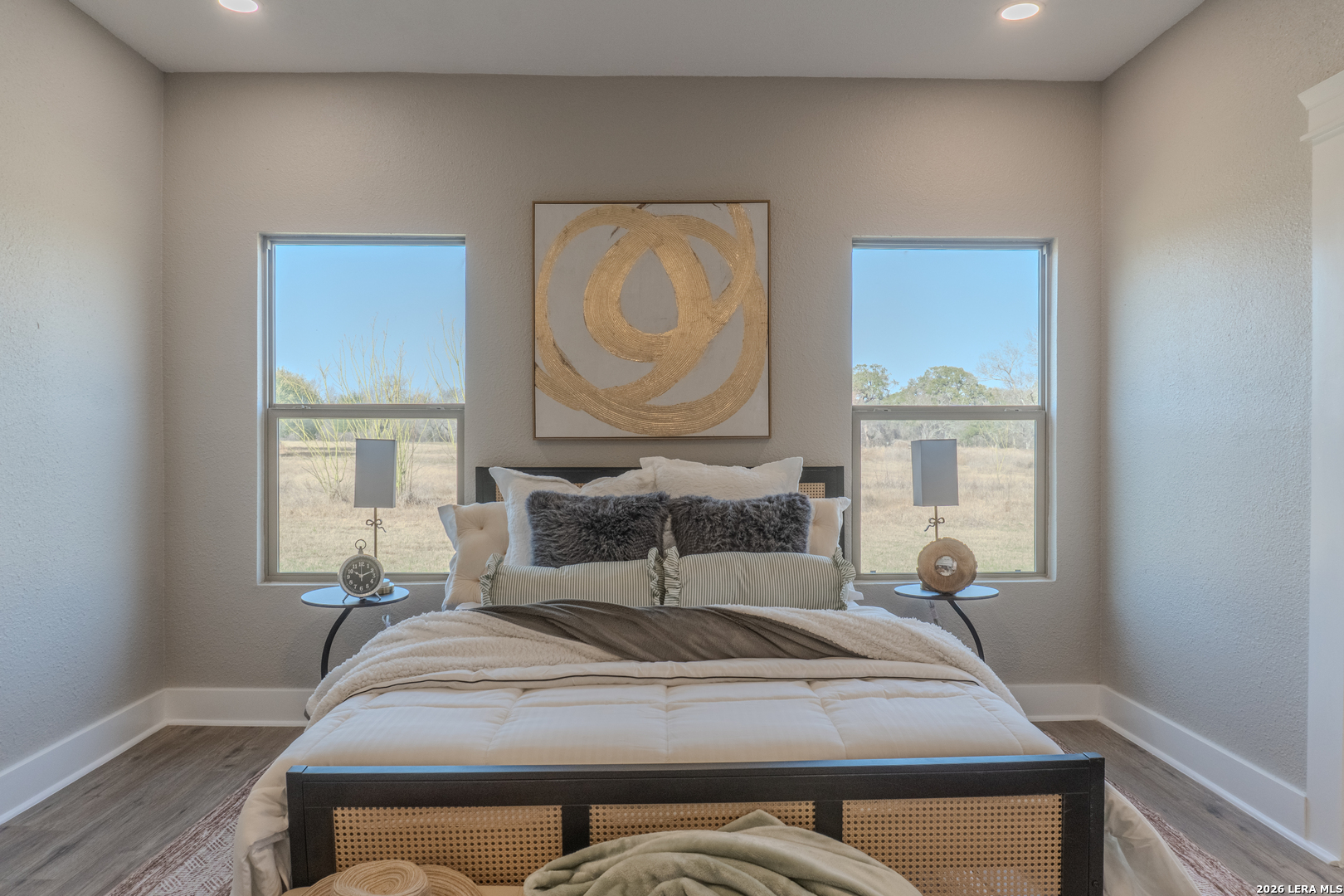 Brand-new ranch-style home, situated on a quiet cul-de-sac just minutes from San Antonio. Set on a spacious 0.75-acre lot in a community of large homesites, this property offers peaceful surroundings with convenient city access. The open-concept layout features soaring ceilings, abundant natural light, and stunning porcelain flooring throughout the main living areas. The living room includes an electric fireplace and scenic countryside views. The island kitchen is equipped with generous cabinetry, ample prep space, and a pot filler over the stove. Recent enhancements include custom closet shelving, added pantry shelving, and additional improvements that elevate both functionality and finish. Bedrooms and closets feature upgraded luxury vinyl flooring for durability and style. The primary suite offers a soaking tub, separate shower with newly installed sliding barn-style glass door, and a spacious retreat-like layout. Three additional bedrooms plus a dedicated office provide flexible living options. Enjoy the covered back patio with scenic views. USDA financing eligible with potential $0 down. Seller offering buyer closing cost assistance with preferred lender. New construction on acreage without the wait - ready for its first owner.