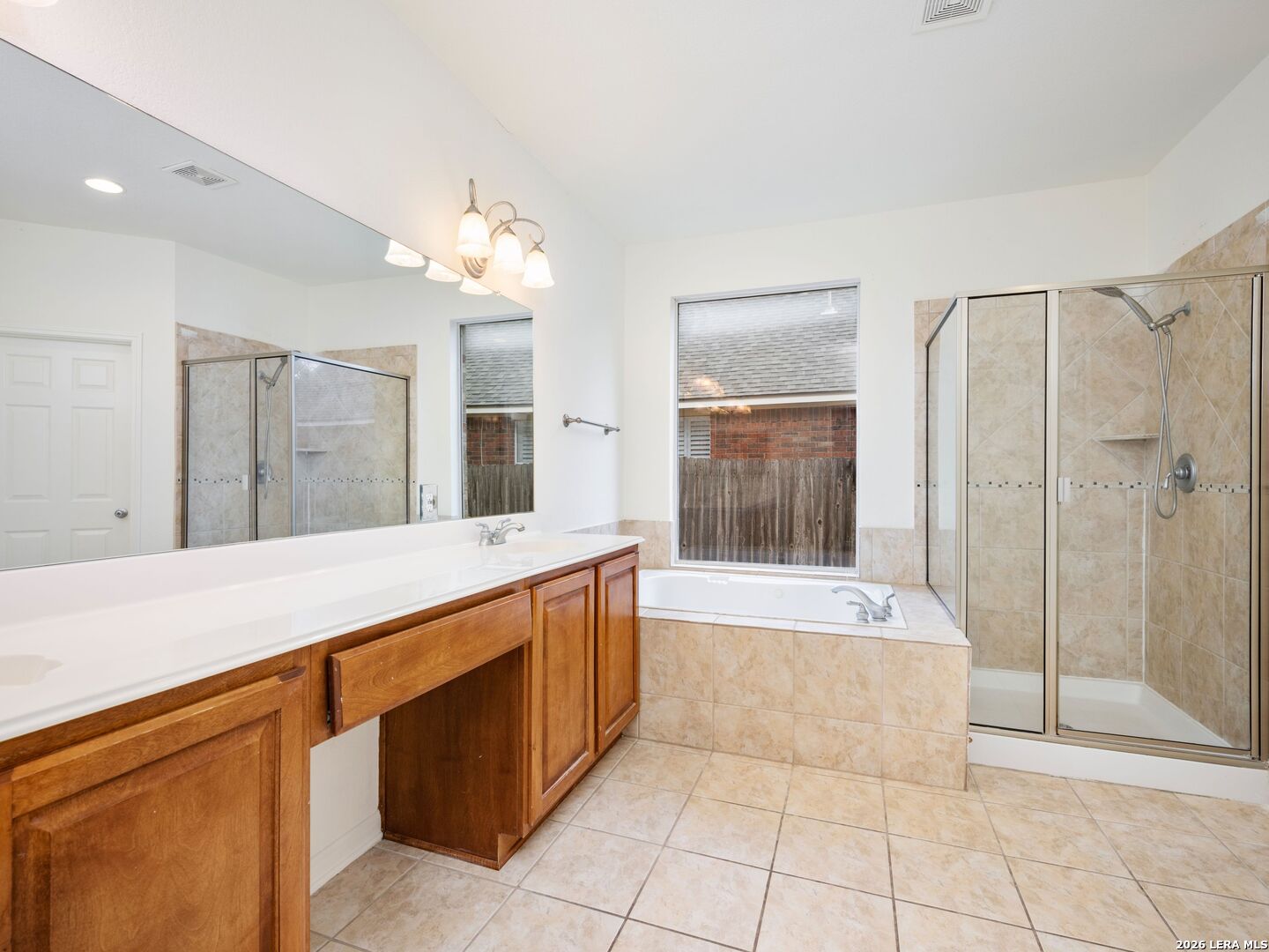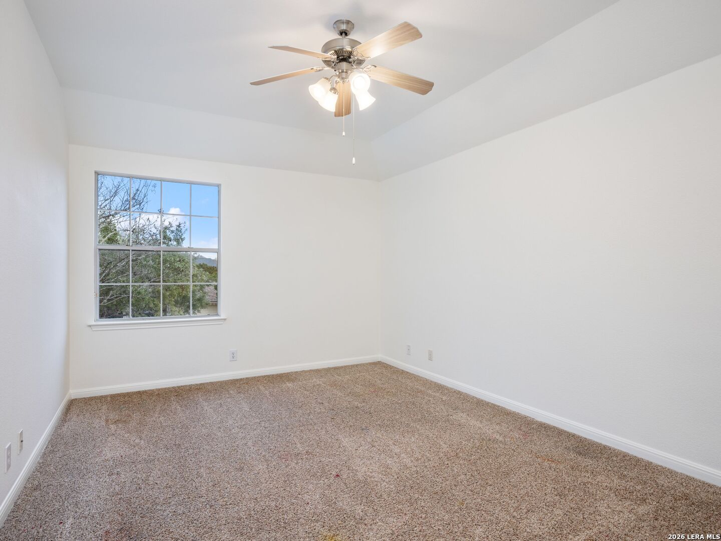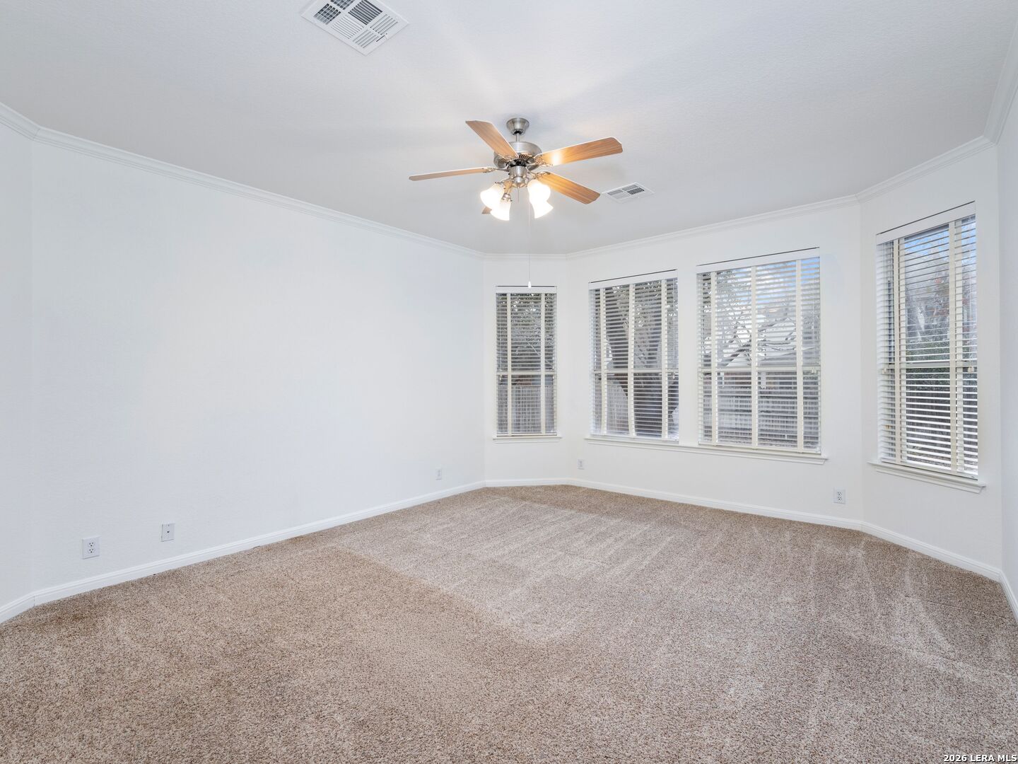 Situated within the established Rogers Ranch community, this David Weekley residence offers a well balanced two story floor plan designed for both everyday comfort and functional entertaining. The main level is anchored by a spacious primary suite featuring bay windows that introduce natural light and create a private retreat. The primary bath includes dual vanities, a soaking tub, separate walk in shower, and a generously sized walk in closet. The central living spaces are thoughtfully connected, highlighted by a family room with a two story ceiling and fireplace that opens naturally into the kitchen and breakfast area. The kitchen is equipped with stainless steel appliances, gas cooking, an island workspace, and bar seating, creating a practical and inviting gathering space. A secondary living area at the front of the home provides flexibility for a study, sitting room, or additional entertaining space, while an upstairs game room expands the home's overall livability. Large windows throughout provide consistent natural light, while neutral interior selections allow for an easy transition into a variety of design styles.