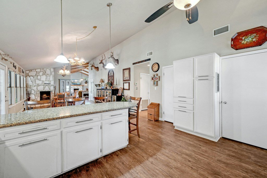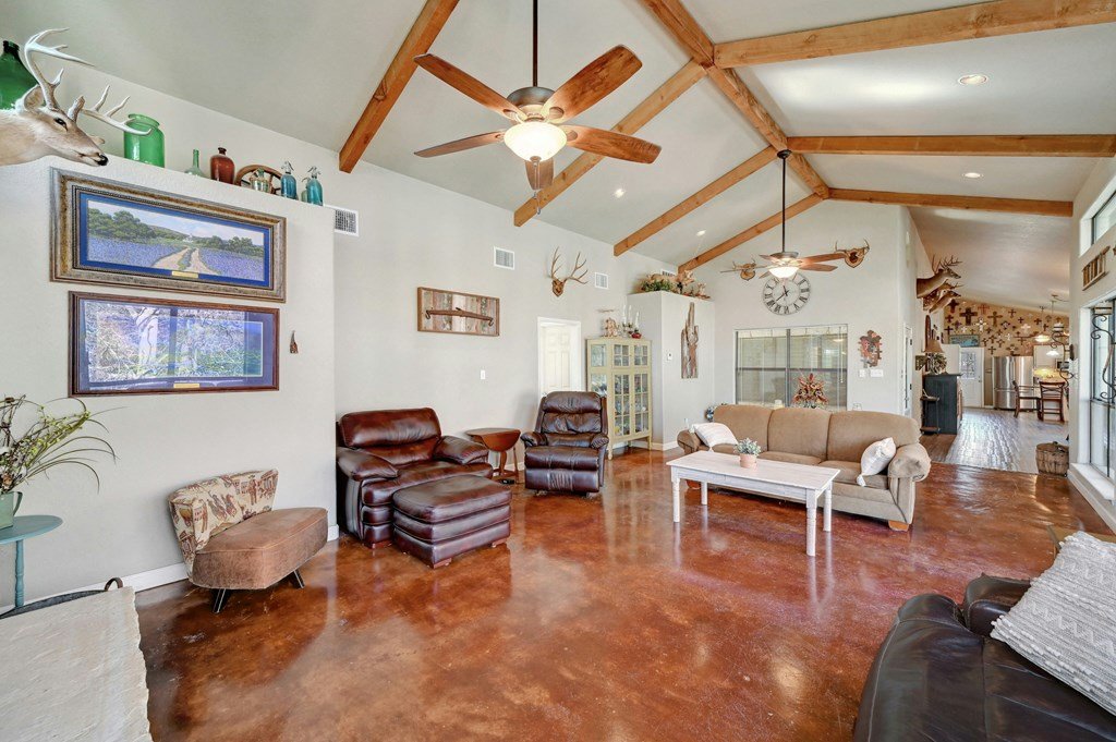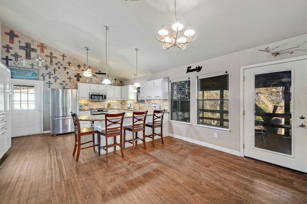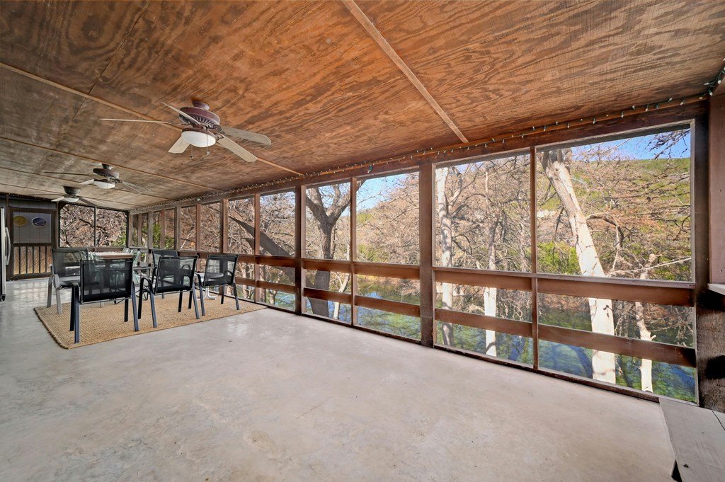 Discover an exceptional property at 187 N Roy Chisum Road in Leakey, Texas, where the pristine headwaters of the Frio River grace the estate, offering a serene and picturesque setting. This meticulously maintained 3-bedroom, 3-bathroom residence spans 3,120 square feet and is situated on a 1.1-acre lot approximately 6 miles north of Leakey. The kitchen is a culinary delight, featuring built-in appliances, granite countertops, and high ceilings. The open floor plan includes two fireplaces, creating a warm and inviting atmosphere. Spacious bedrooms and large closets provide ample storage, while the huge screened porch offers tranquil views of the river. An open rock patio and a stairwell lead down to the landscaped riverside, complete with a swimming and fishing dock, perfect for outdoor enjoyment. The property boasts a detached barn, a two-car carport, an RV port, and a workshop, catering to various needs. The fenced and manicured yard, adorned with numerous trees, offers a well-shaded retreat. Notably, this subdivision has no HOA, ensuring freedom from additional dues. Take in the Frio River, known for its wide, deep, and crystal-clear waters lined with majestic cypress trees.