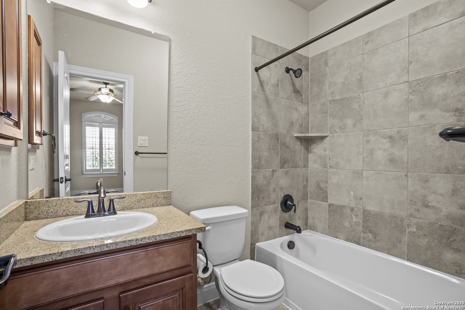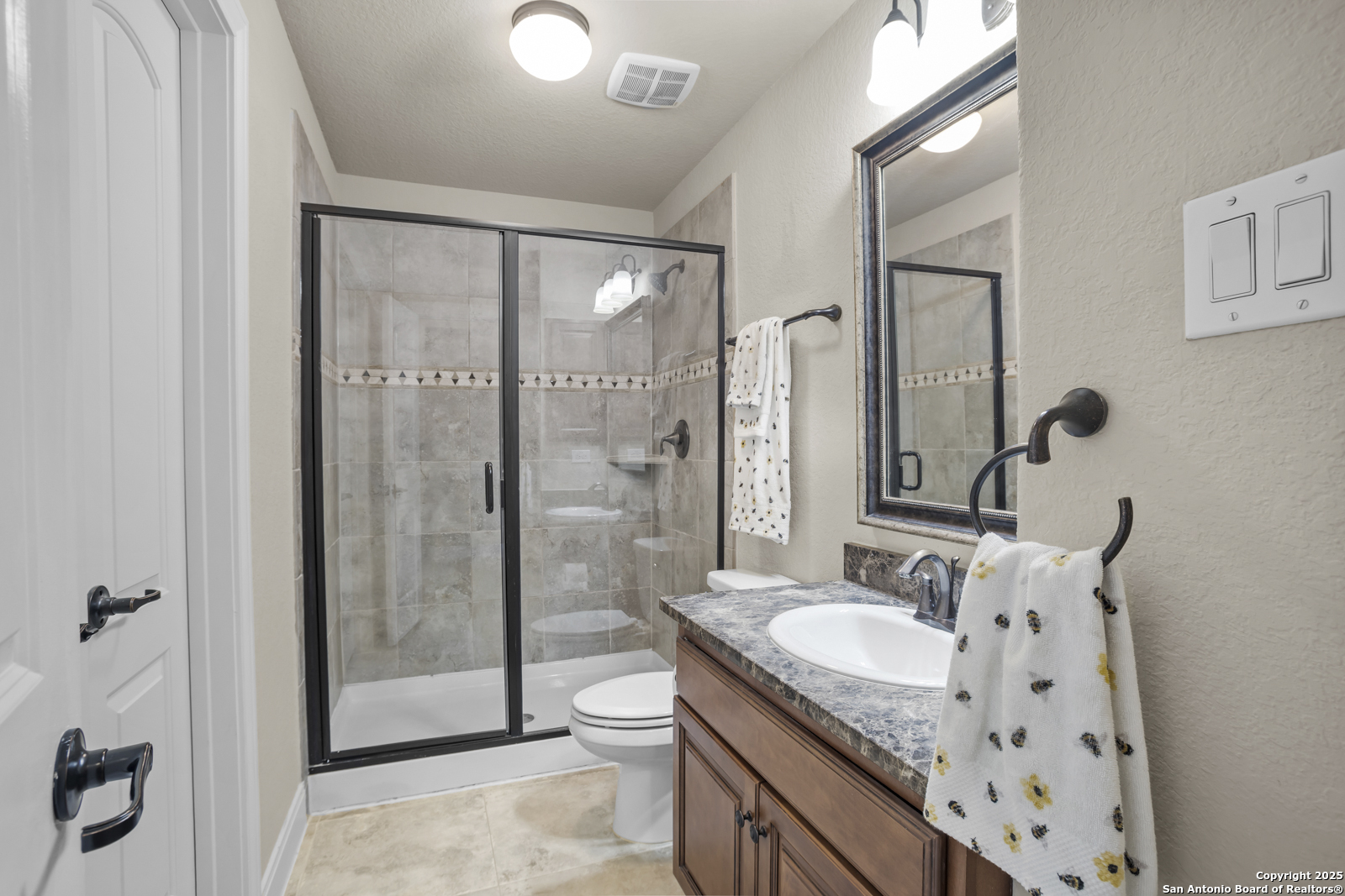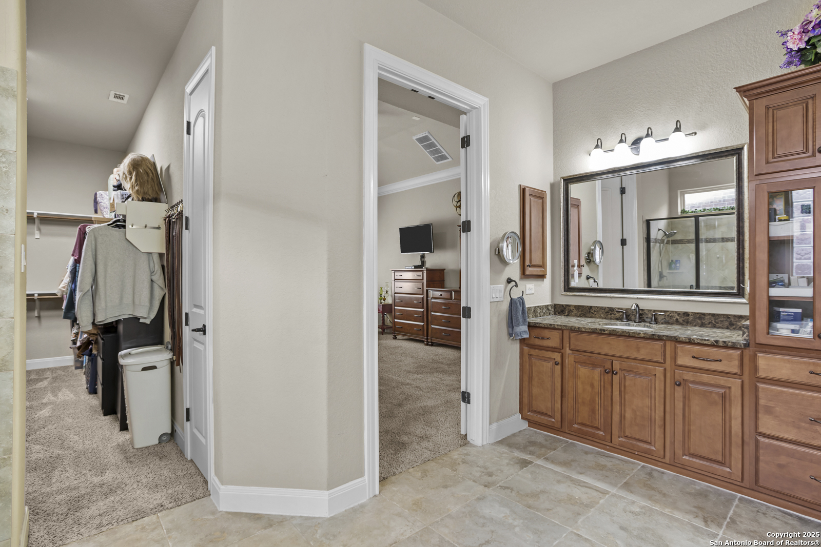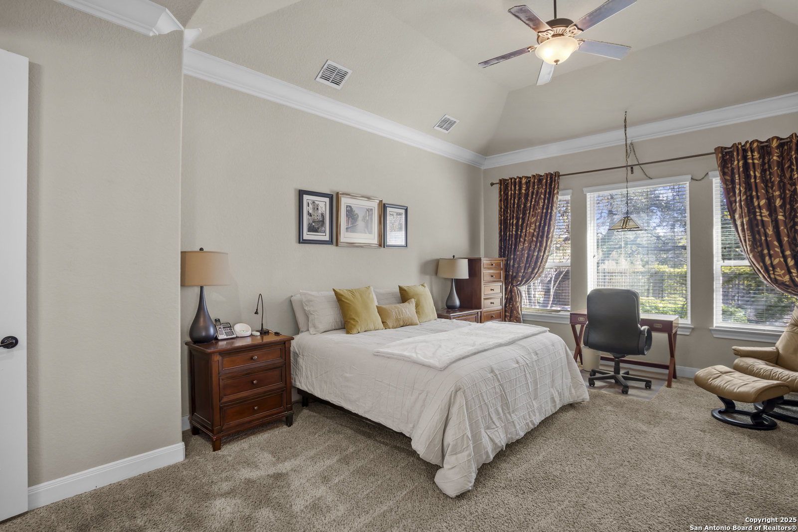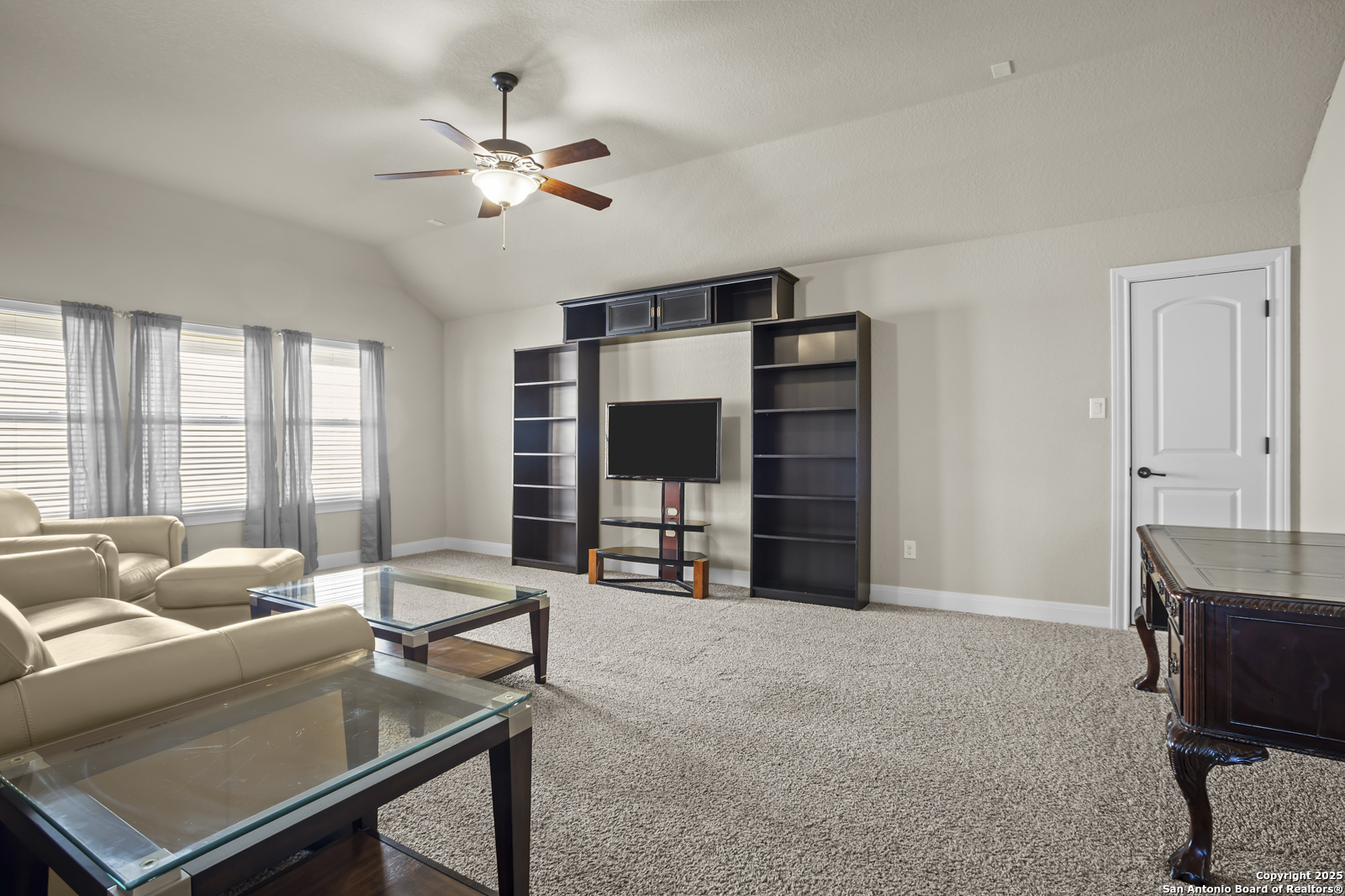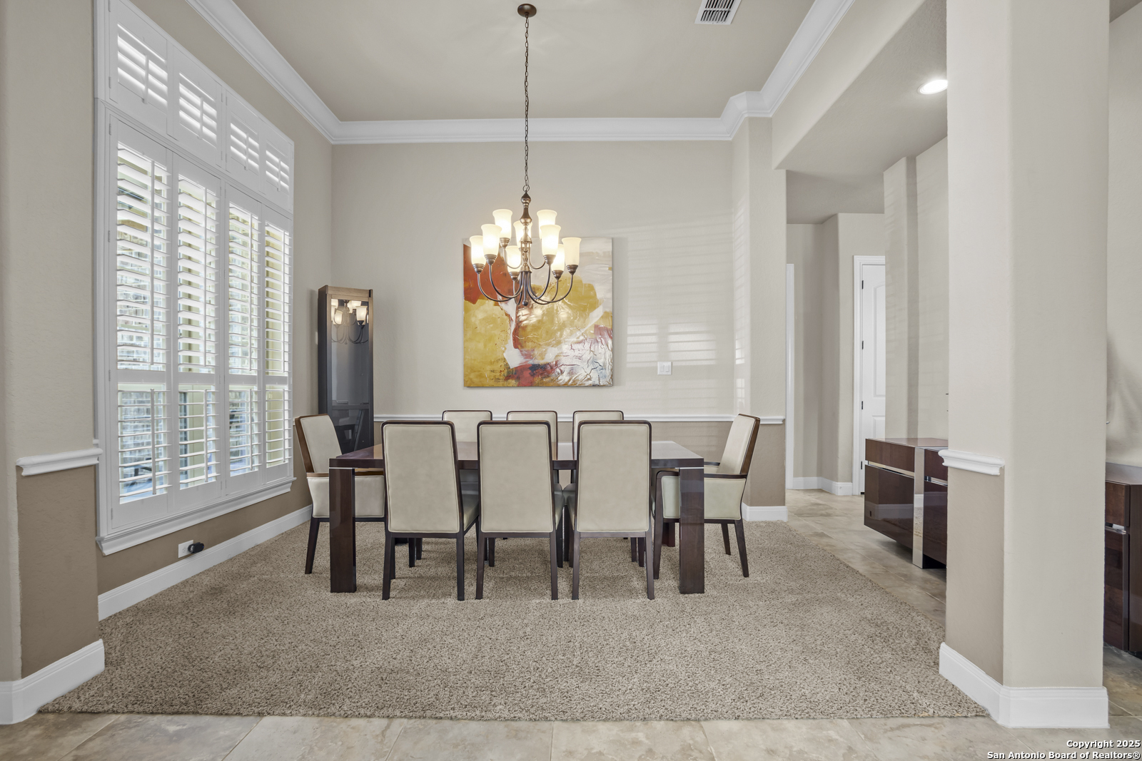 Welcome to this beautifully appointed home in the highly desirable Rogers Ranch community in San Antonio. This spacious 4-bedroom residence offers an ideal blend of comfort, style, and functionality with an open-concept layout, tall ceilings, and abundant natural light throughout. The gourmet kitchen serves as the heart of the home, featuring expansive granite countertops, custom cabinetry, stainless steel appliances, and an oversized island perfect for gathering and entertaining. The living room is anchored by a cozy fireplace and flows seamlessly into the dining area and outdoor living spaces. The primary suite is a private retreat with a large walk-in closet, double vanities, and a separate soaking tub and walk-in shower. A dedicated office on the main level plus a versatile upstairs loft provide flexible spaces for work, play, or relaxation. Outdoors, enjoy a covered patio complete with an outdoor fireplace and a full outdoor kitchen, creating the perfect setting for year-round hosting. Located within the sought-after Rogers Ranch community, residents enjoy access to amenities such as a sparkling pool, sports courts, walking paths, and a prime location near top-rated schools, shopping, dining, and major highways.