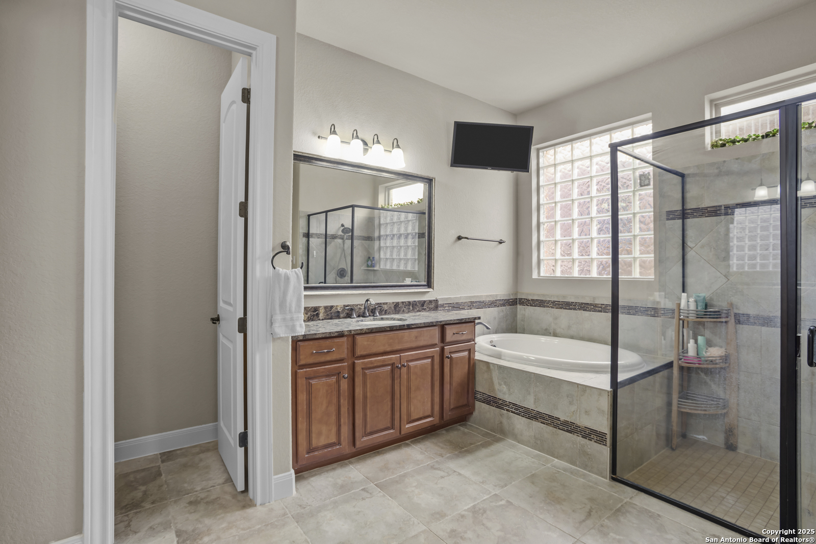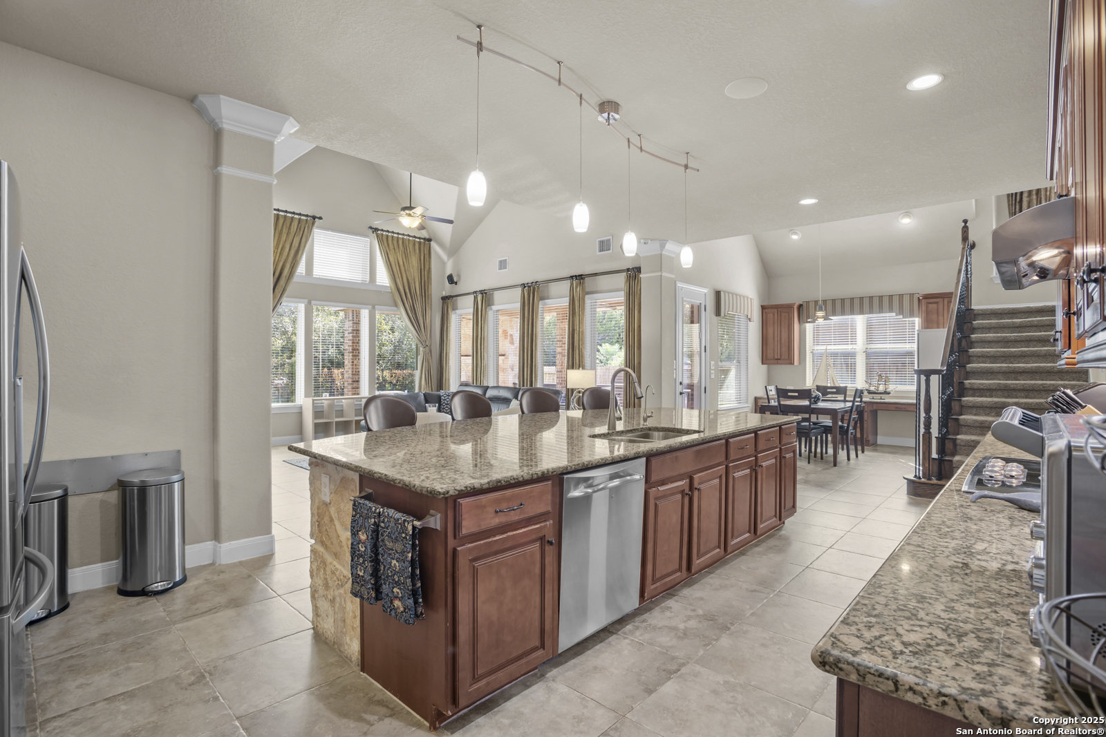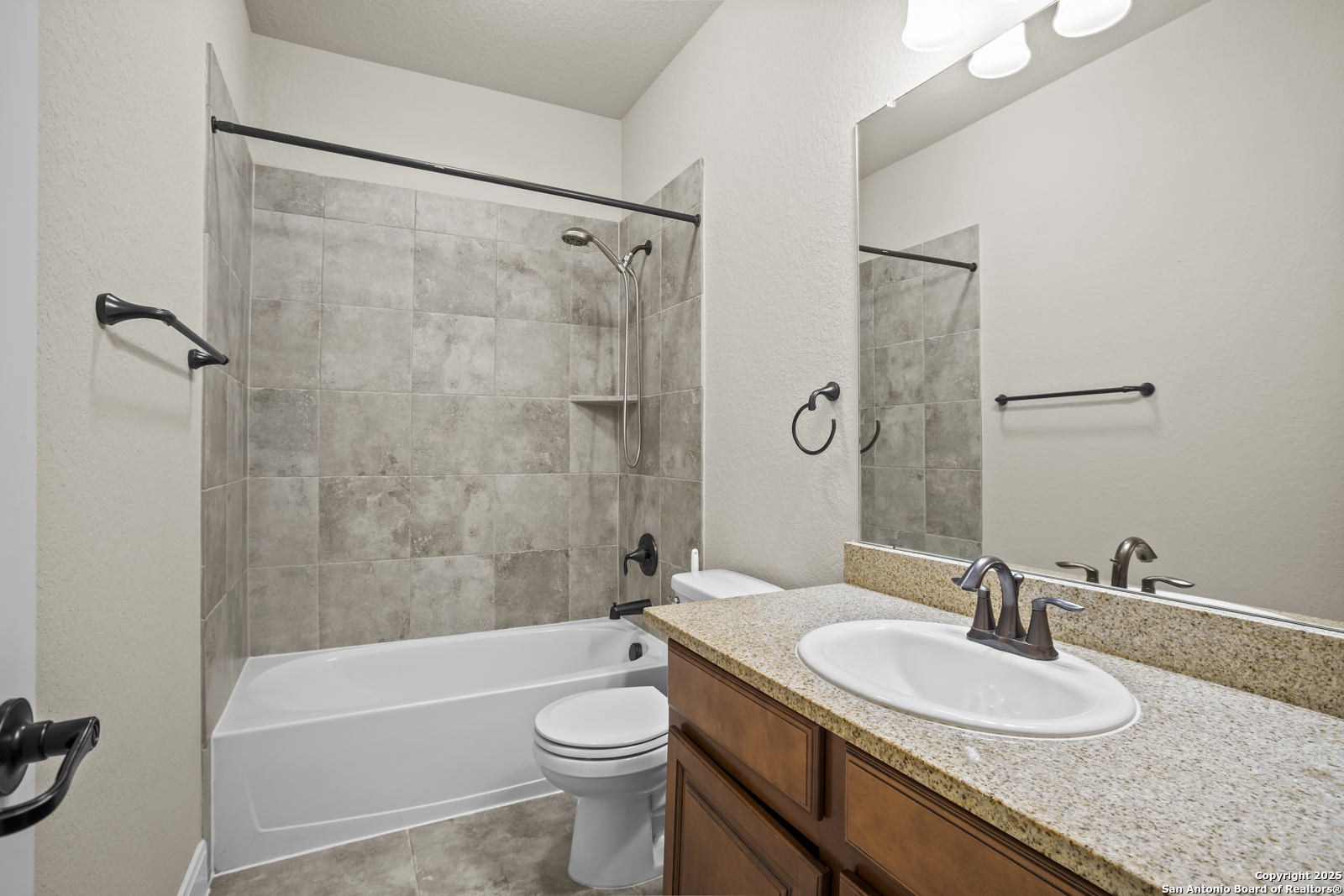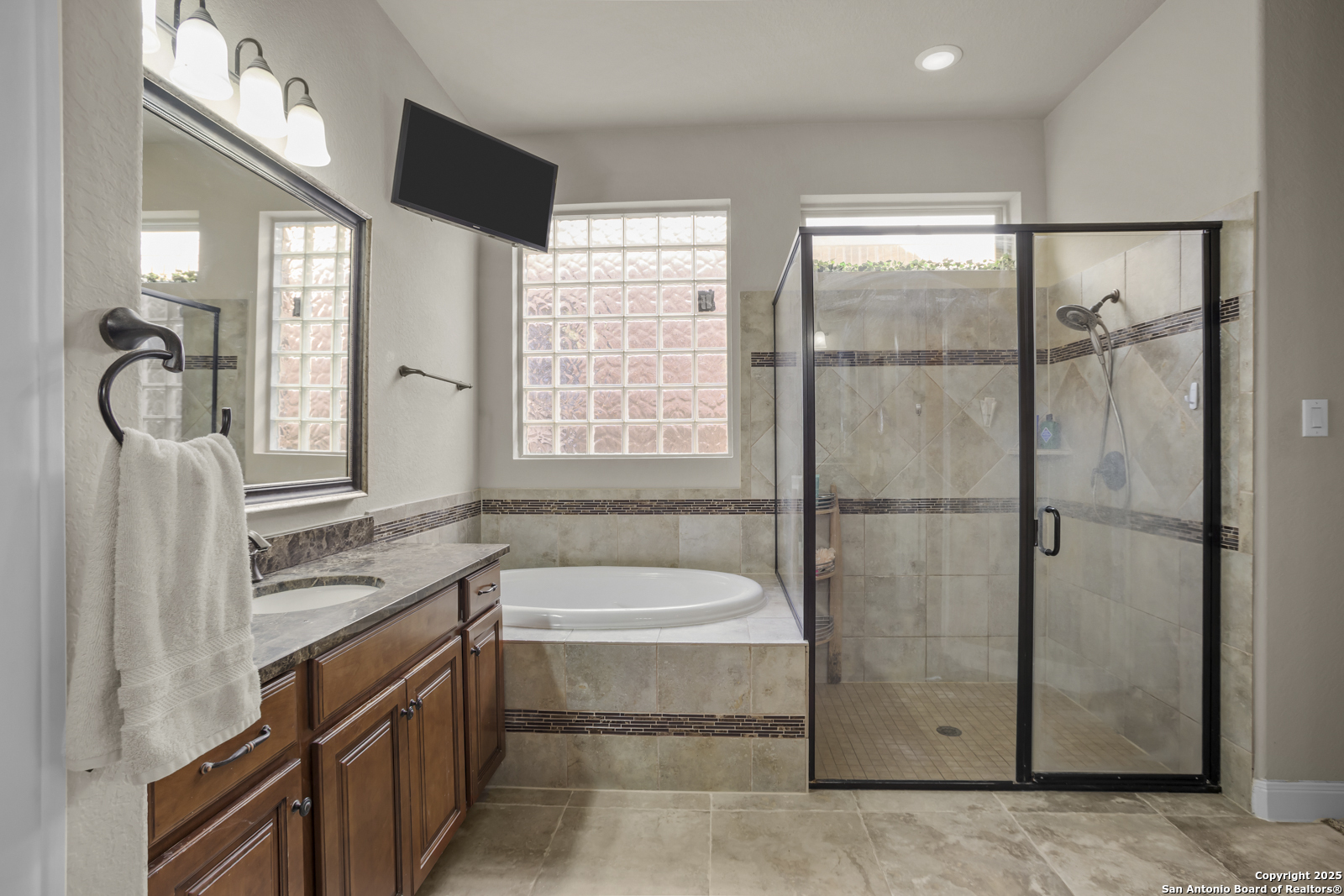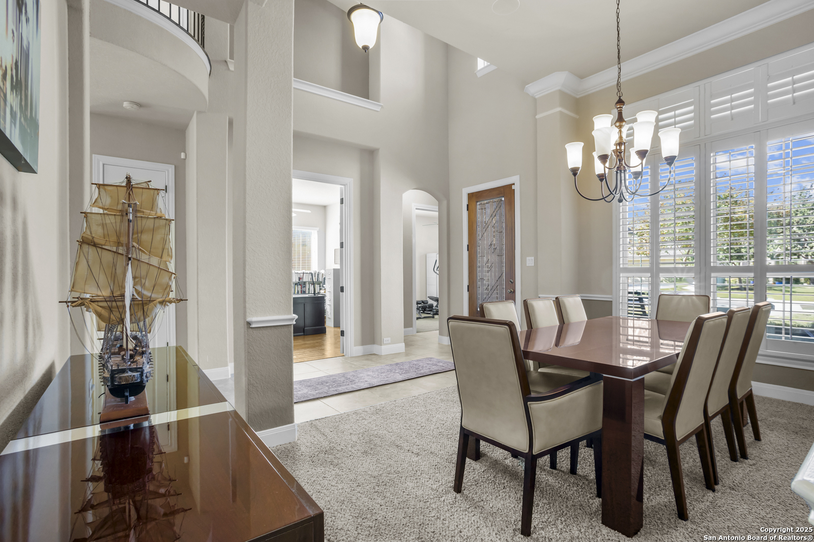 Welcome to this beautifully appointed home in the highly desirable Rogers Ranch community in San Antonio. This spacious 4-bedroom residence offers an ideal blend of comfort, style, and functionality with an open-concept layout, tall ceilings, and abundant natural light throughout. The gourmet kitchen serves as the heart of the home, featuring expansive granite countertops, custom cabinetry, stainless steel appliances, and an oversized island perfect for gathering and entertaining. The living room is anchored by a cozy fireplace and flows seamlessly into the dining area and outdoor living spaces. The primary suite is a private retreat with a large walk-in closet, double vanities, and a separate soaking tub and walk-in shower. A dedicated office on the main level plus a versatile upstairs loft provide flexible spaces for work, play, or relaxation. Outdoors, enjoy a covered patio complete with an outdoor fireplace and a full outdoor kitchen, creating the perfect setting for year-round hosting. Located within the sought-after Rogers Ranch community, residents enjoy access to amenities such as a sparkling pool, sports courts, walking paths, and a prime location near top-rated schools, shopping, dining, and major highways.