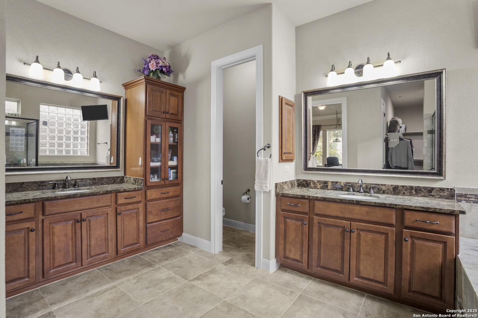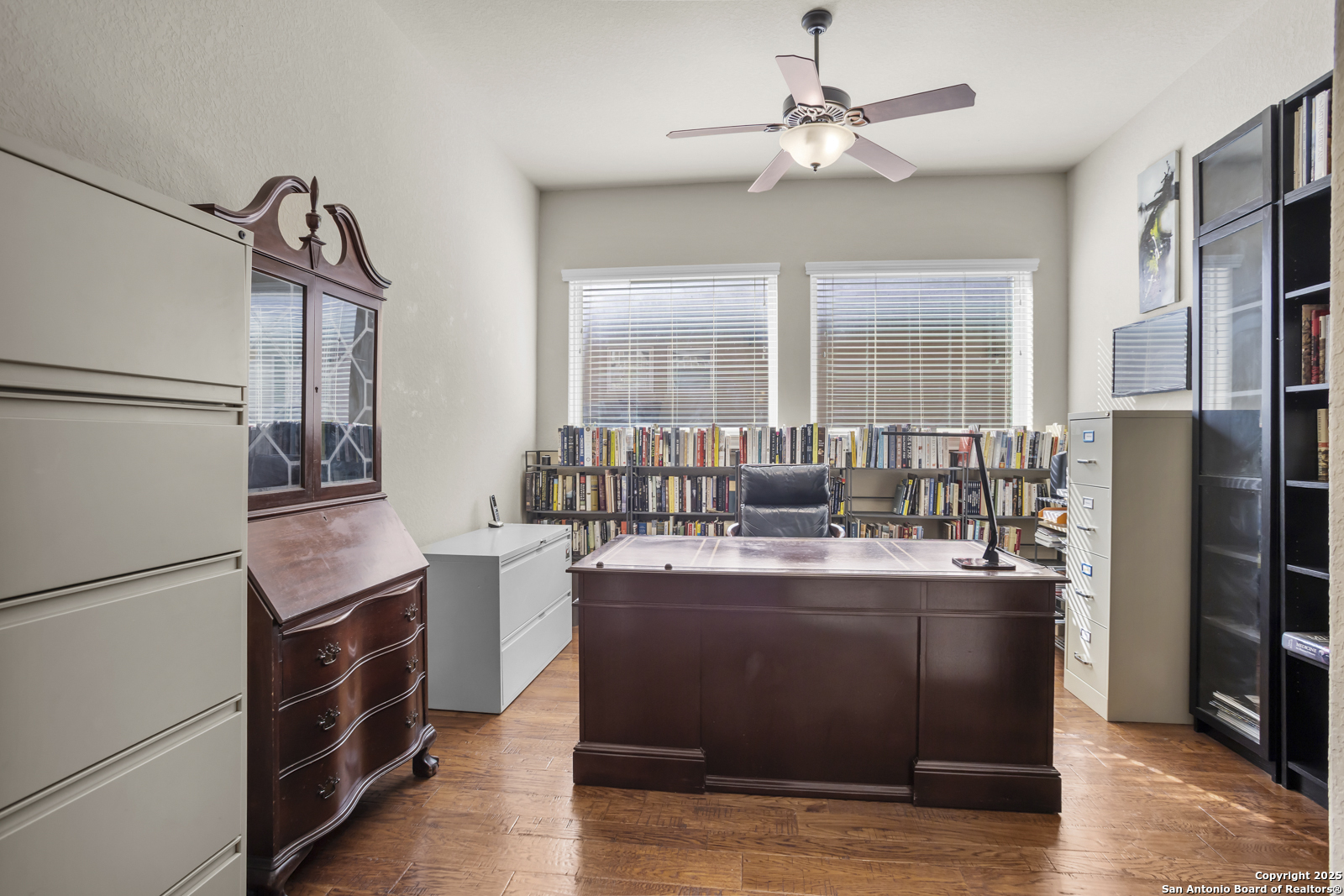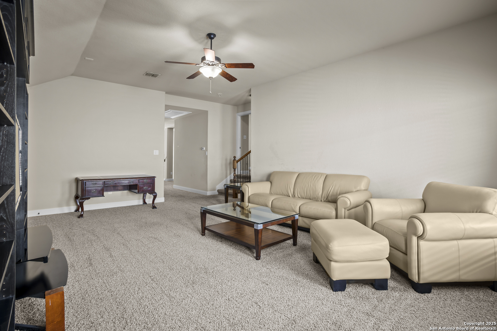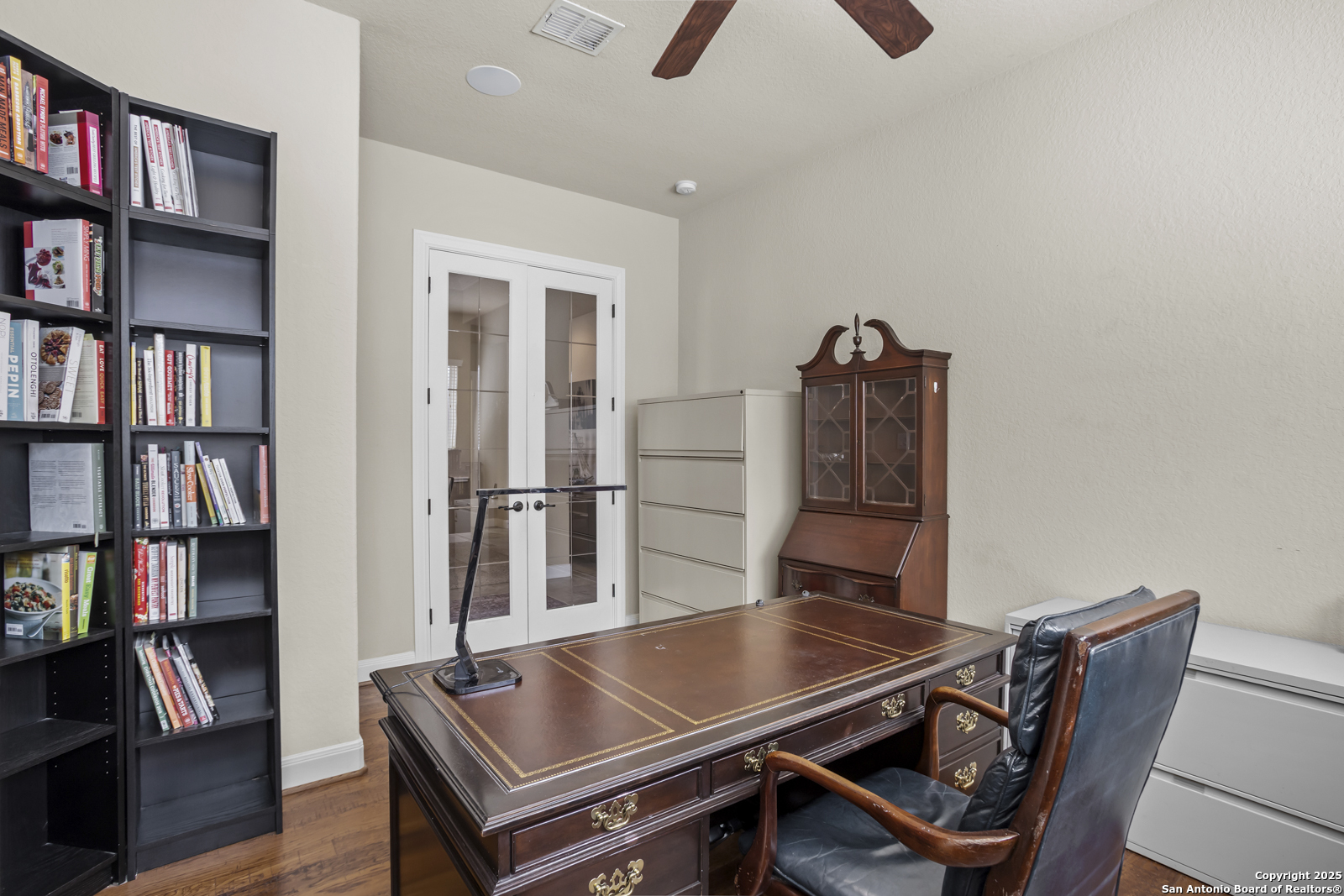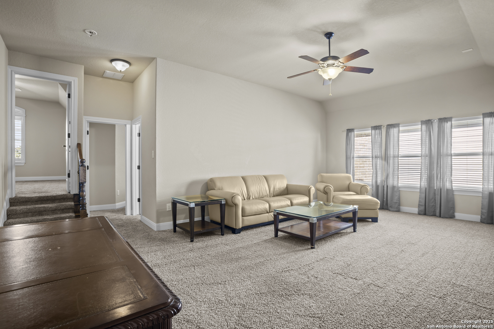 Welcome to this beautifully appointed home in the highly desirable Rogers Ranch community in San Antonio. This spacious 4-bedroom residence offers an ideal blend of comfort, style, and functionality with an open-concept layout, tall ceilings, and abundant natural light throughout. The gourmet kitchen serves as the heart of the home, featuring expansive granite countertops, custom cabinetry, stainless steel appliances, and an oversized island perfect for gathering and entertaining. The living room is anchored by a cozy fireplace and flows seamlessly into the dining area and outdoor living spaces. The primary suite is a private retreat with a large walk-in closet, double vanities, and a separate soaking tub and walk-in shower. A dedicated office on the main level plus a versatile upstairs loft provide flexible spaces for work, play, or relaxation. Outdoors, enjoy a covered patio complete with an outdoor fireplace and a full outdoor kitchen, creating the perfect setting for year-round hosting. Located within the sought-after Rogers Ranch community, residents enjoy access to amenities such as a sparkling pool, sports courts, walking paths, and a prime location near top-rated schools, shopping, dining, and major highways.