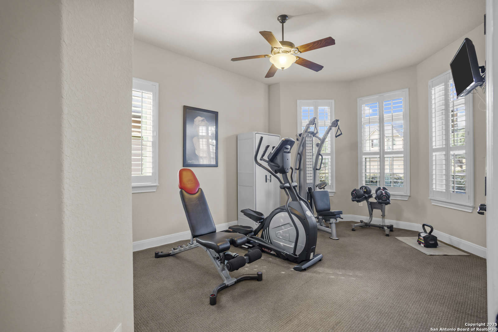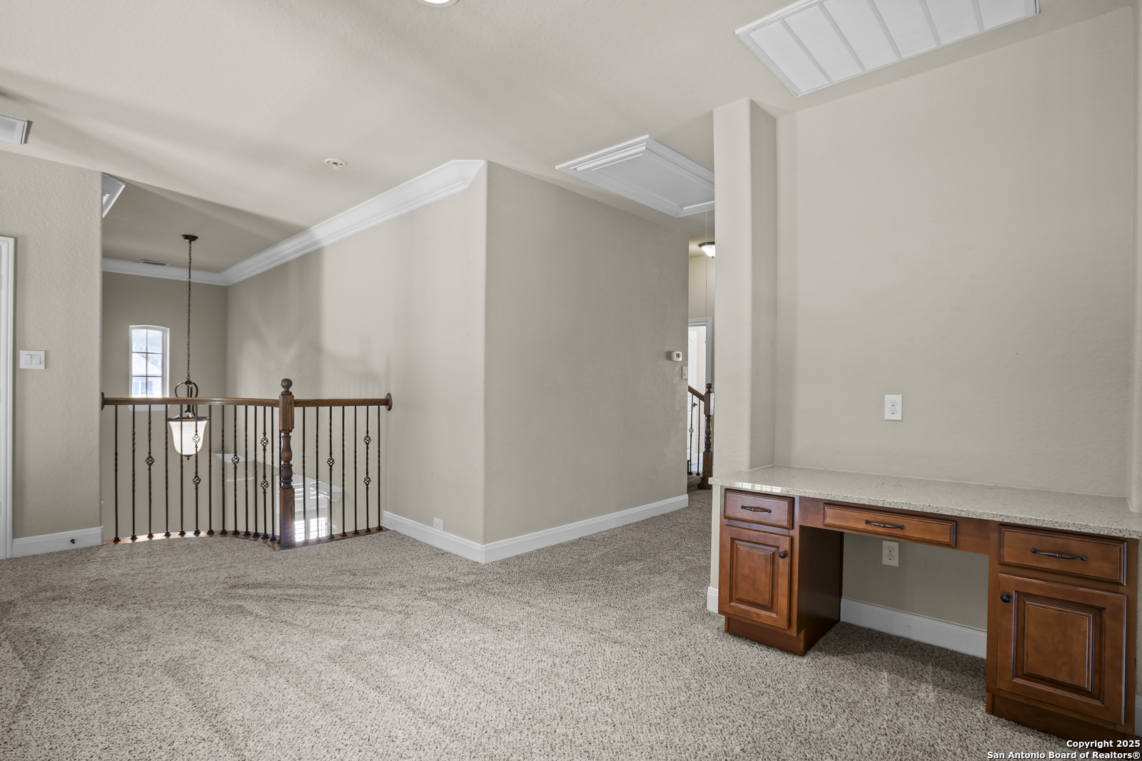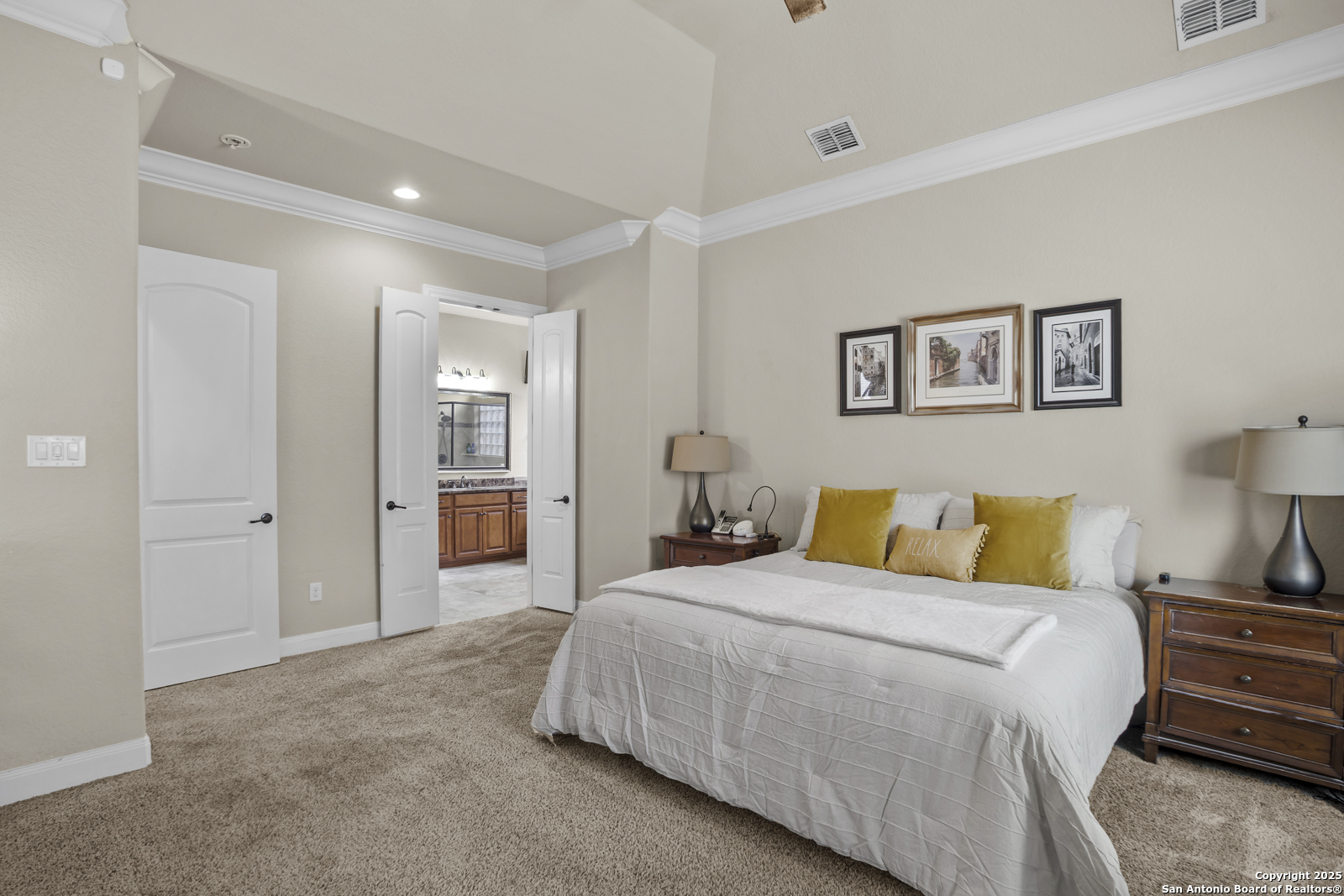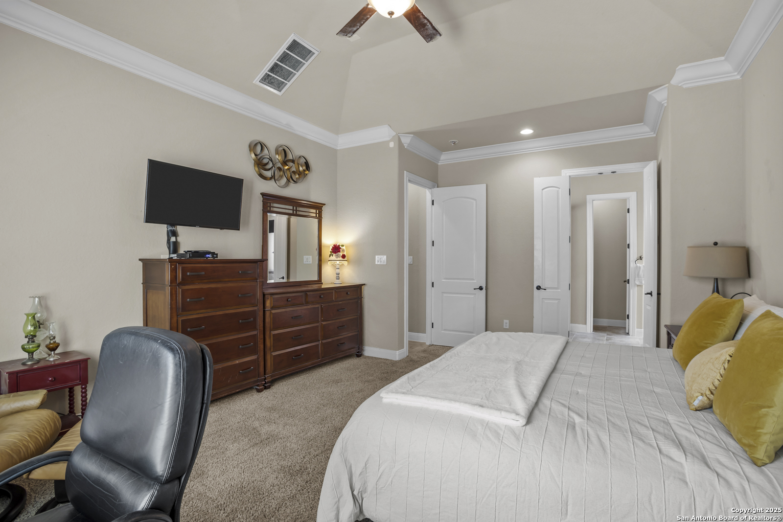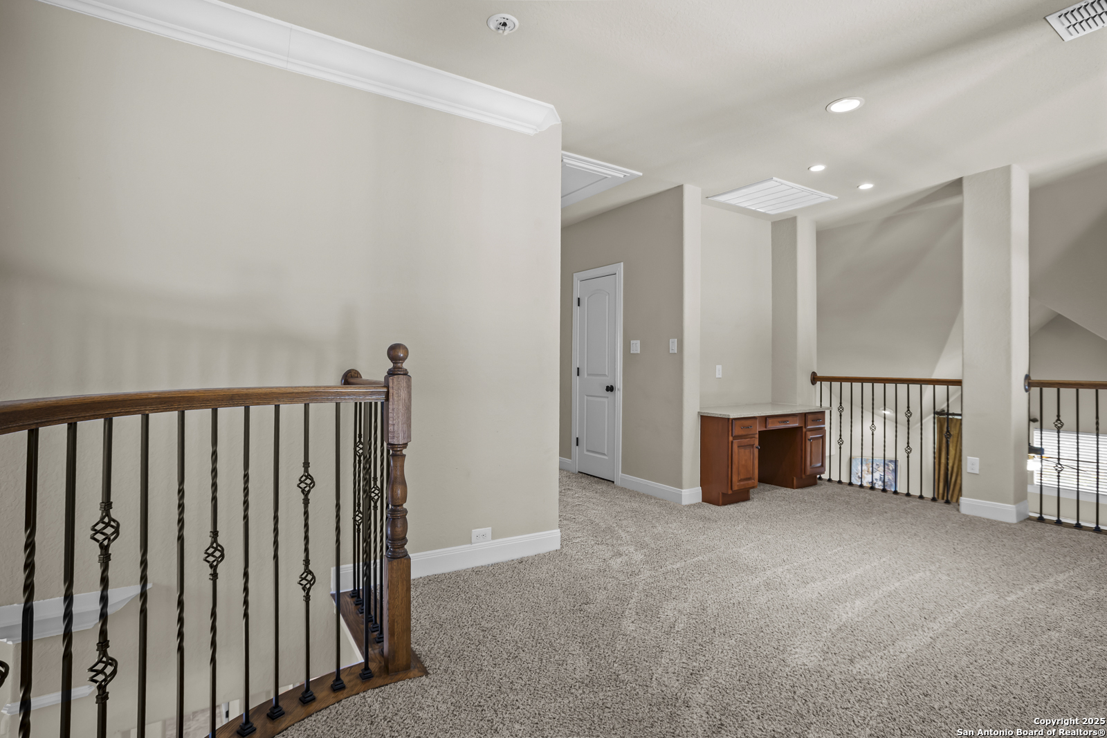 Welcome to this beautifully appointed home in the highly desirable Rogers Ranch community in San Antonio. This spacious 4-bedroom residence offers an ideal blend of comfort, style, and functionality with an open-concept layout, tall ceilings, and abundant natural light throughout. The gourmet kitchen serves as the heart of the home, featuring expansive granite countertops, custom cabinetry, stainless steel appliances, and an oversized island perfect for gathering and entertaining. The living room is anchored by a cozy fireplace and flows seamlessly into the dining area and outdoor living spaces. The primary suite is a private retreat with a large walk-in closet, double vanities, and a separate soaking tub and walk-in shower. A dedicated office on the main level plus a versatile upstairs loft provide flexible spaces for work, play, or relaxation. Outdoors, enjoy a covered patio complete with an outdoor fireplace and a full outdoor kitchen, creating the perfect setting for year-round hosting. Located within the sought-after Rogers Ranch community, residents enjoy access to amenities such as a sparkling pool, sports courts, walking paths, and a prime location near top-rated schools, shopping, dining, and major highways.