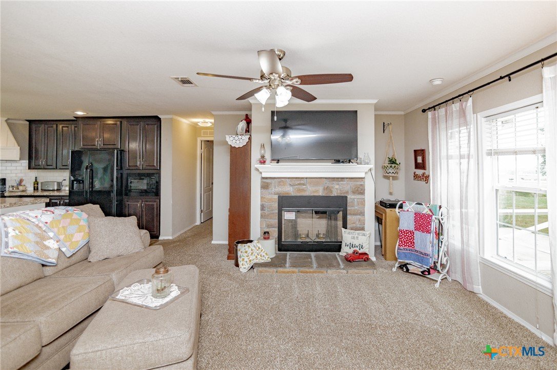 Nestled atop a scenic hill in Dewitt County, this beautiful 35-acre ranch offers peaceful country living surrounded by mature shade trees and wide-open views. The property features a 2017 Manufactured Double Wide home with a modern, open-concept floor plan, offering three bedrooms and two full baths. The spacious primary suite includes three large closets and a private en suite bathroom with dual vanities, a walk-in shower, and a soaking tub—perfect for relaxing after a long day. The open kitchen and living area create a warm, inviting space ideal for both entertaining and family life, complete with a large center island, new refrigerator and stove, and plenty of counter and cabinet space. Washer, dryer, and refrigerator convey with the home. Enjoy outdoor living on the covered front, side, and back porches, all protected by a new metal roof. The property also includes a fenced in-ground swimming pool currently serving as a pond, which can easily be restored for swimming. Additional improvements include an entry gate, loafing shed for cattle, two stock tanks, three storage buildings, a pole barn, carport, hot tub, and a Conex container—ideal for storing tools, equipment, or feed. Whether you’re wanting a weekend getaway, family homestead, or working ranch, this property offers endless possibilities with plenty of room to roam.