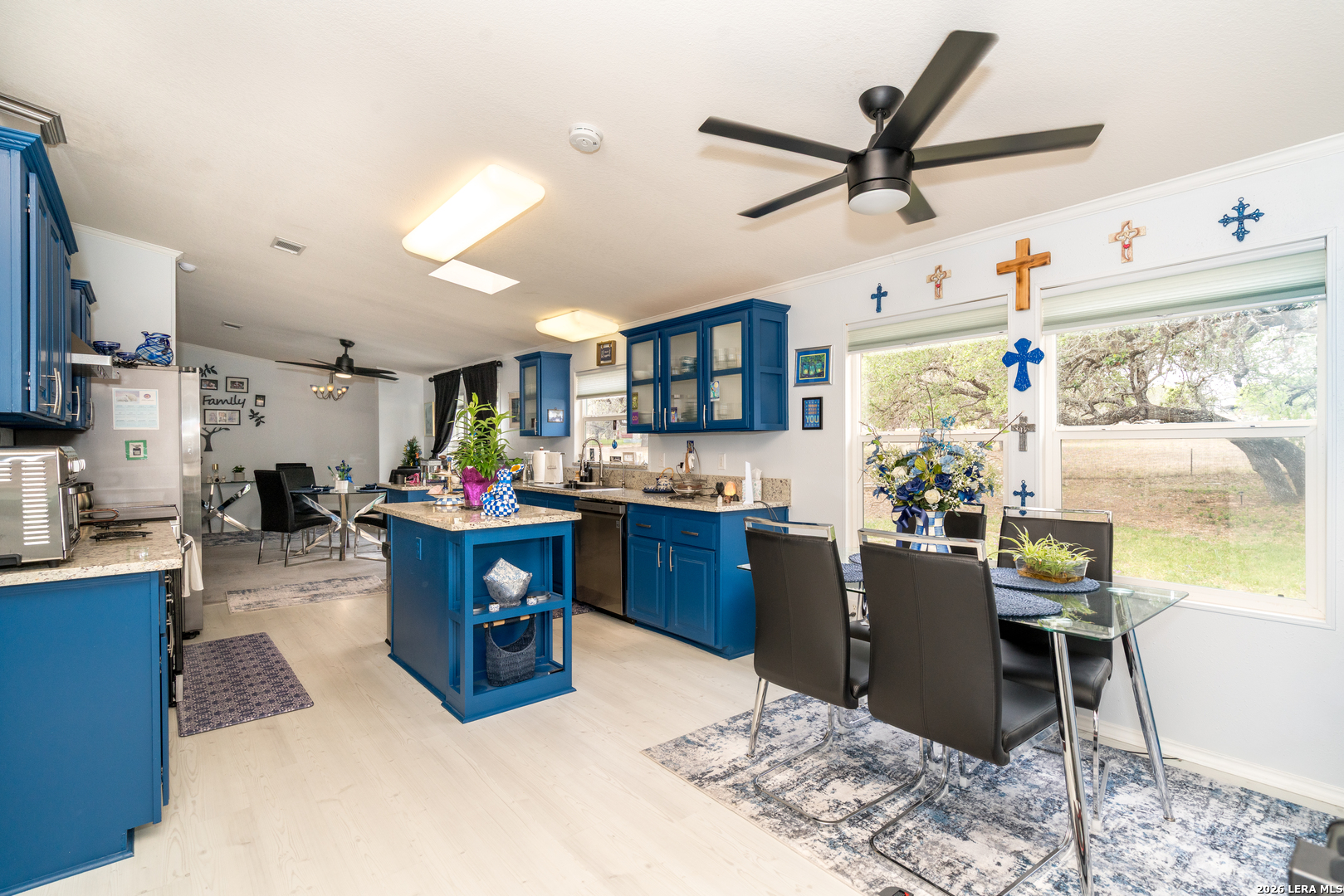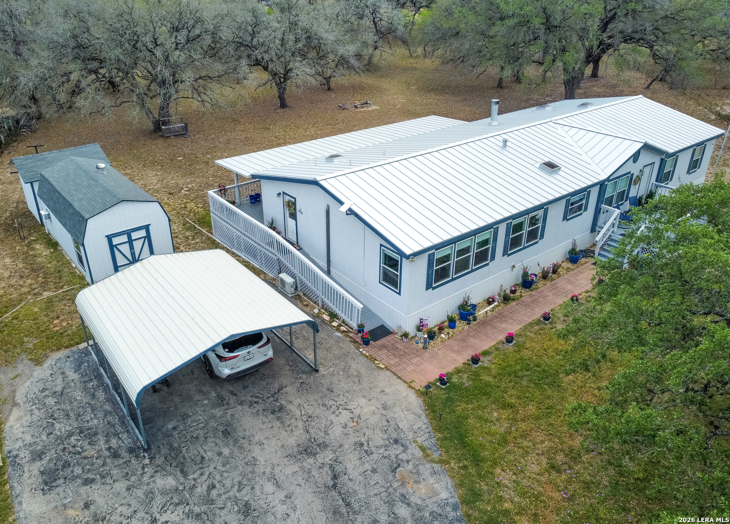 Golden Opportunity to Own The Farm! Welcome to 190 Bailee Circle your Slice of Heaven in Flagstone Ranches. Open Views and a Spacious and thoughtfully designed 2400 sq ft 4 Bedrooms, 3 full baths, Two Living areas, Two Dining Areas and Dual Primary Suites, all set on 2.3 acres connected to a lush Greenbelt which gives it a 10-15 acre feeling. The Open Kitchen and living area create an inviting central hub, featuring a Chef Island, Eye-Catching Blue Cabinetry, and Large Windows that fill the eat-in space with Natural Light. The main suite includes a private study, along with dual vanities, a garden tub, and separate shower, while skylights brighten the bathrooms and kitchen, a Ceramic Tile Fireplace adds Character, and a Multiple Patio's provide the Perfect Spot to enjoy the outdoors. This one is the Real Deal. All Done. New Lifetime Metal Roof (2024) + New Interior with High Ceilings (2020) + New John Wayne HVAC (2025). Book your showing. Must See