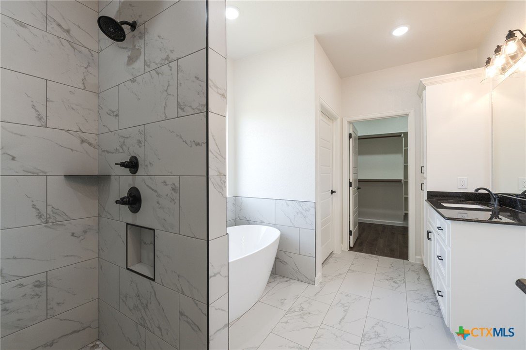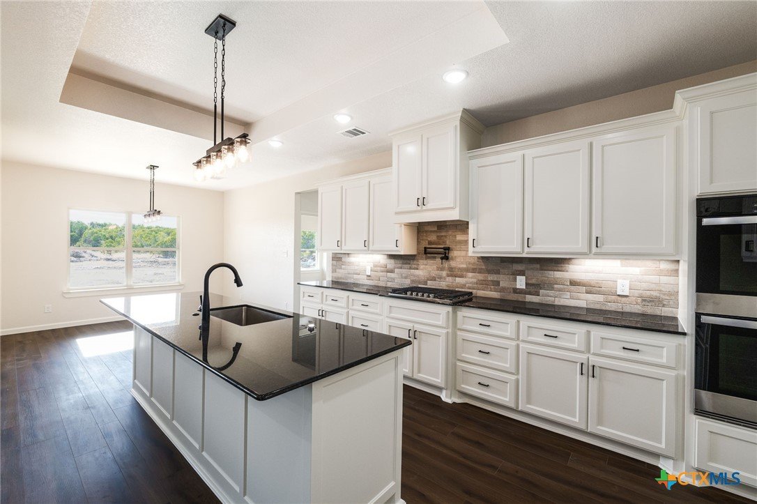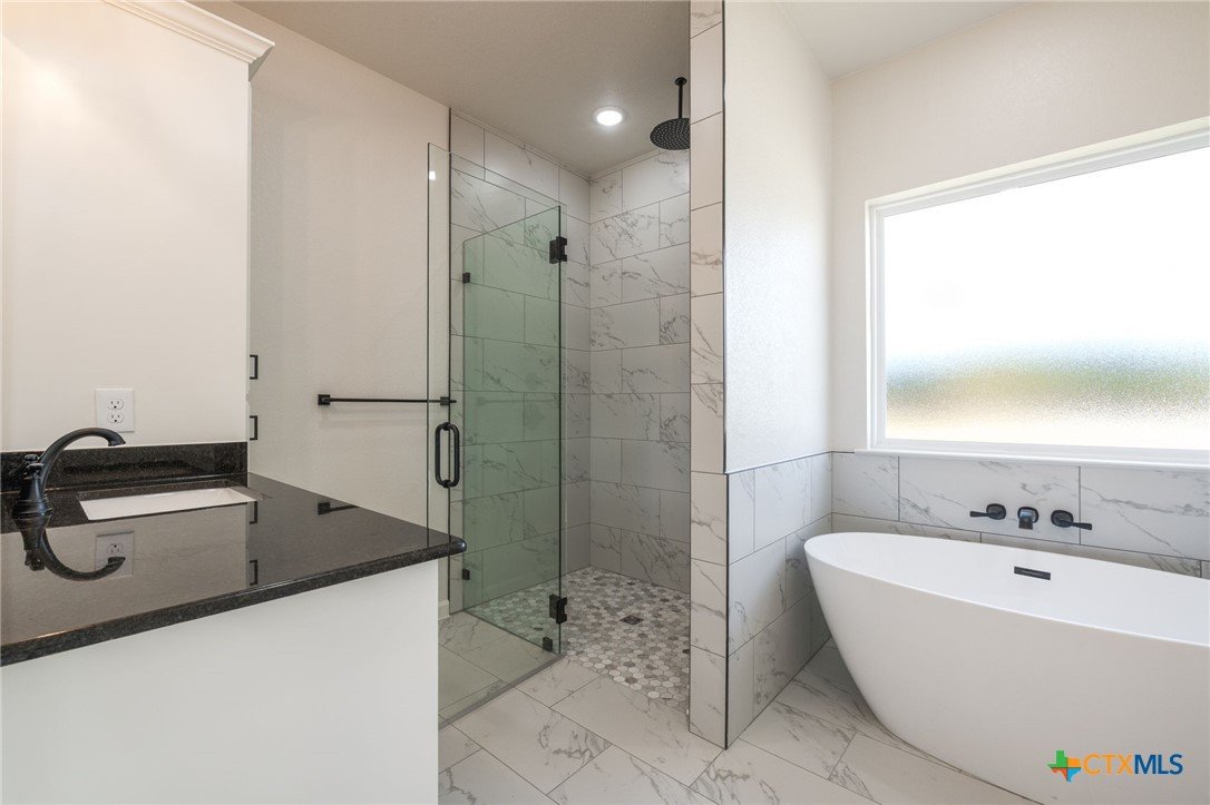 Stunning new construction located in Gatesville’s newest subdivision, Cedar Bluff, just outside the city limits on nearly 3 wooded acres, offering a peaceful setting with quick access to surrounding cities—less than 30 minutes to Killeen and 40 minutes to Waco or Temple. Home features a timeless Austin stone exterior with striking black accents and a spacious 3-bedroom, 2-bathroom layout plus a versatile flex/office space. Inside, find a gourmet kitchen with granite countertops, a large island, abundant cabinetry, and a large pantry. Home will be enhanced by luxury vinyl plank flooring throughout. Isolated primary suite includes double vanities, a soaking tub, and a separate shower. Additional features include a tankless water heater, spray foam insulation, and a large utility room with extra storage cabinets. Outdoor living is easy with the expansive covered back patio overlooking the wooded acreage. Currently under construction with estimated completion before year’s end, don’t miss this opportunity to own a brand-new home in a prime location!