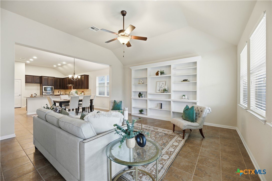 Welcome to this charming 3-bedroom, 2-bathroom home that perfectly balances comfort and convenience in the heart of Dripping Springs. Nestled on a peaceful street, this 2,028 square foot residence offers an open floor plan that flows seamlessly throughout the main living areas, creating an inviting space for both daily life and entertaining. The thoughtfully designed layout features a separate office with elegant French doors, providing a quiet retreat for work or study. Book lovers will appreciate the custom built-in shelves in the living room, while the practical mudroom off the laundry area keeps everyday clutter at bay. Natural light floods the interior, highlighting the home's warm and welcoming atmosphere. The spacious primary bedroom comes complete with an en-suite bathroom, offering a private sanctuary at the end of each day. Two additional bedrooms provide flexibility for family, guests, or hobby spaces. Outdoor enthusiasts will love the expansive backyard, perfect for gardening, play, or simply enjoying Texas sunsets from the covered back porch. The three-car garage provides ample storage and parking for multiple vehicles. Location couldn't be better, with easy access to Highway 290 connecting you to both Austin's urban amenities and the scenic Hill Country. You'll be just minutes from Dripping Springs High School, convenient shopping at H-E-B, and The Home Depot for all your project needs. The nearby Dripping Springs Ranch Park and Event Center offers additional recreational opportunities. This home combines small-town charm with modern convenience, making it an ideal choice for anyone seeking the best of both worlds. Wheelchair accessible.