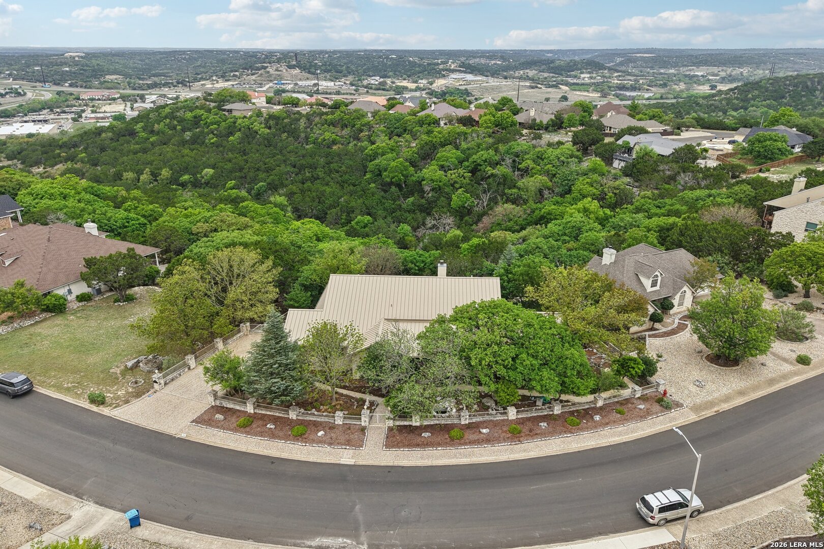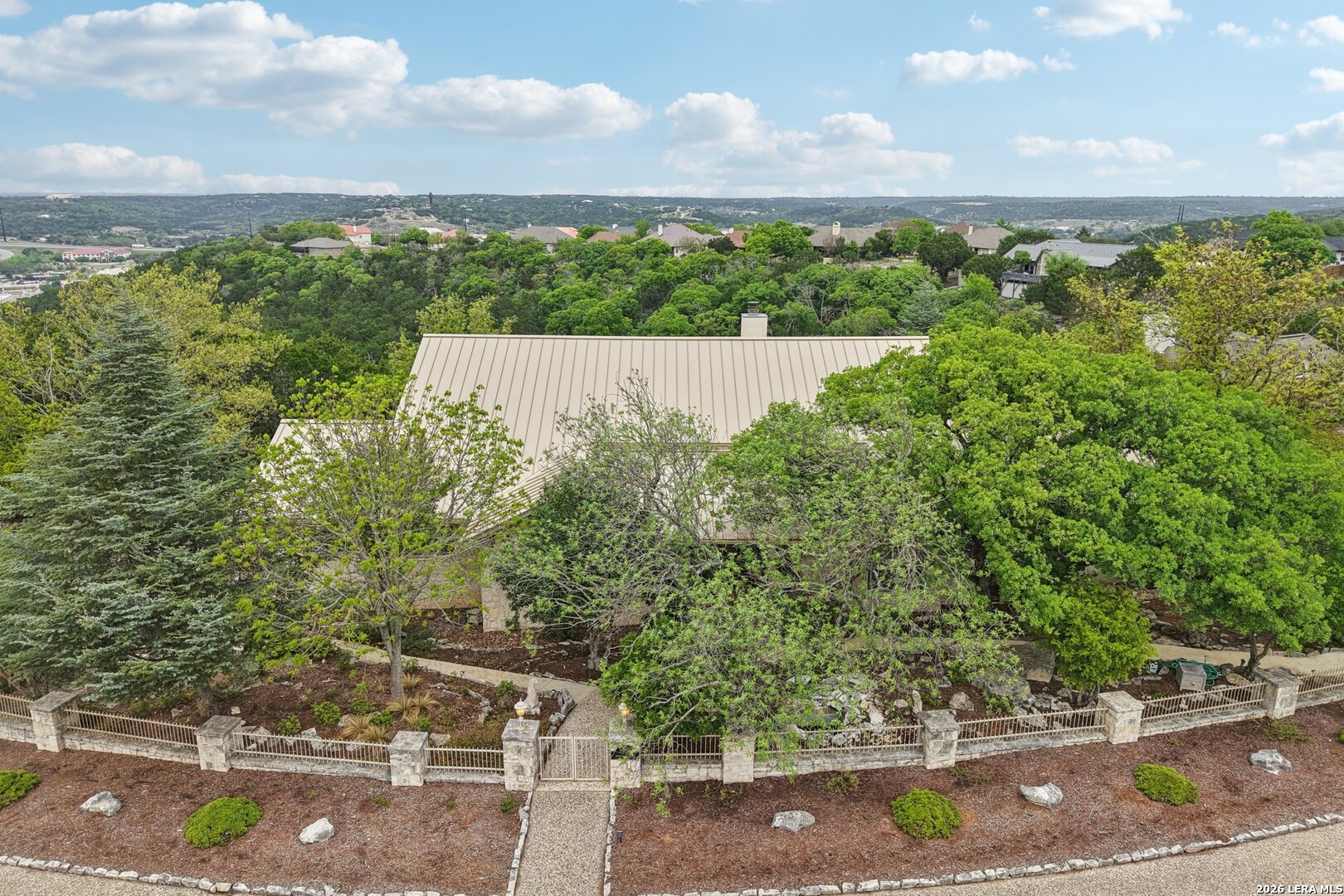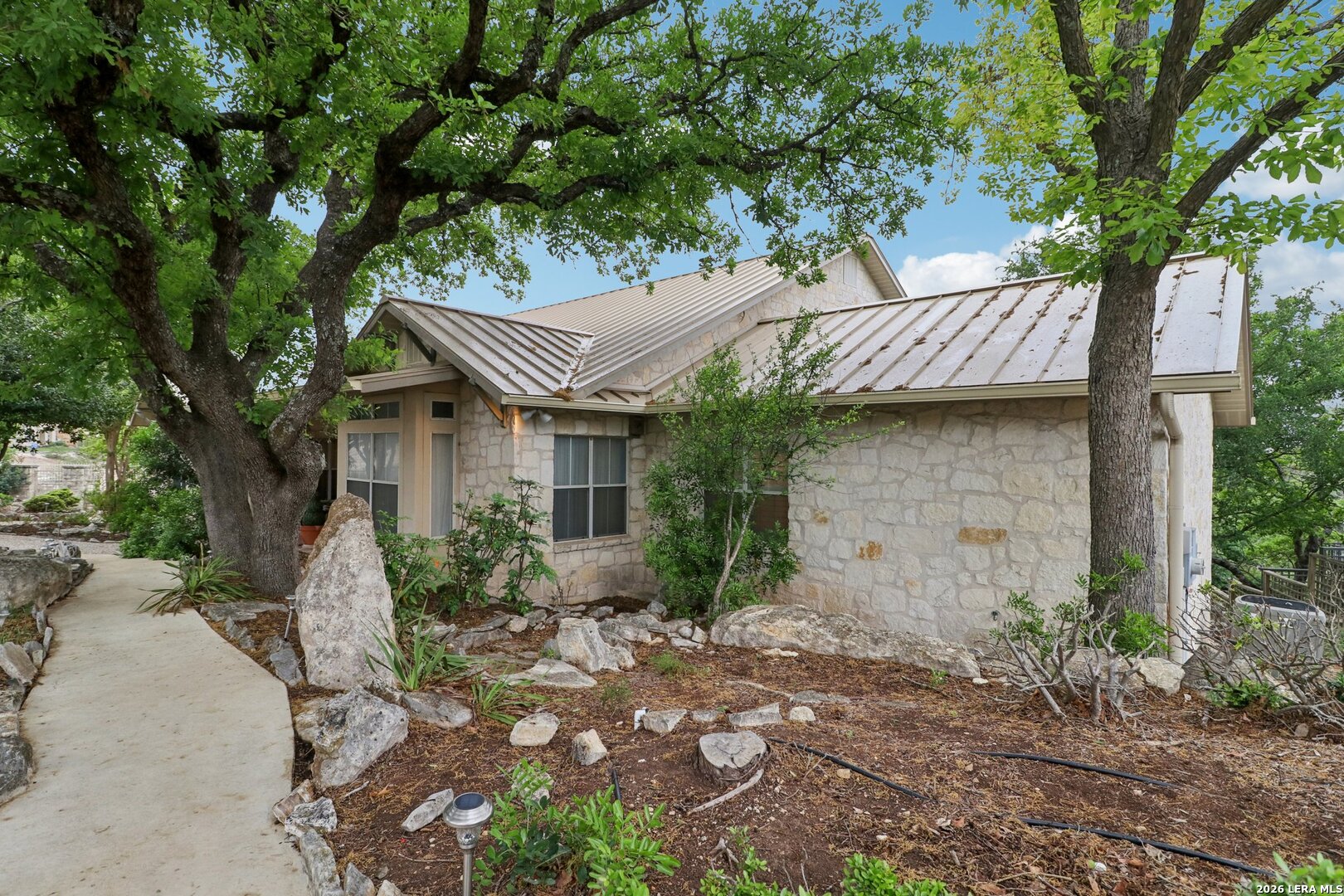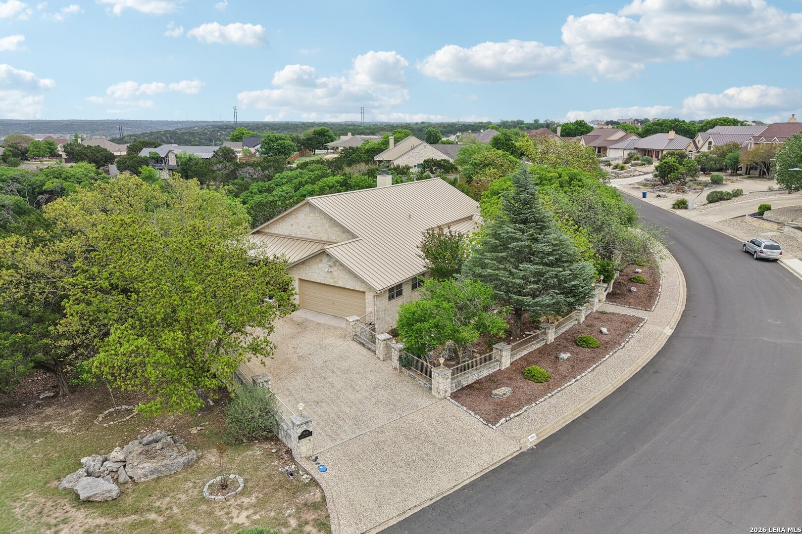 Perched in the sought-after Summit neighborhood above Kerrville, this beautiful Hill Country home blends timeless design with incredible views. Spanning 2,983 square feet, the home is filled with natural light from a stunning wall of windows. The great room features a floor-to-ceiling stone fireplace, built-ins, and warm wood accents-perfect for both relaxing and entertaining. All three spacious bedrooms offer private en suite bathrooms, providing comfort and privacy for family or guests. The light-filled kitchen captures scenic views, and a versatile bonus room adds flexibility for an office, media space, or additional living area. Step outside to a serene setting under the pergola-perfect for reading a book on a spring day. Additional highlights include a classic metal roof, abundant storage throughout, and extra storage space below the home. A true Hill Country retreat designed for easy, comfortable living.