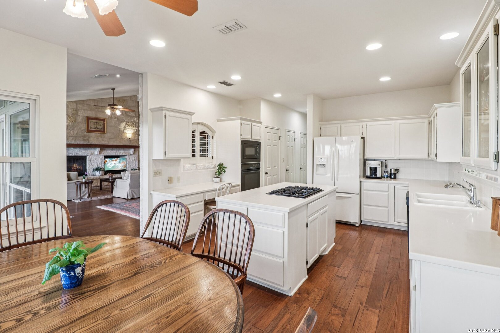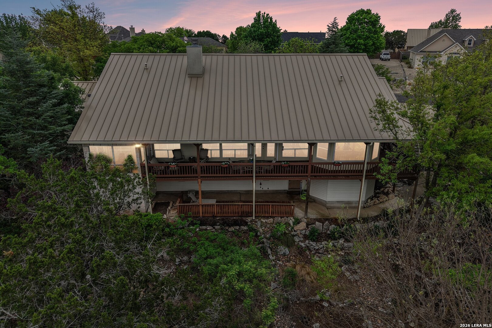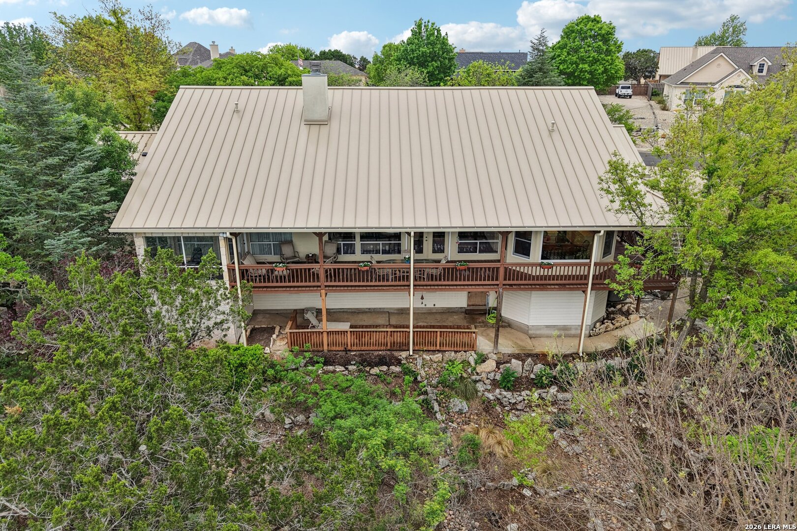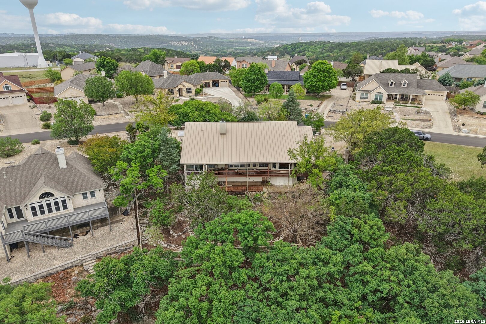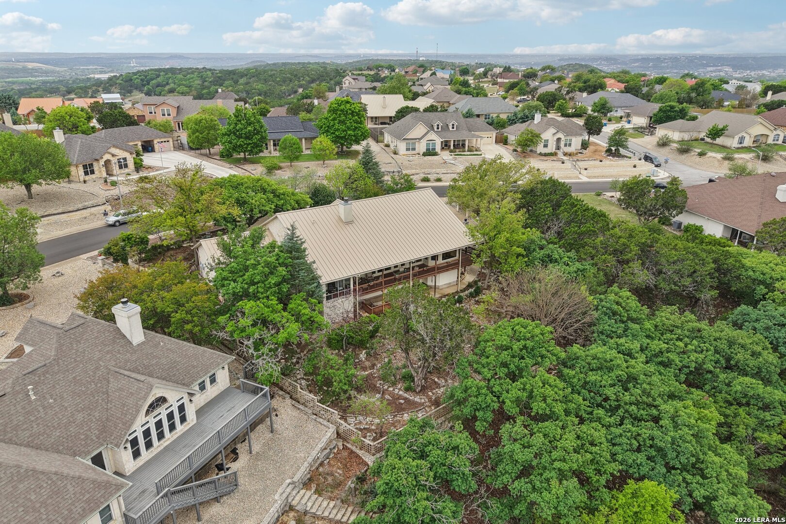 Perched in the sought-after Summit neighborhood above Kerrville, this beautiful Hill Country home blends timeless design with incredible views. Spanning 2,983 square feet, the home is filled with natural light from a stunning wall of windows. The great room features a floor-to-ceiling stone fireplace, built-ins, and warm wood accents-perfect for both relaxing and entertaining. All three spacious bedrooms offer private en suite bathrooms, providing comfort and privacy for family or guests. The light-filled kitchen captures scenic views, and a versatile bonus room adds flexibility for an office, media space, or additional living area. Step outside to a serene setting under the pergola-perfect for reading a book on a spring day. Additional highlights include a classic metal roof, abundant storage throughout, and extra storage space below the home. A true Hill Country retreat designed for easy, comfortable living.