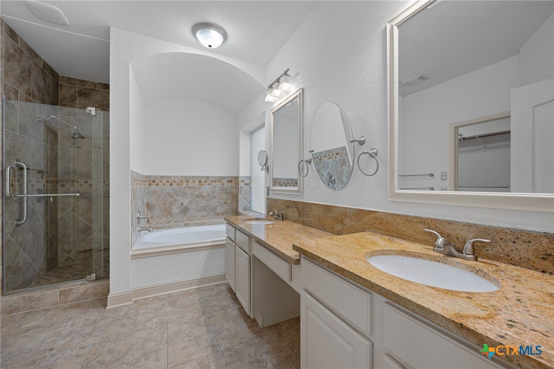 RARE FIND! 5-Bed, 3-Car Garage Estate with Dual Masters & Owned Solar! Description: Welcome to 1907 Holly Hill Dr a 5-bedroom, 3.5-bath sanctuary in the heart of Leander. Designed for multi-generational living or growing families, this home offers an incredible layout featuring TWO primary suites and a massive 3 car garage. Why you'll love this home: Grand Living: The foyer opens to a sun-drenched living room where a granite-surround fireplace and a wall of windows with 4" plantation shutters beckon you outside. Chef’s Kitchen: Entertain with ease using 42" upper cabinets, granite countertops, stainless appliances, a breakfast bar, and TWO dining areas. Luxury Primary Suite (Down): Features bay windows, a spa bath with a frameless glass shower, and a private Daikin mini-split HVAC for personalized sleeping temperatures. 2nd Primary Suite (Up): A huge upstairs ensuite with a sitting area, dual vanities, and two closets, perfect for in-laws or guests! Zero Carpet: Enjoy premium 18" porcelain offset tile and stunning Java bamboo wood flooring throughout the entire home. Systems & Upgrades: Owned Solar Panels = Low energy bills!, Water Softener + Reverse Osmosis System. HVAC with UV light for allergen reduction & recently cleaned ducts. Incredible storage throughout + backyard shed. The Backyard Oasis: Step out to a shaded retreat under mature Live Oaks. The flagstone patio cascades to a lower seating area, connected by continuous flatwork sidewalks. Location, Location, Location: Zoned for acclaimed Leander ISD. Walking distance to Randall’s, Starbucks, and Brooklyn Heights Pizza. Just 10 minutes to the Metro Rail and Toll Road for an easy commute to Austin.