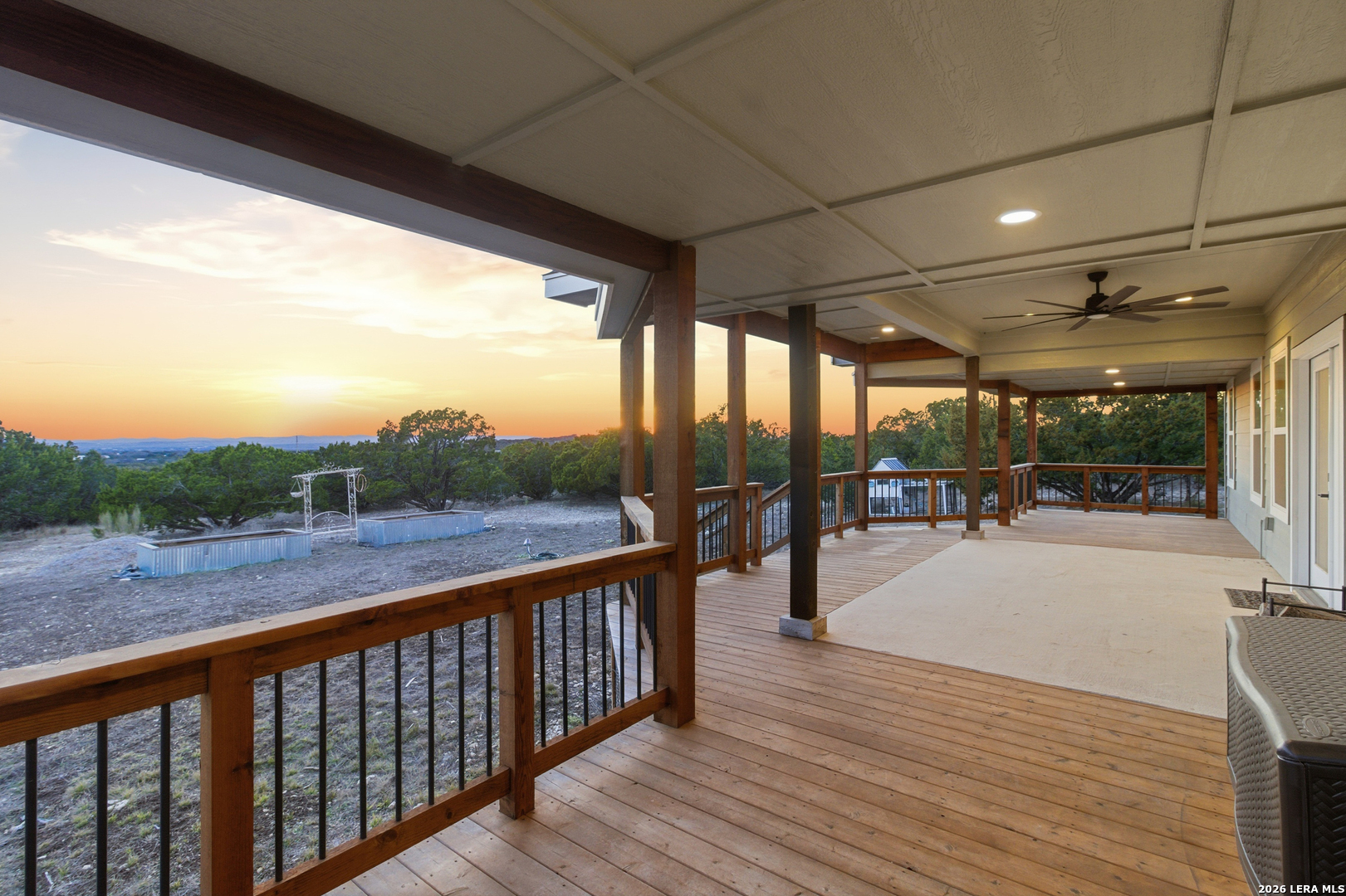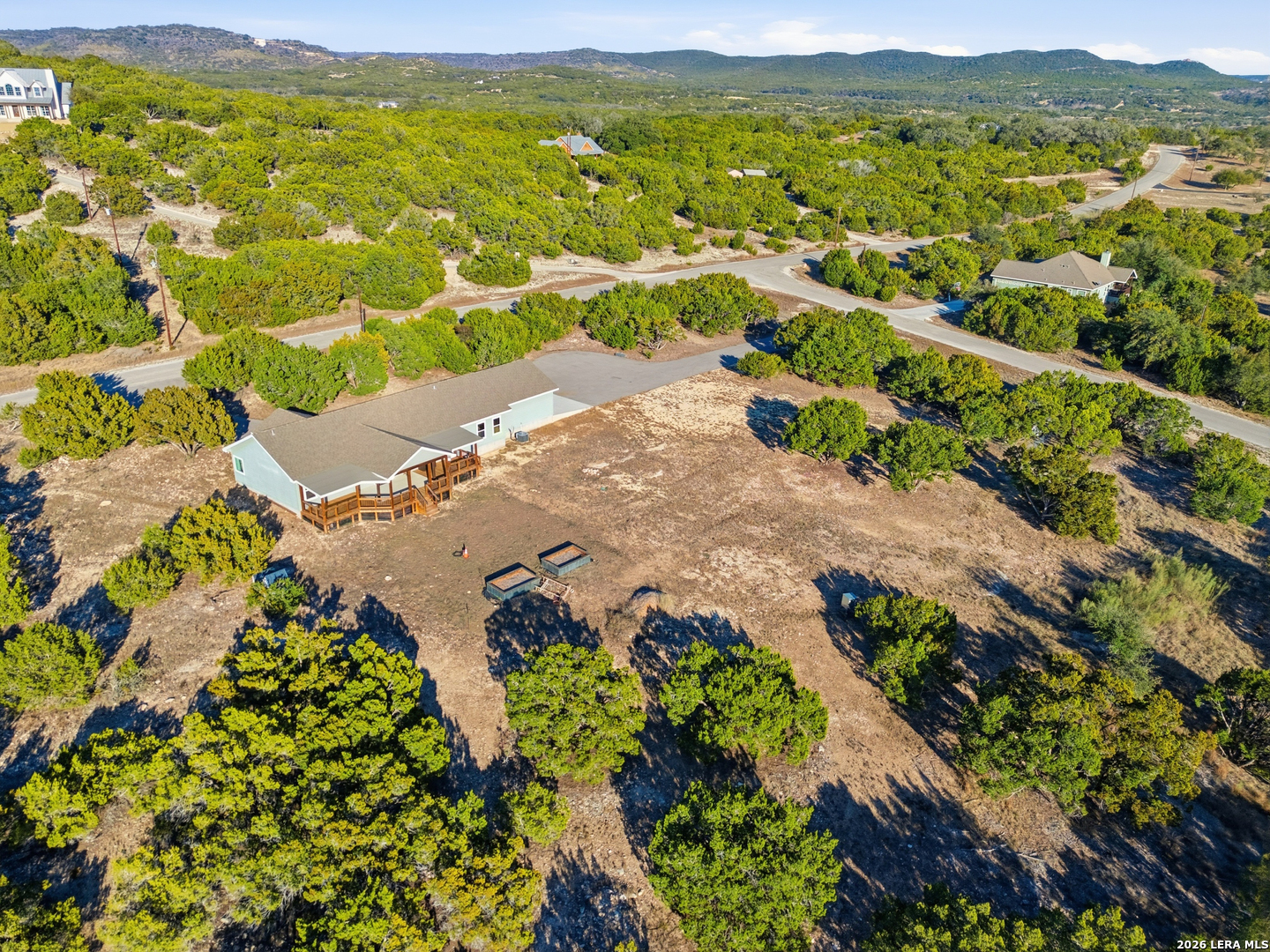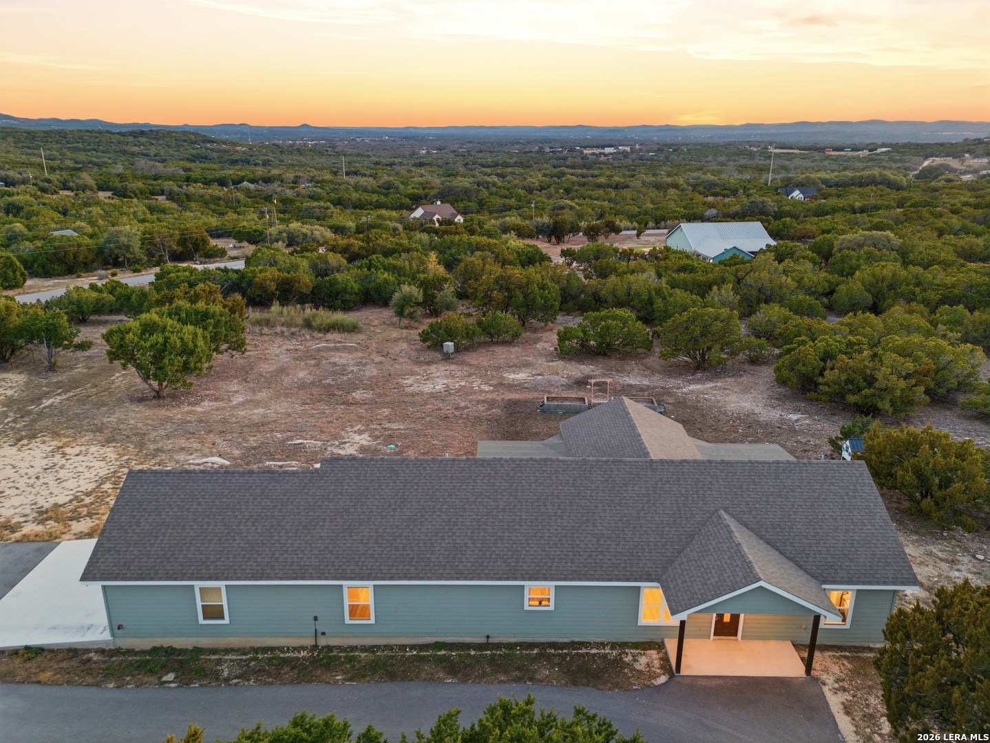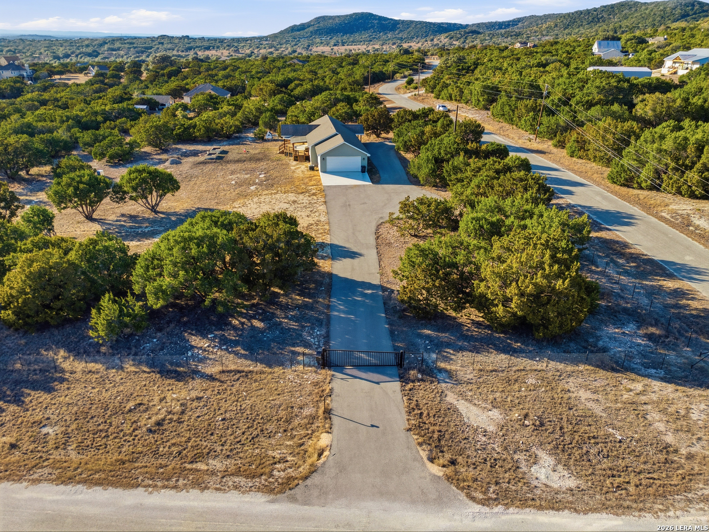 Experience peaceful Hill Country living with convenient access to nearby city amenities in this custom-built 2022 home, perfectly positioned to capture sweeping views in every direction. A newly added covered deck spans the back of the home, creating an ideal space for quiet mornings, evening gatherings, or simply soaking in the stunning scenery. Inside, the bright, open concept living area is designed for connection and comfort, with large windows that frame the landscape and fill the home with natural light. The thoughtful layout includes a Jack and Jill bathroom connecting two secondary bedrooms-one of which features an exceptionally large, primary sized walk-in closet. Originally designed with the flexibility of two primary style suites, this setup offers versatility for guests, multigenerational living, or a luxurious secondary bedroom. The private primary suite provides a relaxing retreat with a freestanding soaking tub, separate shower, and spacious walk-in closet. Ceiling fans throughout add year-round comfort. The property is fully fenced and equipped with both electric and solar powered gates for privacy and ease of access. Modern finishes, a functional layout, and a serene Hill Country setting make this home truly move in ready.