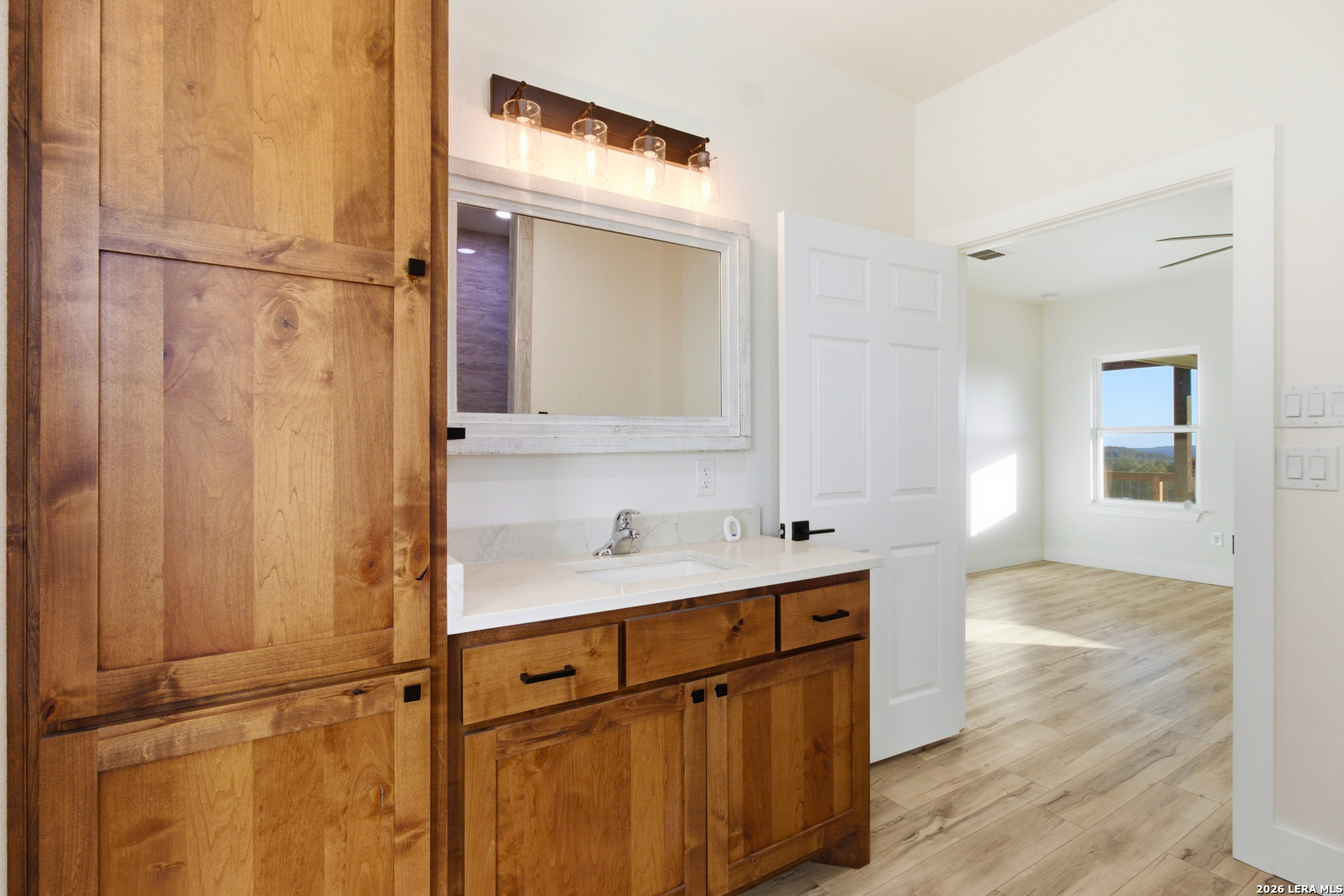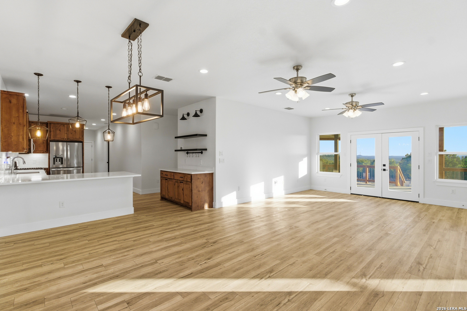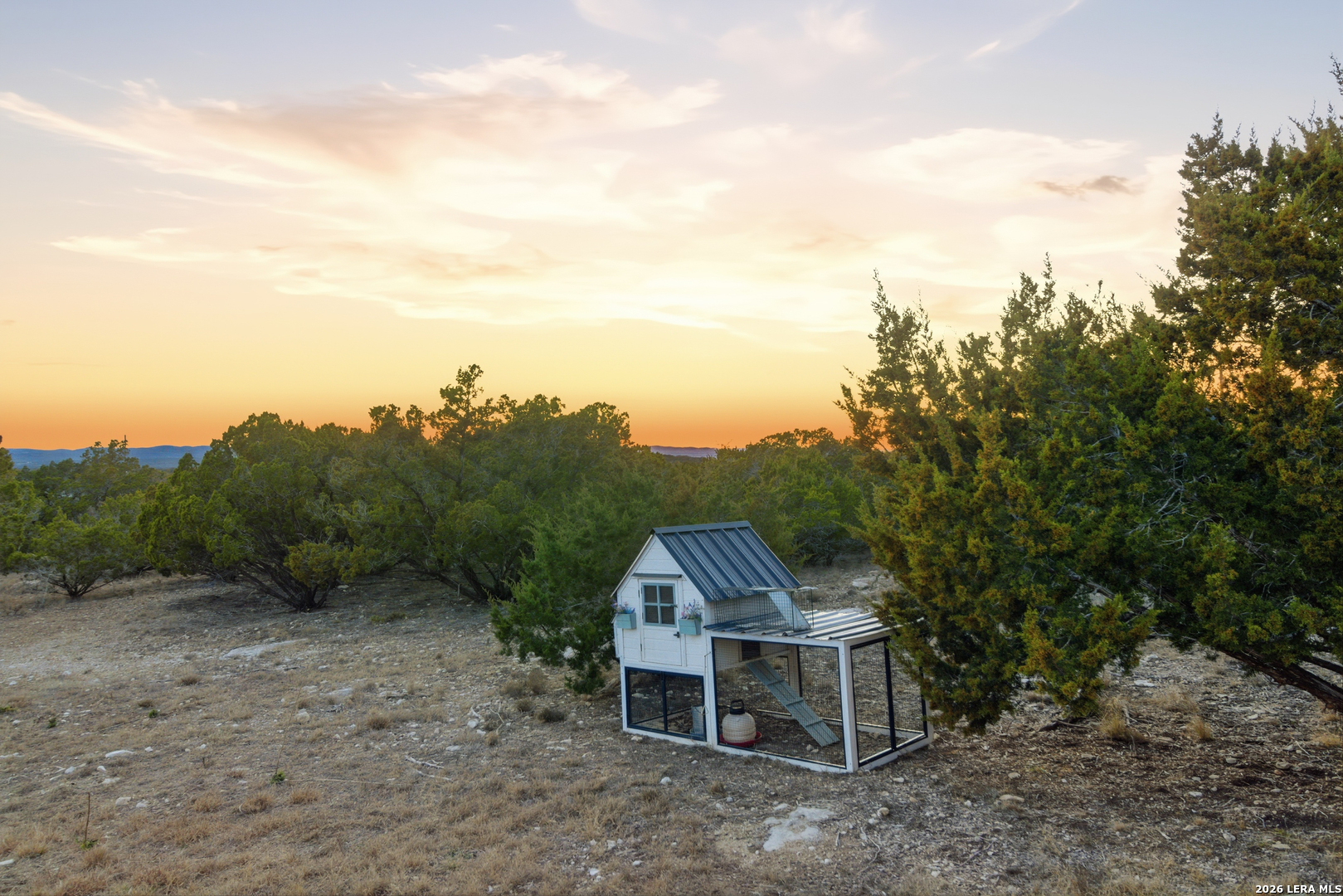 Experience peaceful Hill Country living with convenient access to nearby city amenities in this custom-built 2022 home, perfectly positioned to capture sweeping views in every direction. A newly added covered deck spans the back of the home, creating an ideal space for quiet mornings, evening gatherings, or simply soaking in the stunning scenery. Inside, the bright, open concept living area is designed for connection and comfort, with large windows that frame the landscape and fill the home with natural light. The thoughtful layout includes a Jack and Jill bathroom connecting two secondary bedrooms-one of which features an exceptionally large, primary sized walk-in closet. Originally designed with the flexibility of two primary style suites, this setup offers versatility for guests, multigenerational living, or a luxurious secondary bedroom. The private primary suite provides a relaxing retreat with a freestanding soaking tub, separate shower, and spacious walk-in closet. Ceiling fans throughout add year-round comfort. The property is fully fenced and equipped with both electric and solar powered gates for privacy and ease of access. Modern finishes, a functional layout, and a serene Hill Country setting make this home truly move in ready.