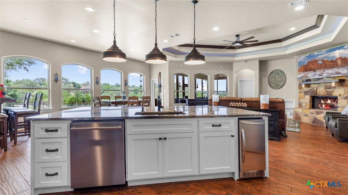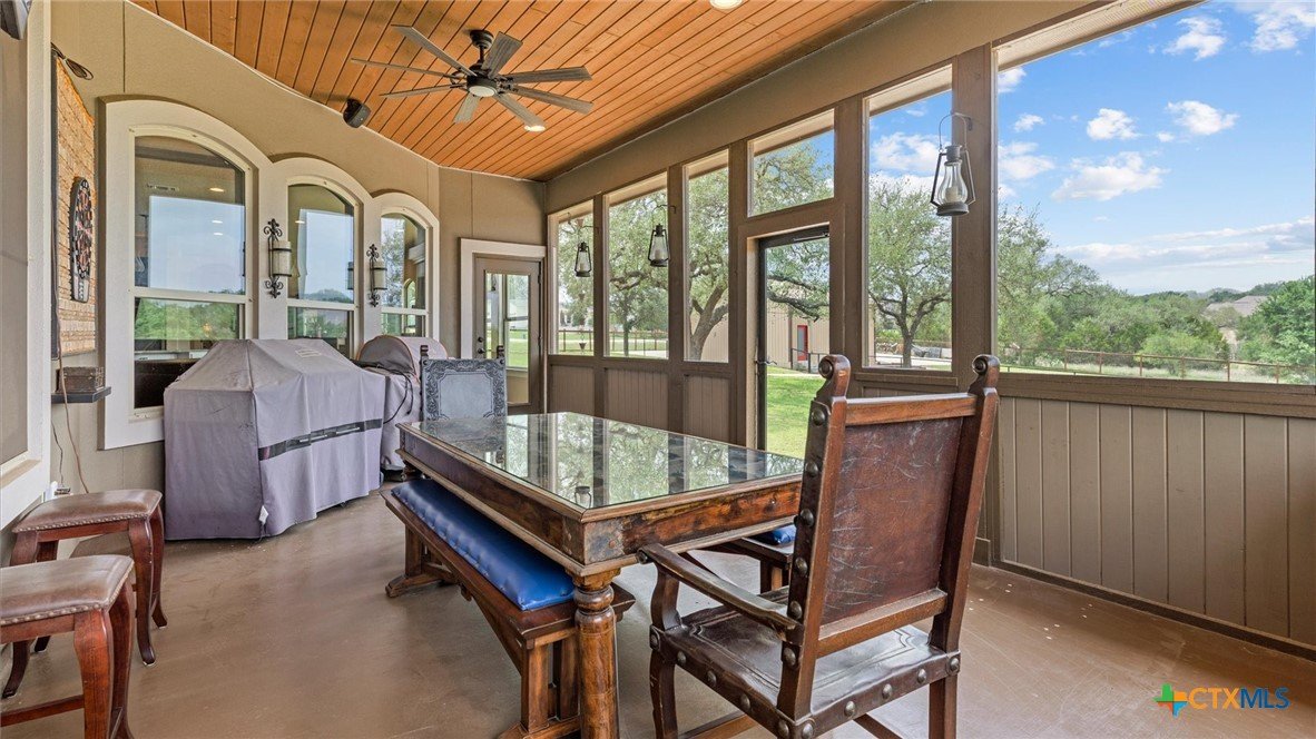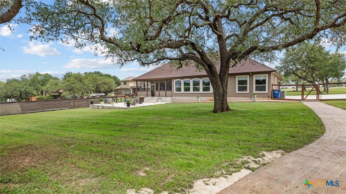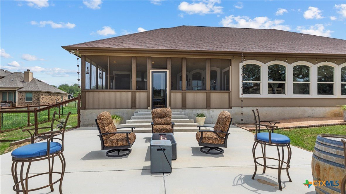 OPEN HOUSE SATURDAY, MAY 3RD 1-3 PM Welcome to 1909 Hunters Cove, a private Hill Country retreat on 1.18 acres in the highly sought-after River Chase community in New Braunfels, Texas. Surrounded by mature trees and scenic views, this beautifully updated 3-bedroom, 2-bath home offers 2,302 square feet of thoughtfully designed living space ideal for both everyday comfort and entertaining. The chef’s kitchen is the heart of the home, featuring a large quartzite island, high-end appliances, gas cooktop, built-in icemaker, and abundant prep and storage space. The open-concept living area showcases high ceilings, expansive windows, and a cozy fireplace, creating a bright and inviting atmosphere. Fresh interior paint and new carpet make this home move-in ready. The spacious primary suite offers a peaceful retreat with a walk-in shower and serene property views. Washer and dryer are included, adding convenience and value for the next owner. Outdoor living truly shines with a screened-in porch, pool, extended driveway for additional parking, and a concrete pad ready for a future pergola. The fully fenced backyard includes a 30x30 workshop with electricity, ideal for storage, hobbies, or boat/RV use. Located in River Chase, residents enjoy private Guadalupe River access, a 58-acre river park, walking trails, clubhouse, pool, and tennis courts—offering a true Hill Country lifestyle just minutes from New Braunfels and Canyon Lake.