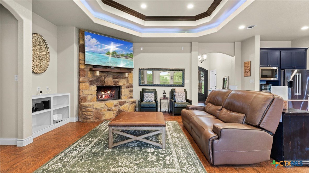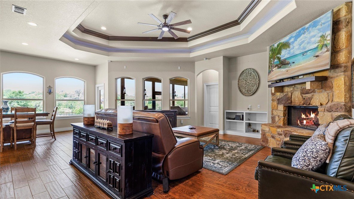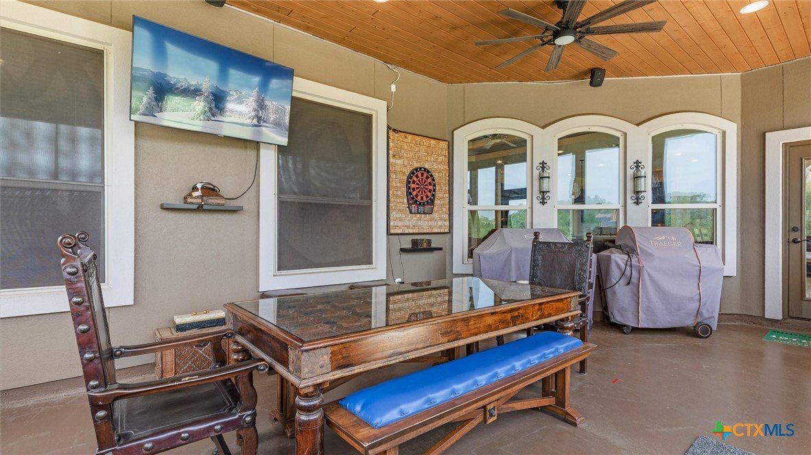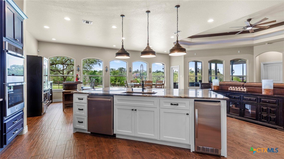 OPEN HOUSE SATURDAY, MAY 3RD 1-3 PM Welcome to 1909 Hunters Cove, a private Hill Country retreat on 1.18 acres in the highly sought-after River Chase community in New Braunfels, Texas. Surrounded by mature trees and scenic views, this beautifully updated 3-bedroom, 2-bath home offers 2,302 square feet of thoughtfully designed living space ideal for both everyday comfort and entertaining. The chef’s kitchen is the heart of the home, featuring a large quartzite island, high-end appliances, gas cooktop, built-in icemaker, and abundant prep and storage space. The open-concept living area showcases high ceilings, expansive windows, and a cozy fireplace, creating a bright and inviting atmosphere. Fresh interior paint and new carpet make this home move-in ready. The spacious primary suite offers a peaceful retreat with a walk-in shower and serene property views. Washer and dryer are included, adding convenience and value for the next owner. Outdoor living truly shines with a screened-in porch, pool, extended driveway for additional parking, and a concrete pad ready for a future pergola. The fully fenced backyard includes a 30x30 workshop with electricity, ideal for storage, hobbies, or boat/RV use. Located in River Chase, residents enjoy private Guadalupe River access, a 58-acre river park, walking trails, clubhouse, pool, and tennis courts—offering a true Hill Country lifestyle just minutes from New Braunfels and Canyon Lake.