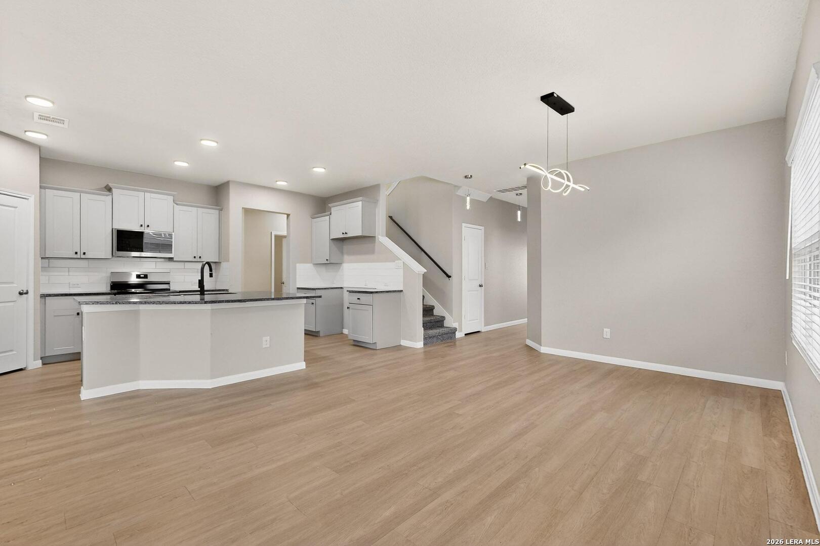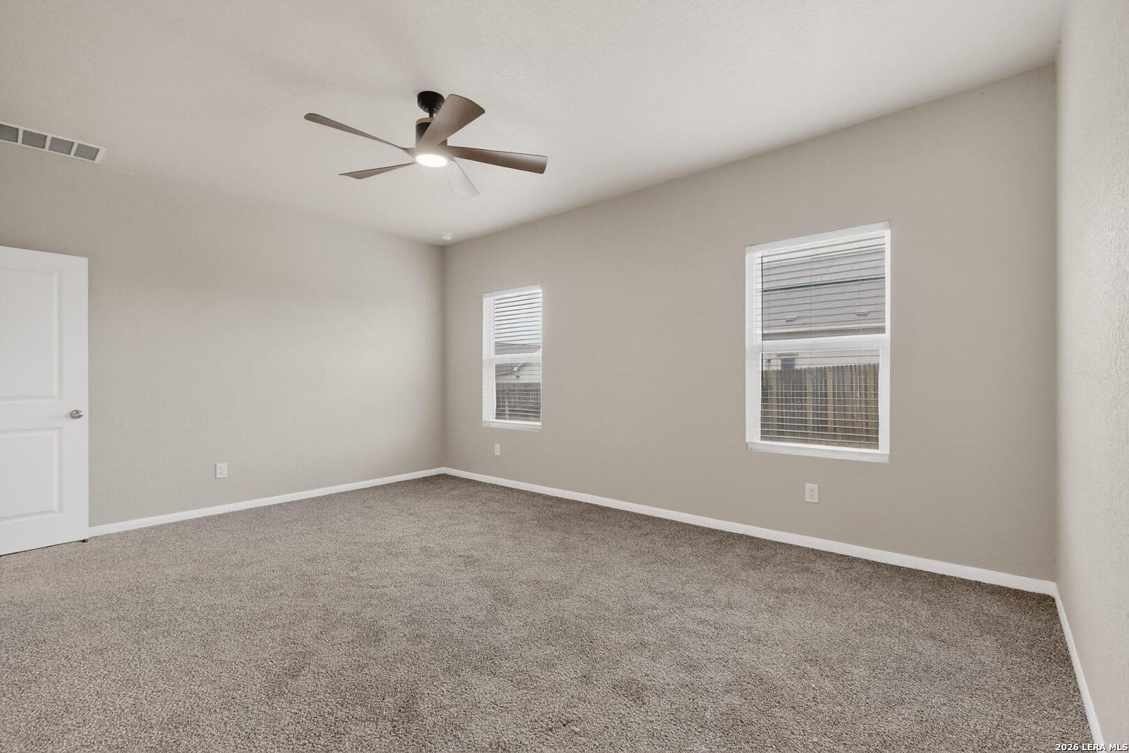 This 5 bedroom, 3 1/2 bath home has no lack of space! Once in the door, there is an office that is perfect for working from home or using as a craft room. The granite kitchen is open to dining and living area. Perfect for large gatherings and entertaining. Main bedroom is located on the first floor and has an fantastic walk in shower with a spacious walk in closet. Upstairs, you will find additional living space which is perfect for gaming, play room or tv time. Two full bathrooms on second floor that both feature shower/tub combo. Recent updates include interior paint, new light & plumbing fixtures, exterior solar light, and finished garage flooring. Enjoy the energy efficiency with solar panels and exterior has gutters & sprinkler system. Neighborhood is known for community gatherings yet quiet living. Walking distance to elementary and middle schools.