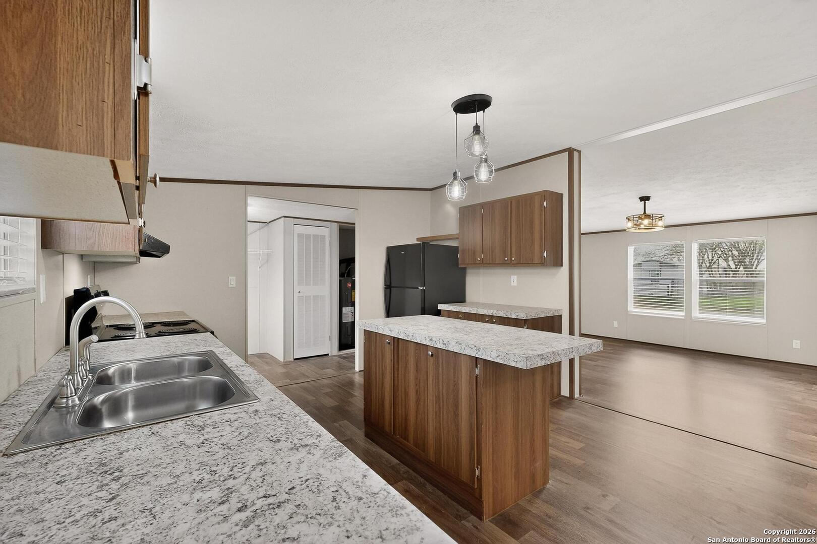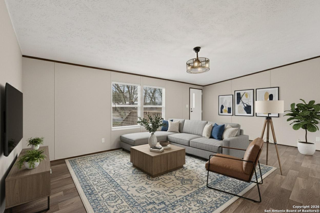 Spacious, remodeled 4-bedroom, 2-bathroom Mhome featuring two living areas and an island kitchen with new appliances. Situated on a fenced 0.26-acre lot with city utilities. Move-in ready. Financing options available for first-time homebuyers, including VA, conventional, and seller financing (subject to approval). No HOA! Amplia casa manufacturada remodelada de 4 recamaras y 2 banos completos, con dos areas de sala y cocina con isla equipada con electrodomesticos nuevos. Ubicada en un lote cercado de 0.26 acres con servicios de la ciudad. Lista para habitar. Opciones de financiamiento disponibles para compradores por primera vez, incluyendo VA, convencional y financiamiento por el vendedor (sujeto a aprobacion). Propiedad sin restricciones
