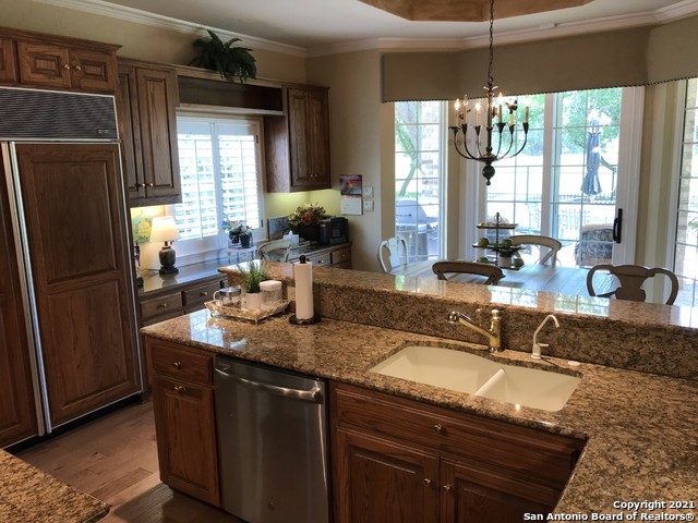 Beautifully updated custom Hollaway home located on the 4th. fairway of Sonterra's north course. Updated 4BR/3.5BA home with Study and upstairs Gameroom. Island Kitchen has granite counters, double ovens, butler's pantry and Breakfast area. Family room has wood burning fireplace and wet bar. Luxurious Master Suite has 2 walk-in closets, garden tub and outside access to enjoy the gorgeous views. Generous sized extra Bedroom's. 2 Car garage plus Golf cart bay. Lawn services included. Pets are negotiable.