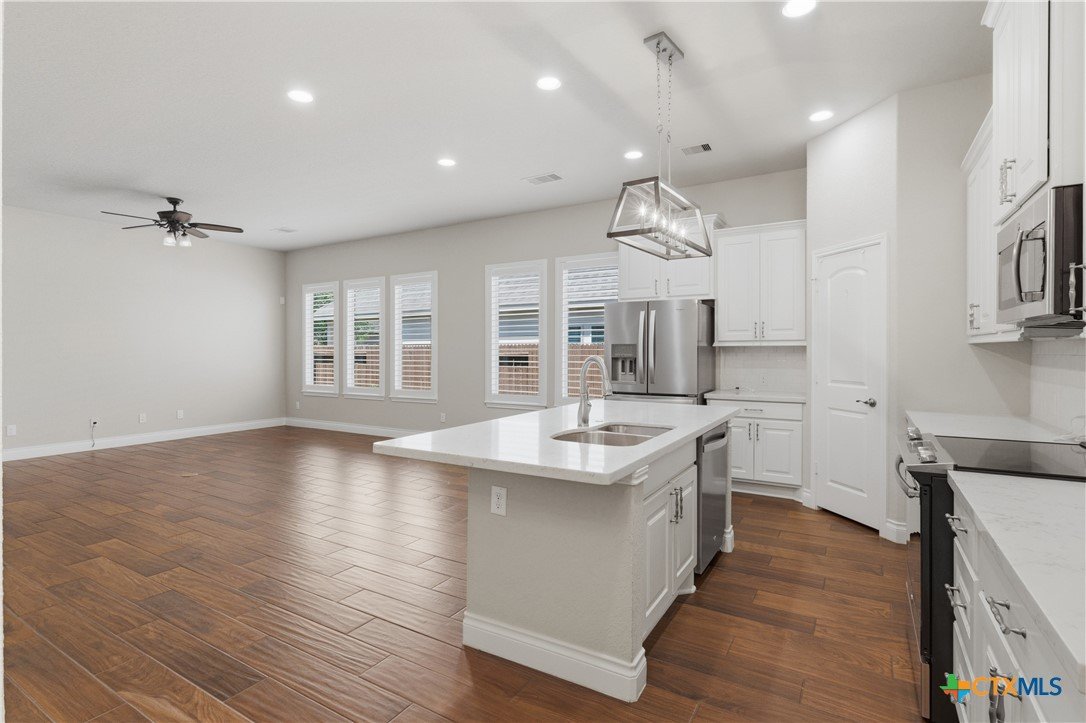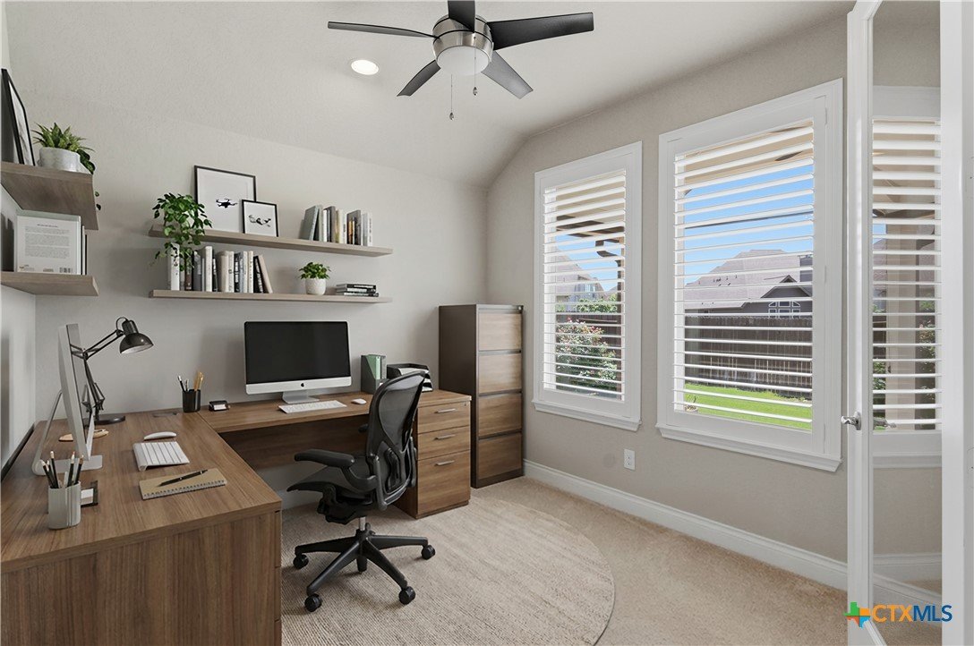 Welcome to 1917 Creek Ridge St in Seguin, TX. This is an exceptionally well-maintained home that perfectly blends comfort, functionality, and location. This 3 bedroom, 2 bathroom property also features a dedicated office that is ideal for working from home or can also be used as a playroom or even a flex space to fit your lifestyle. Step inside to an inviting open floor plan that creates a seamless flow between the living, dining, and kitchen areas which is perfect for both everyday living and entertaining. The home offers an abundance of storage throughout, making organization effortless. Thoughtful upgrades include beautiful plantation shutters that add both style and energy efficiency, as well as a roll-up shade on the back patio, providing extra privacy and protection from the Texas sun. Located in the highly desirable Navarro ISD and just minutes from New Braunfels, with easy access to San Antonio and Austin, this home offers the perfect balance of small-town charm and big-city convenience. This move-in-ready home has been meticulously cared for and is ready for its next owner to love it just as much. Don’t miss out! Schedule your showing today and let’s make this house your home.