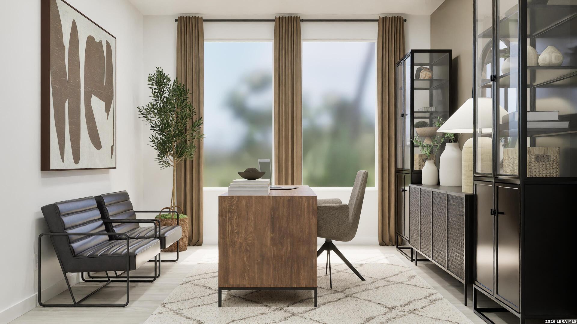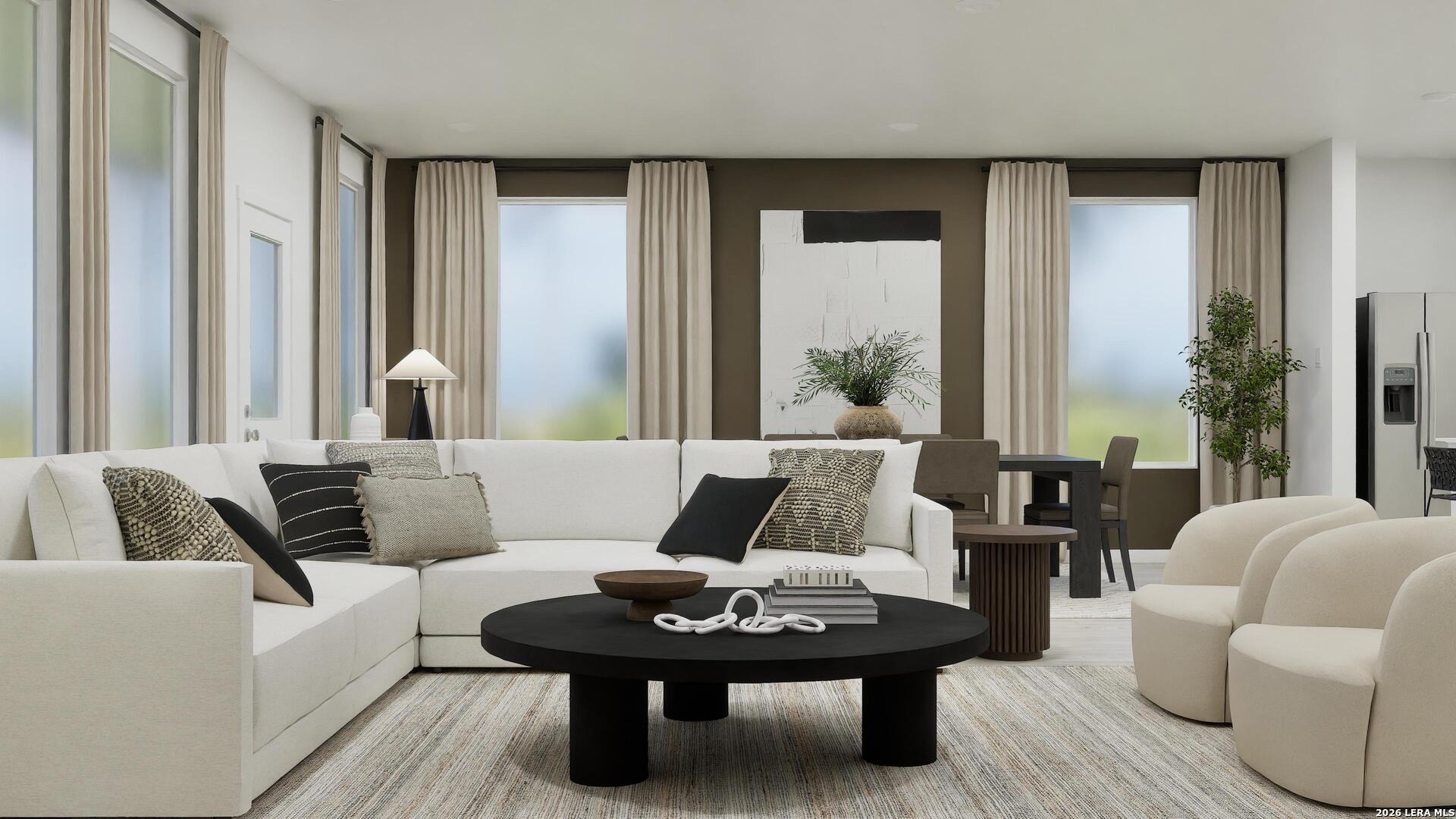 The Santana - This new single-story home offers a modern and low-maintenance design. Three secondary bedrooms are located near the front of the home near an inviting and spacious open-concept layout that blends the kitchen, living and dining areas. A nearby covered patio provides year-round outdoor entertaining. A convenient flex space is tucked away to the side of the home, while a luxurious owner's suite offers access to a full bathroom and walk-in closet. Estimated Completion August 2026. The completion date, prices and features may vary and are subject to change. Please verify with Lennar directly. Photos are for illustrative purposes only.