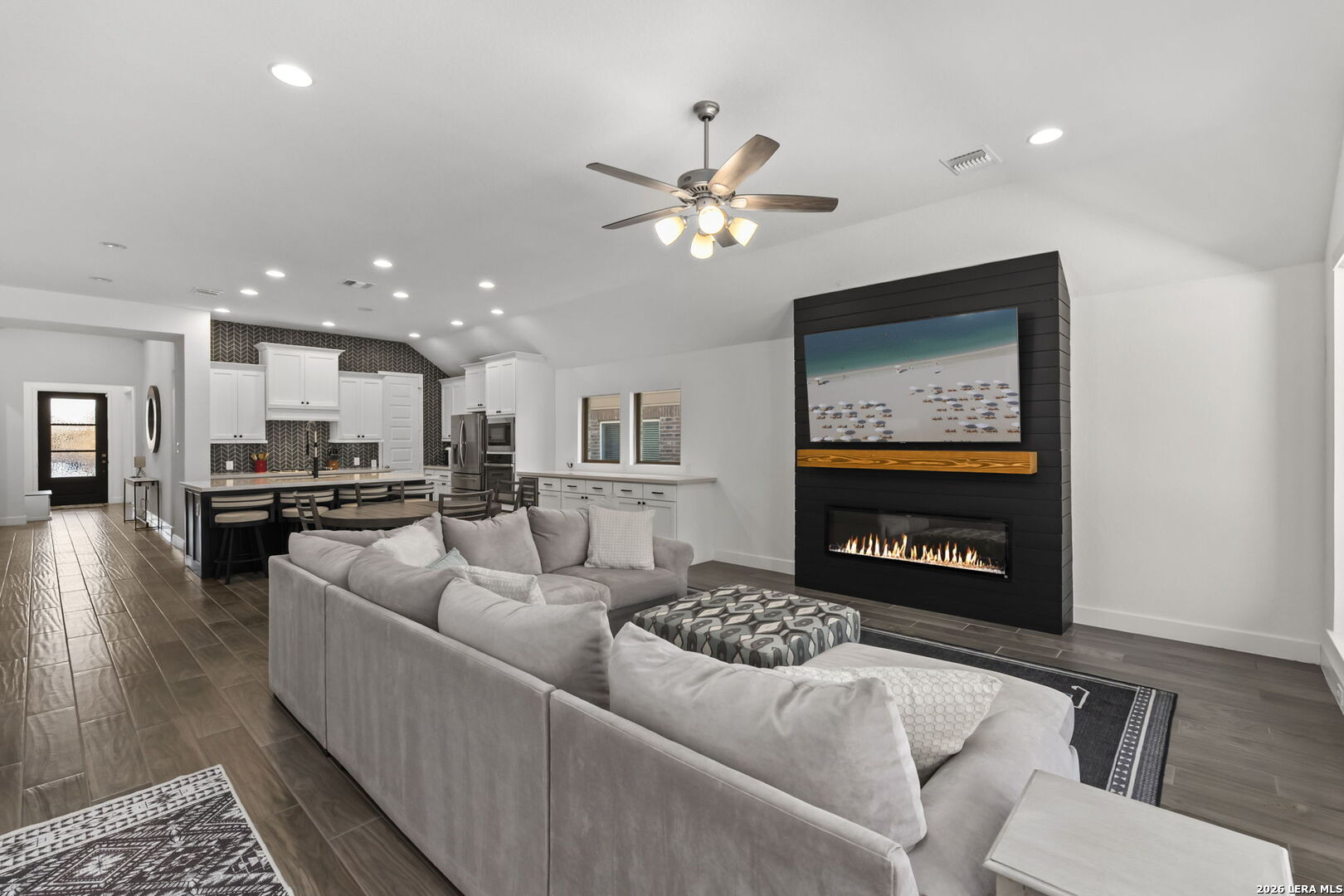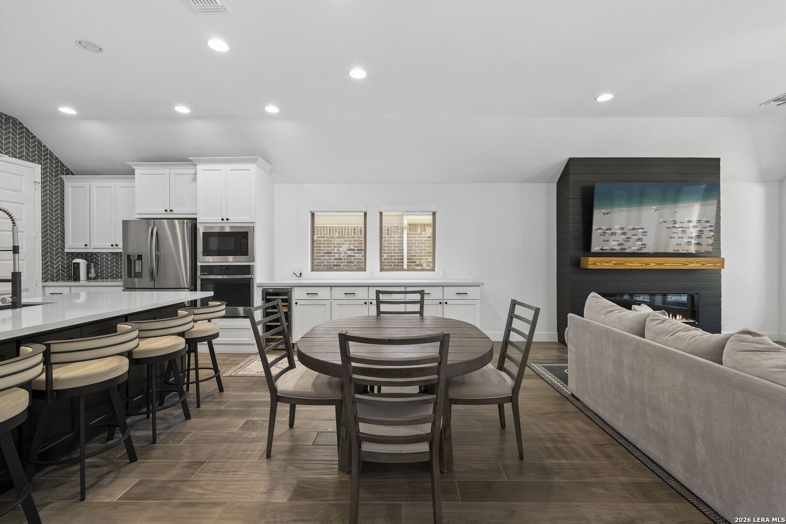 This thoughtfully upgraded home has been lived in for just two years and offers a layout designed for both everyday living and flexibility. The open kitchen features generous storage and a built-in wine fridge, flowing easily into the main living space for effortless entertaining. The living room and primary bedroom each include their own fireplace, adding warmth and character to both spaces. Custom closet systems provide smart storage throughout the home, while the laundry room has been enhanced with additional counter space and built-in storage. A spacious game room offers versatility and can easily function as a home office, personal library, or secondary living area. One secondary bedroom includes a private en-suite full bathroom, making it well-suited for guests or multigenerational living. The backyard backs to private land, offering added privacy with no rear neighbors. With numerous upgrades already completed and a location that balances comfort and convenience, this home is one worth seeing in person.