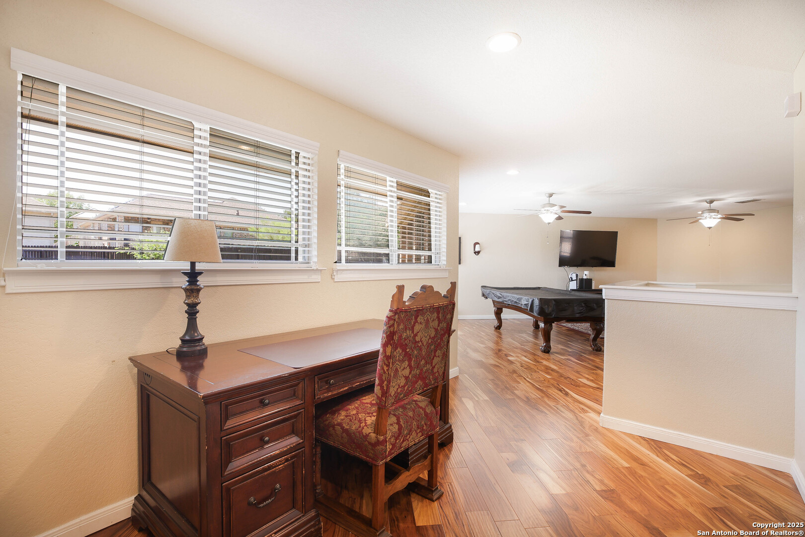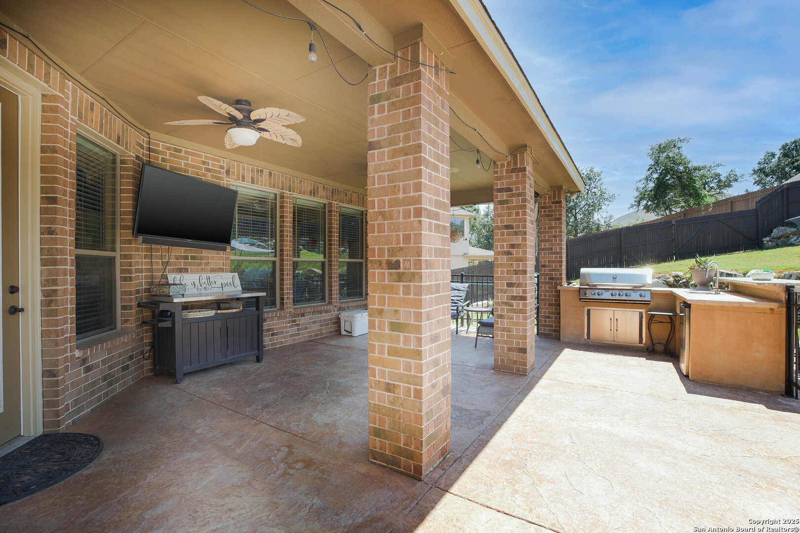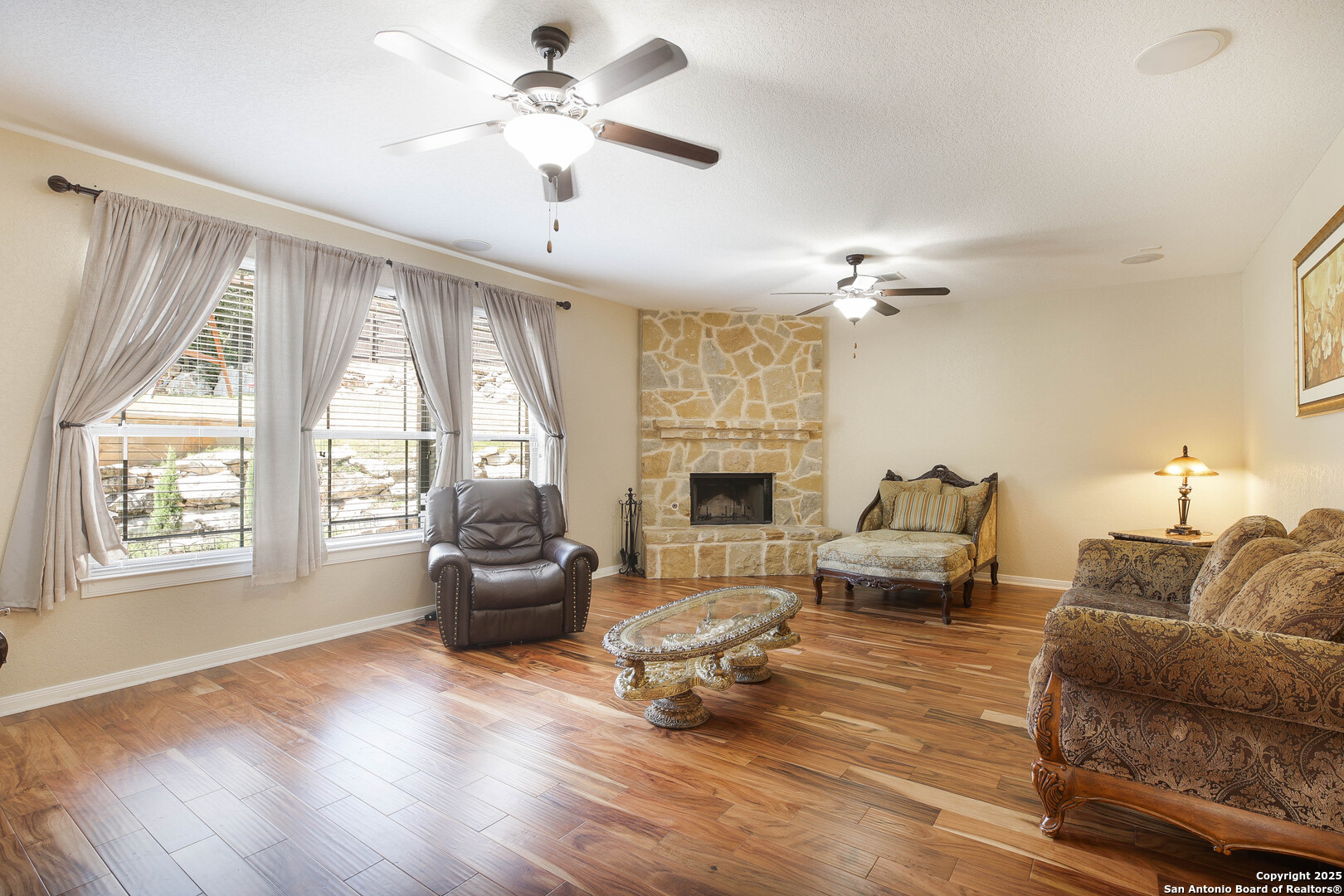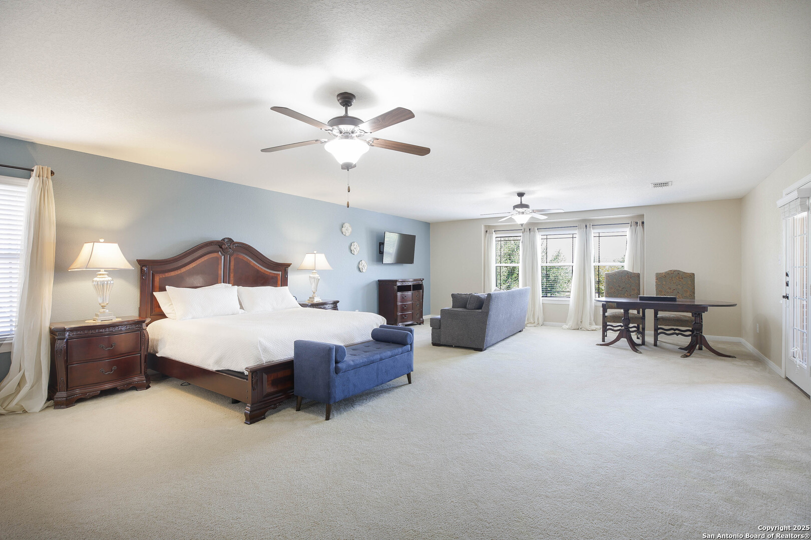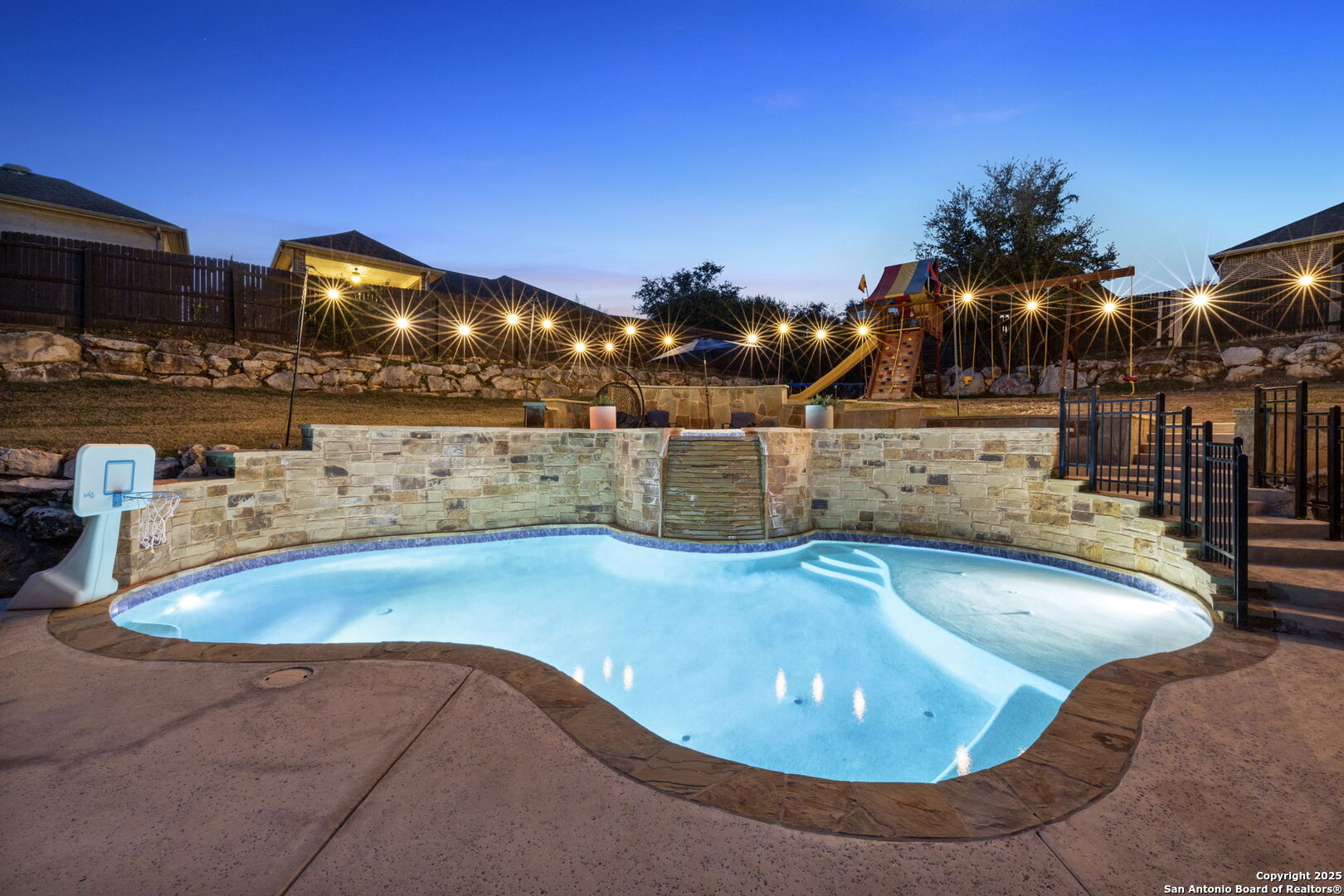 Timeless Elegance Meets Modern Luxury. Tucked away on a quiet cul-de-sac, this 5-bedroom, 3-bath residence blends classic design with modern comfort. With three spacious living areas, the home offers both refined entertaining spaces and inviting retreats. Featuring secondary bedroom on main level. Rich wood details and architectural character add warmth and timeless sophistication throughout. The expansive owner's suite is a private sanctuary-extra large in scale and featuring its own balcony, the perfect place to begin and end each day with that cup of coffee or sipping on a glass of wine. Outdoors, discover a resort-style haven designed for every occasion. The newer built pool-with cascading waterfall and integrated hot tub-this Texas Pools and Patio features this masterpiece for its beauty, design and craftsmanship. Two in-pool loungers, 3 in-pool stools and in-pool table w/ umbrella convey. A covered patio with built-in BBQ and mini-fridge and television creates the ideal space to watch the game or host gatherings in comfort.Beyond the pool and covered patio, a charming gazebo invites al fresco dining and evening conversations, while a newer playscape offers a perfect spot for laughter and adventure-making the backyard a retreat for all ages. Together, these features make the backyard a destination all its own. This rare offering combines elegance, comfort, and a lifestyle meant to be enjoyed. Situated just behind Methodist hospital in Stone Oak, with quick access to 281 and 1604. Minutes from the airport, and nearby world class dining and shopping makes this a convenient location for all. Seller willing to negotiate concessions