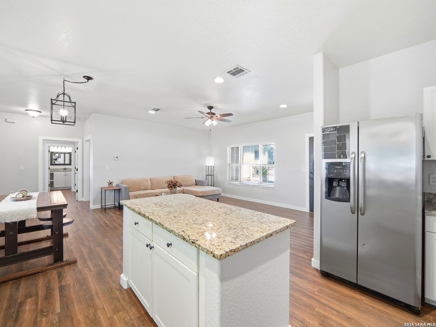 Take advantage of this exceptional opportunity to own a beautifully designed home in the desirable Weston Homeplace community, where comfort and style come together seamlessly; this spacious residence offers 3 bedrooms and 3 full bathrooms, along with an open-concept layout that effortlessly connects the living, dining, and kitchen areas, creating an ideal space for both everyday living and entertaining, while the interior showcases elegant finishes including tile flooring with a wood-look design, striking granite countertops, and a clean, modern aesthetic enhanced by thoughtfully selected designer colors; the well-maintained exterior features a landscaped yard and a dedicated RV concrete pad, adding both convenience and versatility, and all appliances-including the washer and dryer-are included for a truly move-in-ready experience; Home has been freshly painted inside for a fresh feeling and flow! Enjoy peaceful evenings on the patio or take advantage of the neighborhood's welcoming atmosphere with relaxing walks, all while being centrally located near a variety of shopping, dining, entertainment options, and highly regarded schools, making this home a perfect fit for a wide range of lifestyles.