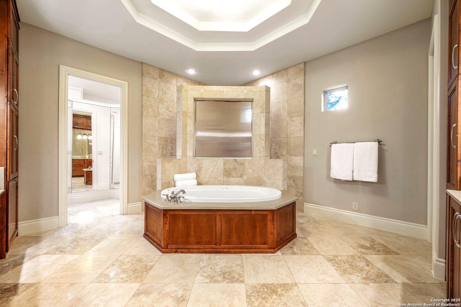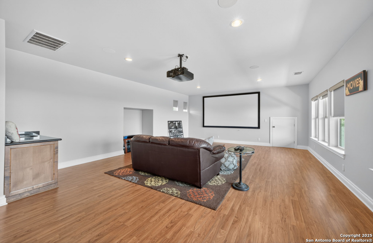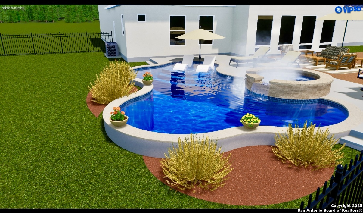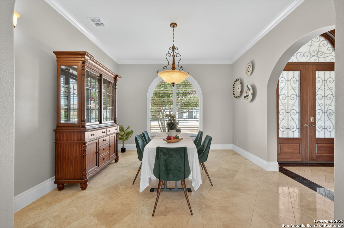 Welcome to 19223 Terra Rock, a residence in the Texas Hill Country designed to blend comfort and sophistication. This home is positioned on a 0.691-acre lot, offering scenic views of San Antonio and the surrounding Texas Hill Country. It features an open floor plan with ceilings that range from ten to twenty feet high, large windows, travertine flooring, and elegantly arched doorways. At the center of the home is a gourmet kitchen, which includes a spacious granite island, high-end "Viking" appliances, custom wood cabinetry, a six-burner gas cooktop, a dedicated vegetable sink, dual-element induction cooking, and an integrated refrigerator, catering to those who enjoy cooking. The property also contains two living areas and three dining areas, a study, a spacious exercise room, a media room, and a game room. The primary suite features an expansive bedroom with a walk-in closet and a luxurious bathroom, which includes a Jacuzzi tub and a multi-head shower. Additionally, there are two secondary bedrooms located on the first floor and two more bedrooms on the upper level. At the back of the home, there is a deck equipped with an outdoor kitchen, allowing for outdoor dining while taking in the views of the surrounding landscape. The neighborhood offers various amenities, including walking trails, a pavilion, sports courts, a swimming pool, and a basketball court. The property's location is convenient, with easy access to The Rim, La Cantera, the University of Texas at San Antonio (UTSA), the United Services Automobile Association (USAA), Valero Headquarters, and other notable landmarks in San Antonio, making it ideal for both work and leisure. For those interested in additional outdoor space, there is an option to purchase the adjacent 1.026-acre lot at 19219 Terra Rock, and the community is guard-gated for added security. This home is ready to move into today and convenience, incredible views and luxury living awaits!