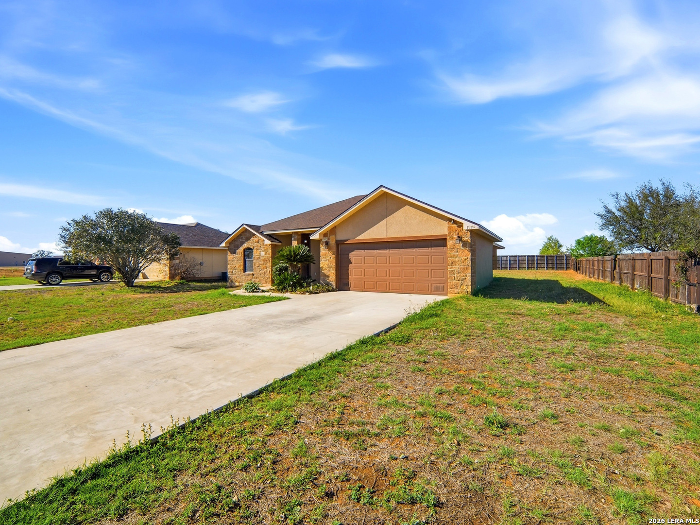 Attractive 3-bedroom, 2-bath rock and stucco home in the desirable Bonita Vista subdivision. Recent updates include a new roof and new appliances in 2026, new kitchen sink, and new bedroom carpet. Spacious kitchen with island, ample cabinetry, and breakfast bar opens to the living and dining areas. Split floor plan. Primary suite features a tiled walk-in shower, generous closet space, and nice vanity/storage area. Ceiling fans, covered front entry, 2-car garage. One of the best values in Bonita Vista.