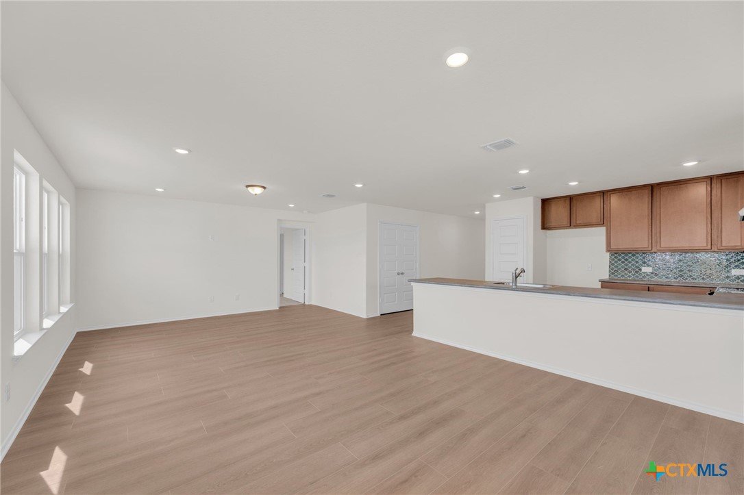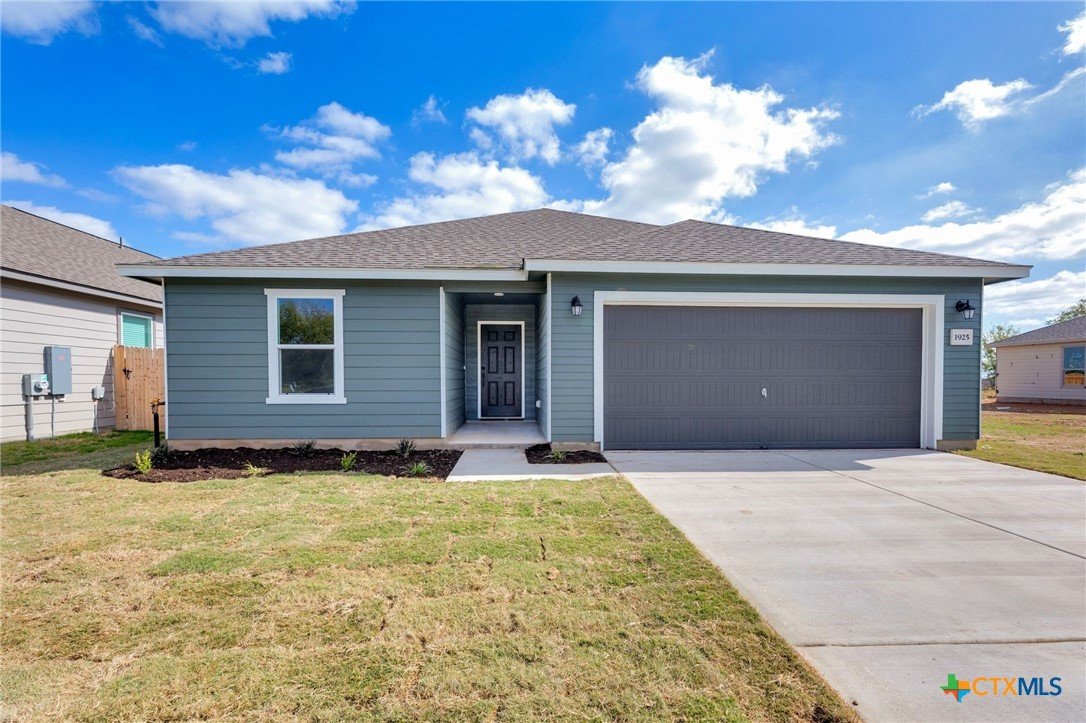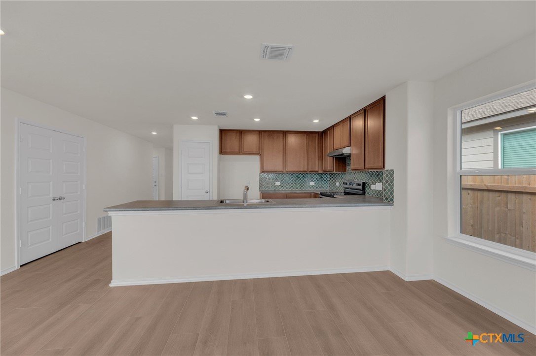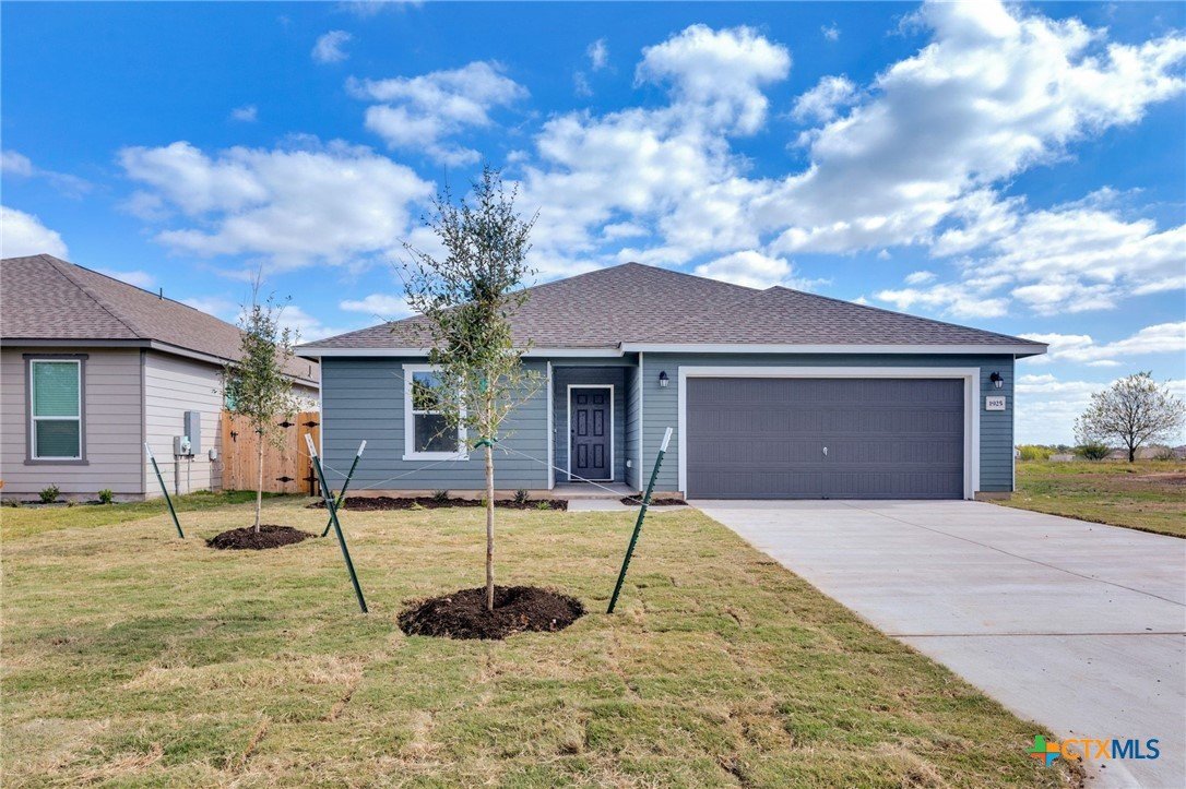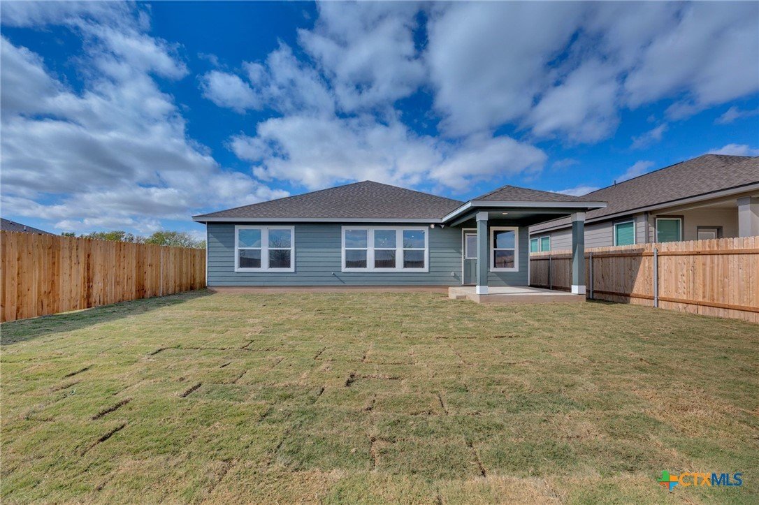Discover this charming single-story home featuring a spacious great room, perfect for relaxing or entertaining. A versatile den offers space for a home office or retreat. The kitchen boasts flat panel upper cabinets in Ginger, complemented by durable laminate countertops in Roca Bosco, and a sleek tile backsplash. The primary bedroom features a walk-in closet, while the connecting bath offers a dual sink vanity with Silestone® countertops, and a tub/shower combination with a tile surround. Enjoy stylish luxury vinyl plank flooring in the kitchen and great room, plush carpet in the den and bedrooms, and timeless tile flooring in the bathrooms. Additional highlights include a smart thermostat, Sherwin-Williams® interior paint, and Moen® fixtures throughout. Outside, the covered back patio provides the ideal spot for outdoor relaxation.