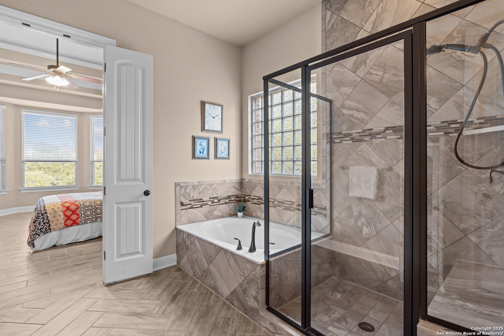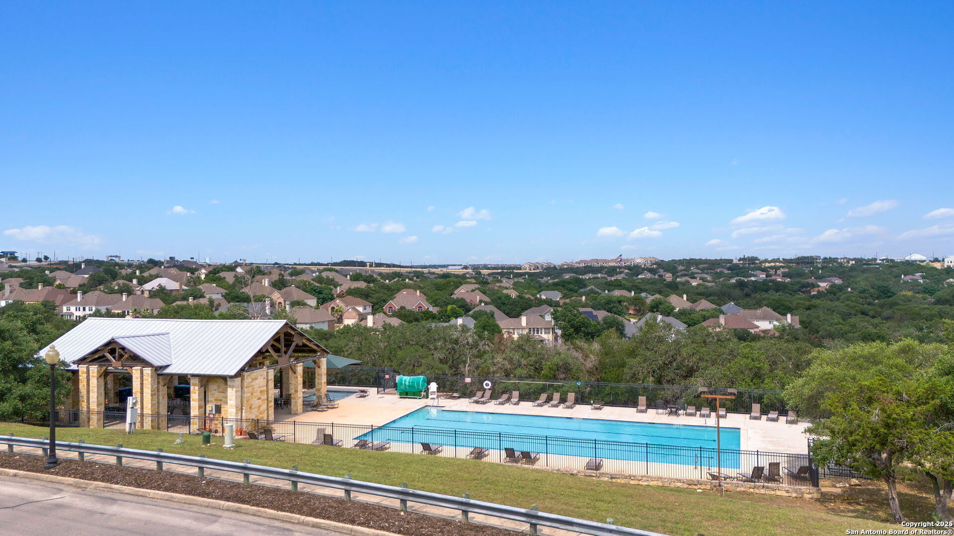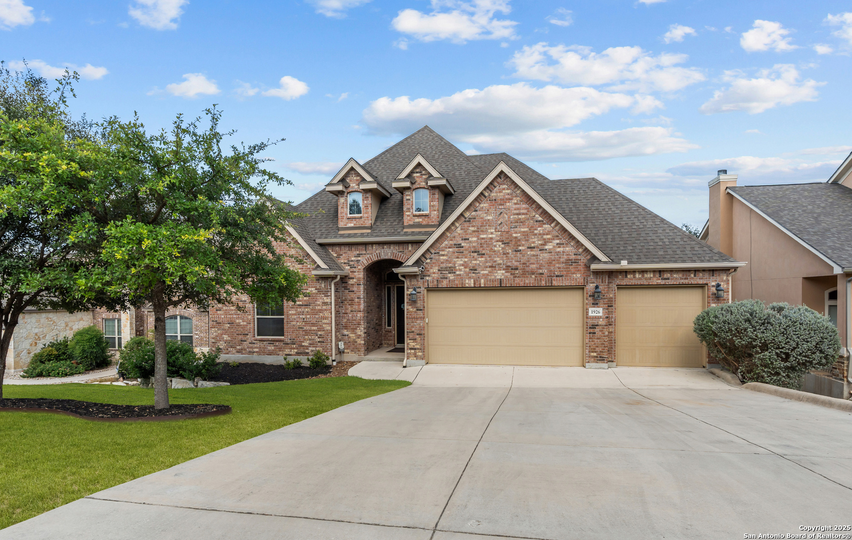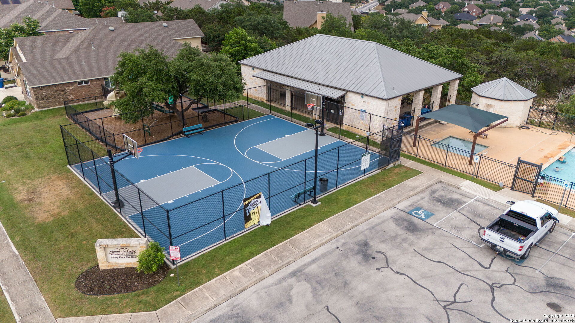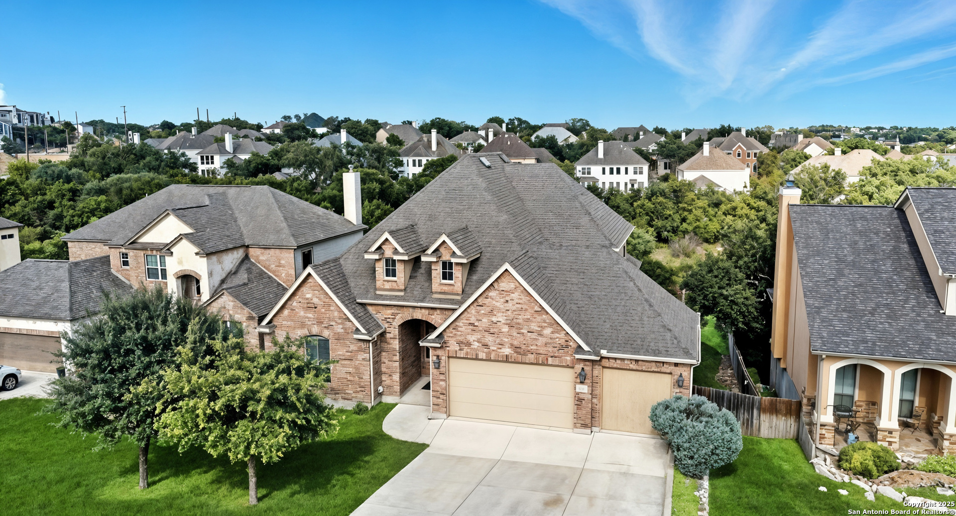 WELCOME HOME to this immaculate 1.5-story home tucked away on a cul-de-sac street and backing to a beautiful greenbelt in highly desirable Mountain Lodge! **VA Assumable for eligible veterans at 2.25%.** Designed for both comfort and flexibility, this open and thoughtfully planned layout features three spacious bedrooms and three full baths, a formal dining room, plus a versatile flex room ideal for a home office, workout space, or fourth bedroom (note: no closet, but not a Texas requirement for a bedroom), all on the main level. Upstairs, a large game room with its own full bath and walk-in closet offers the perfect opportunity for a private guest suite, or even a fifth bedroom, if desired. At the heart of the home is a chef's kitchen featuring stainless steel appliances, gas cooking, granite countertops, a walk-in pantry, and an oversized L-shaped island with counter-height seating that opens to the breakfast area and family room perfect for everyday living or gathering with friends and family. A wall of windows along the back of the home fills the space with natural light and showcases the serene greenbelt views. The primary suite serves as a relaxing retreat with new wood-like tile flooring in the bedroom, a large walk-in shower with full tile surround, a garden tub, and a spacious walk-in closet. Additional highlights include tall and coffered ceilings, wood-look tile throughout the main level, granite counters and framed mirrors in all bathrooms, a three-car garage, a recently replaced water heater, whole-house water filtration system, water softener, gutters, and so much more. Out back, enjoy an extended covered patio with a rich wood ceiling and two ceiling fans perfect for peaceful mornings, outdoor dining, or unwinding in the evening. There's under-deck storage and plenty of space to run, play, or explore the greenbelt. A gas stub on the patio makes outdoor grilling a breeze. This home offers the perfect blend of style, comfort, and relaxed Hill Country living all just a short walk from one of the community pools. Mountain Lodge is a gated community with two entrances, two large pools, baby pools with sunshades, a park, and a basketball court. The home is zoned to award-winning NEISD schools and is within walking distance to Tuscany Heights Elementary. With the completion of highway construction, HWY 281 now provides quick access to 1604 and beyond. This location is convenient to the JW Marriott TPC golf course, Stone Oak shopping and dining, hospitals, and major employers-all with no city taxes. Don't miss out!