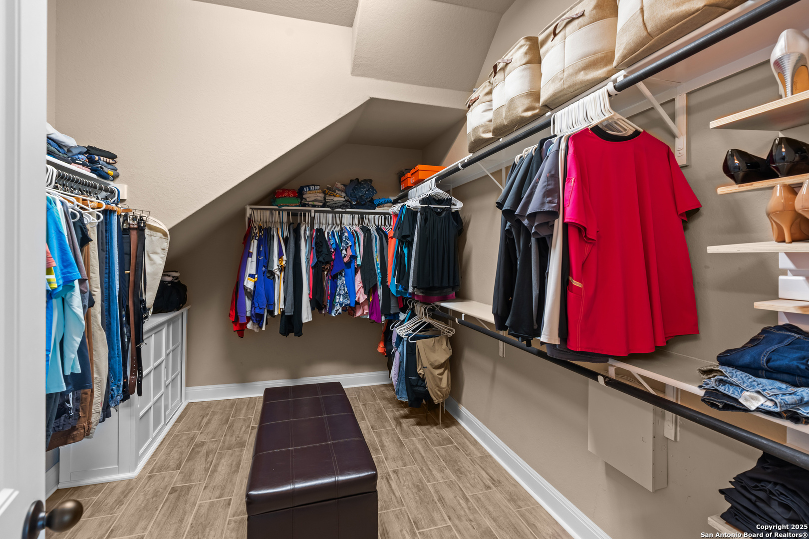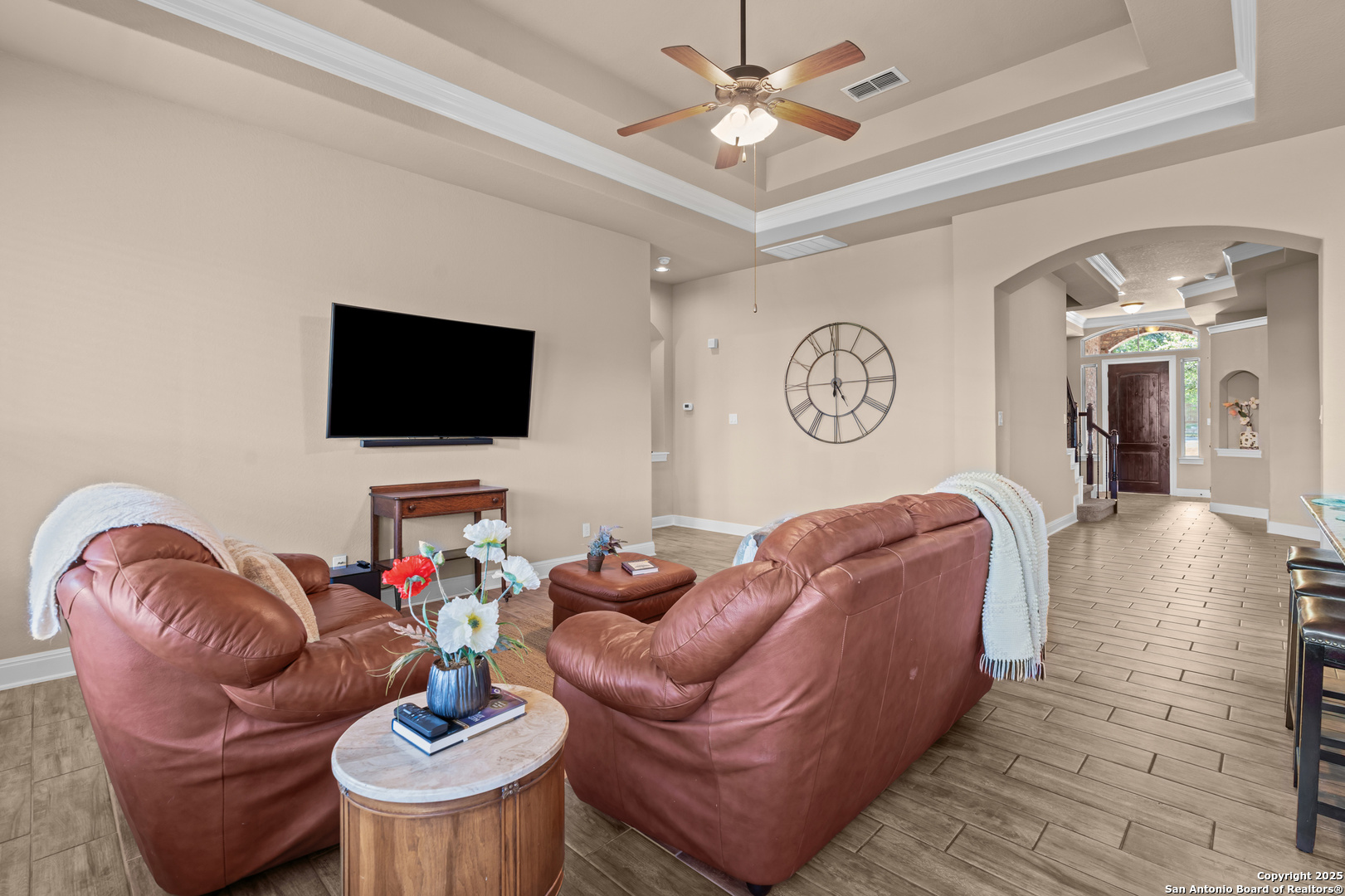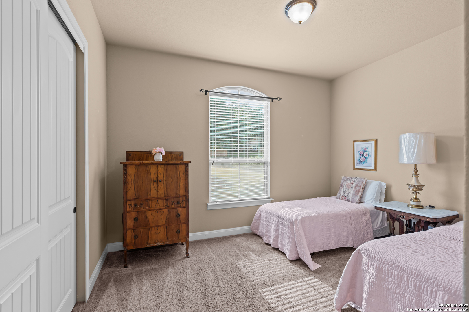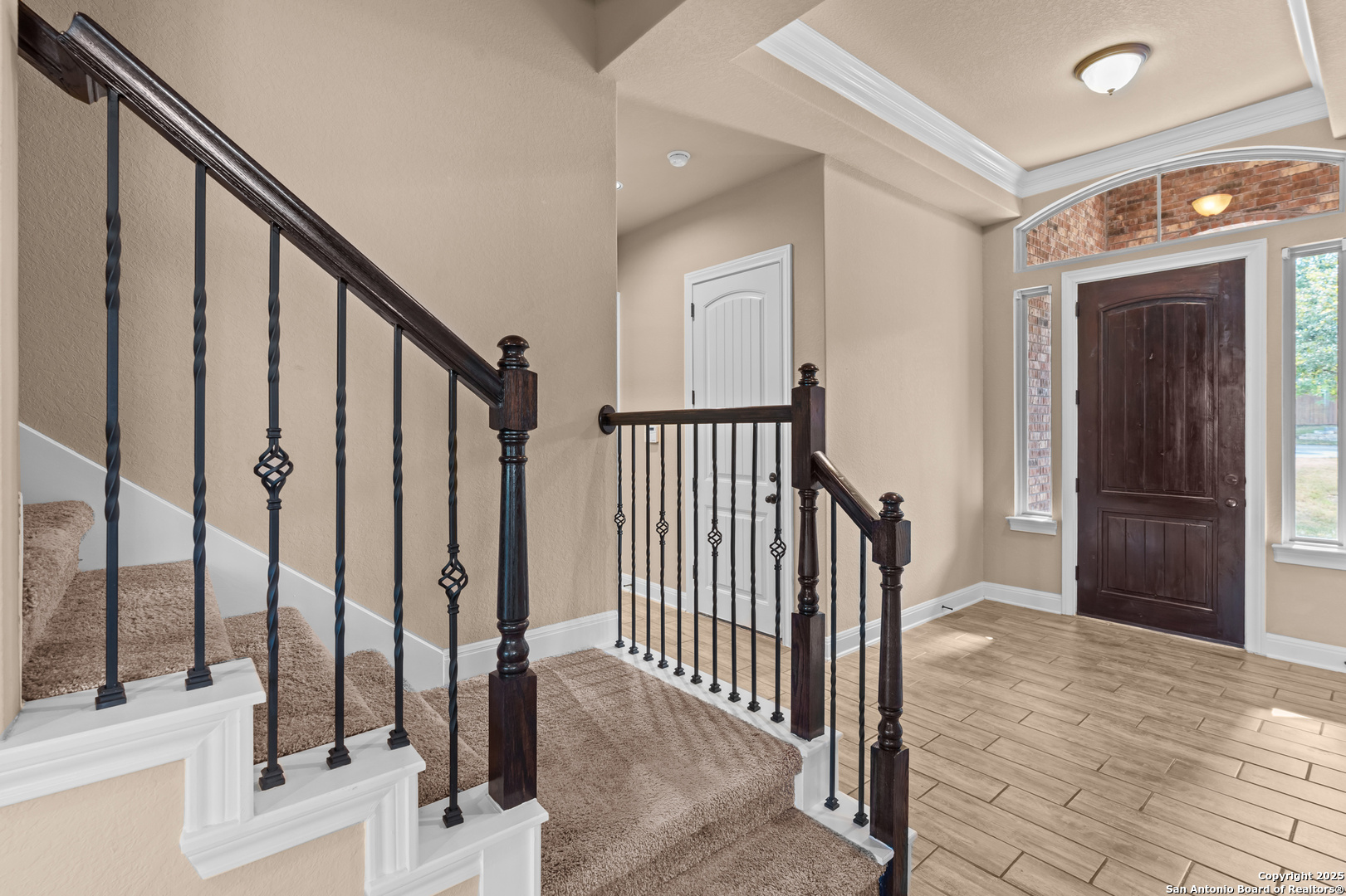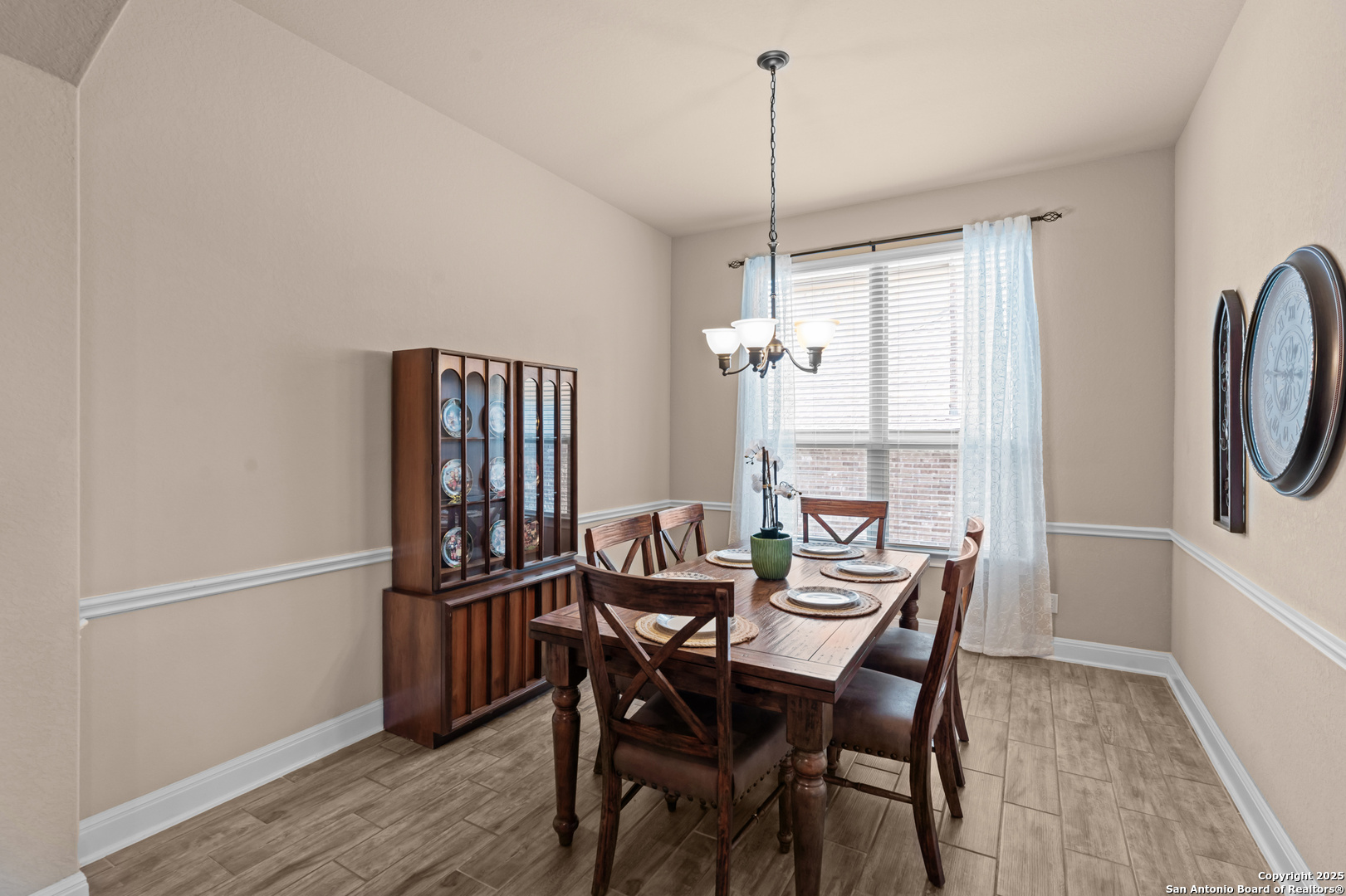 WELCOME HOME to this immaculate 1.5-story home tucked away on a cul-de-sac street and backing to a beautiful greenbelt in highly desirable Mountain Lodge! **VA Assumable for eligible veterans at 2.25%.** Designed for both comfort and flexibility, this open and thoughtfully planned layout features three spacious bedrooms and three full baths, a formal dining room, plus a versatile flex room ideal for a home office, workout space, or fourth bedroom (note: no closet, but not a Texas requirement for a bedroom), all on the main level. Upstairs, a large game room with its own full bath and walk-in closet offers the perfect opportunity for a private guest suite, or even a fifth bedroom, if desired. At the heart of the home is a chef's kitchen featuring stainless steel appliances, gas cooking, granite countertops, a walk-in pantry, and an oversized L-shaped island with counter-height seating that opens to the breakfast area and family room perfect for everyday living or gathering with friends and family. A wall of windows along the back of the home fills the space with natural light and showcases the serene greenbelt views. The primary suite serves as a relaxing retreat with new wood-like tile flooring in the bedroom, a large walk-in shower with full tile surround, a garden tub, and a spacious walk-in closet. Additional highlights include tall and coffered ceilings, wood-look tile throughout the main level, granite counters and framed mirrors in all bathrooms, a three-car garage, a recently replaced water heater, whole-house water filtration system, water softener, gutters, and so much more. Out back, enjoy an extended covered patio with a rich wood ceiling and two ceiling fans perfect for peaceful mornings, outdoor dining, or unwinding in the evening. There's under-deck storage and plenty of space to run, play, or explore the greenbelt. A gas stub on the patio makes outdoor grilling a breeze. This home offers the perfect blend of style, comfort, and relaxed Hill Country living all just a short walk from one of the community pools. Mountain Lodge is a gated community with two entrances, two large pools, baby pools with sunshades, a park, and a basketball court. The home is zoned to award-winning NEISD schools and is within walking distance to Tuscany Heights Elementary. With the completion of highway construction, HWY 281 now provides quick access to 1604 and beyond. This location is convenient to the JW Marriott TPC golf course, Stone Oak shopping and dining, hospitals, and major employers-all with no city taxes. Don't miss out!