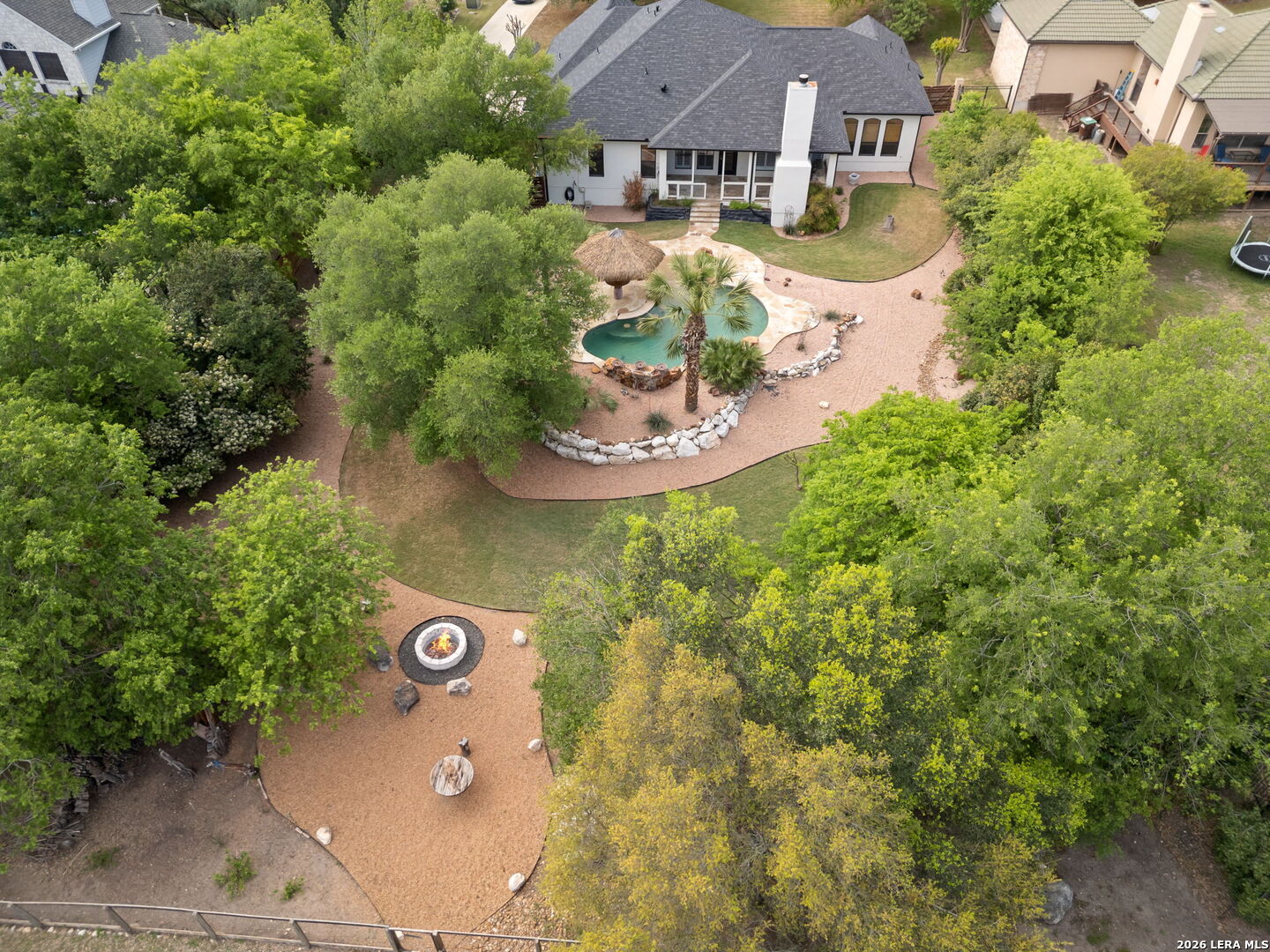 Welcome to 1926 Slumber Pass, a one-of-a-kind retreat in the heart of Timberwood Park that brings a relaxed, resort-style atmosphere to everyday living. Surrounded by mature trees and natural landscape, this property feels like a private escape. The backyard is the true centerpiece, featuring a resort-style pool with zero-entry, beach-style walk-in access, a waterfall feature, and a swim-up bar. A custom tiki hut with a synthetic, fire-resistant thatch roof (installed 6/21 with a 20-year warranty) creates a shaded lounge area right at the water's edge. Designed to feel like a tropical getaway, the outdoor space offers multiple areas to unwind, entertain, or simply enjoy the setting. Inside, the home offers a spacious and well-designed layout with multiple living and dining areas. The central living room connects seamlessly to the kitchen and breakfast nook, creating a natural gathering space filled with light and views of the backyard oasis. A dedicated dining room and private office near the entry add flexibility for everyday living. The primary suite is set apart for added privacy and features a large bedroom, generous closet space, and an updated bathroom with a newly renovated shower (January 2025). Secondary bedrooms are positioned on the opposite side of the home, offering separation and functionality. Recent updates include a full interior and exterior custom paint (April 2024), along with a renovated kitchen and updated flooring (April 2023). Additional features include custom plantation shutters in the main living areas and a self-cleaning pool system with in-floor jets. A covered back patio extends the living space outdoors, creating a seamless transition to the backyard retreat, while the covered front porch adds to the home's inviting curb appeal. Additional items that convey include a water softener, sprinkler system, security system, and Ring camera. Set within the established Timberwood Park community, this property offers a rare combination of privacy, thoughtful layout, extensive updates, and a truly unique outdoor experience. 1926 Slumber Pass stands out as a distinctive opportunity in San Antonio.