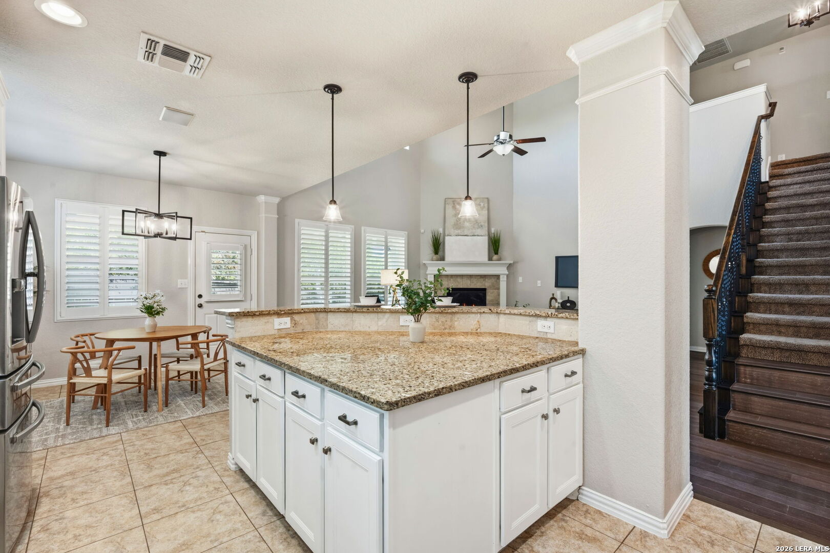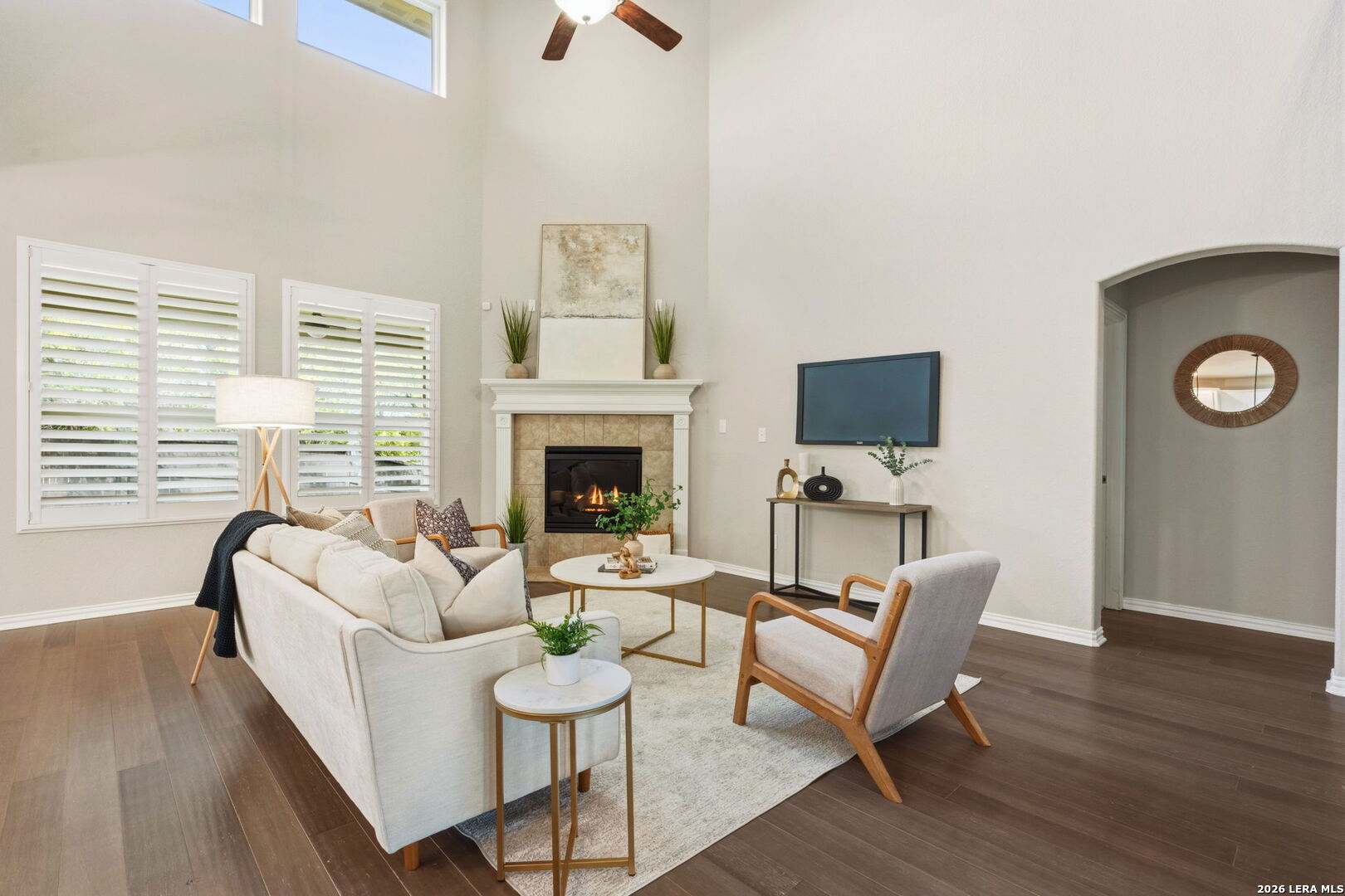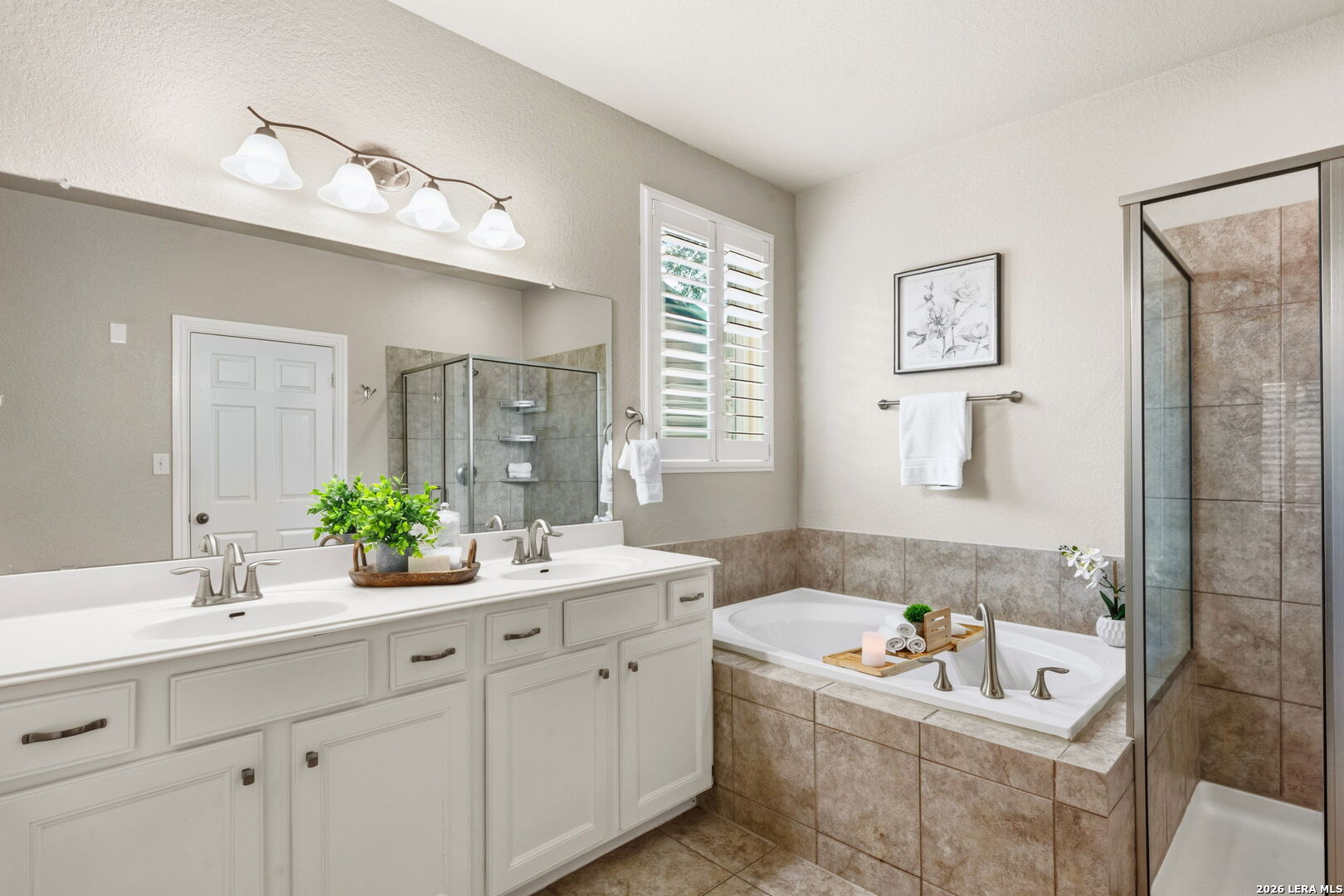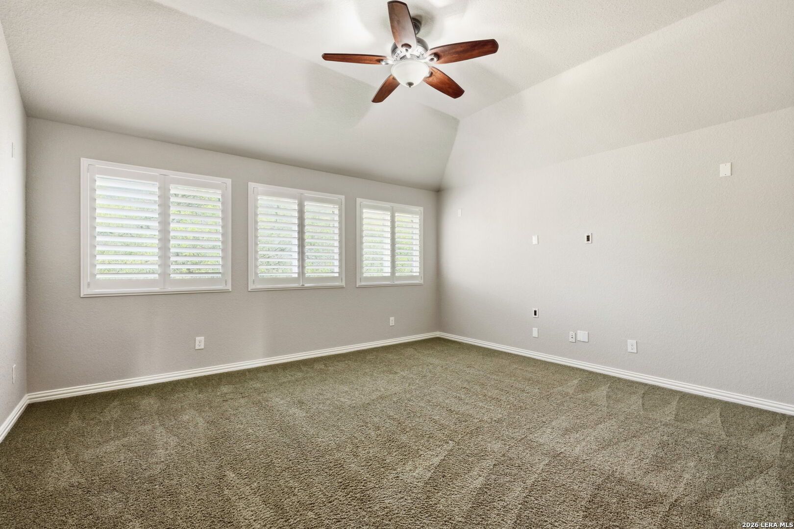 Exceptional opportunity in the gated community of Kinder Ranch-offering a rare advantage in today's market with a VA assumable loan at an incredible 2.75% interest rate (for qualified buyers). Situated on a generously sized lot, this beautifully maintained David Weekley home delivers the space, upgrades, and value buyers are searching for-without the wait or added expense of new construction. Step inside through a custom iron door into a grand foyer featuring rich bamboo flooring and a light-filled interior. The impressive two-story family room showcases soaring ceilings, plantation shutters, and an open-concept design ideal for both everyday living and entertaining. The thoughtfully designed kitchen offers a breakfast bar, eat-in dining space, and seamless flow into the main living areas, complemented by surround sound throughout the downstairs. A separate dining room provides flexibility for formal gatherings or could be used as a flex room. Enjoy outdoor living at its finest with an expansive covered patio, basketball pad, and a spacious backyard-perfect for entertaining or relaxing in your own private retreat. Located within highly sought-after Comal ISD, this home combines lifestyle, value, and location-making it a standout option in a neighborhood where homes are competing with new construction. Motivated seller-bring your buyers.
