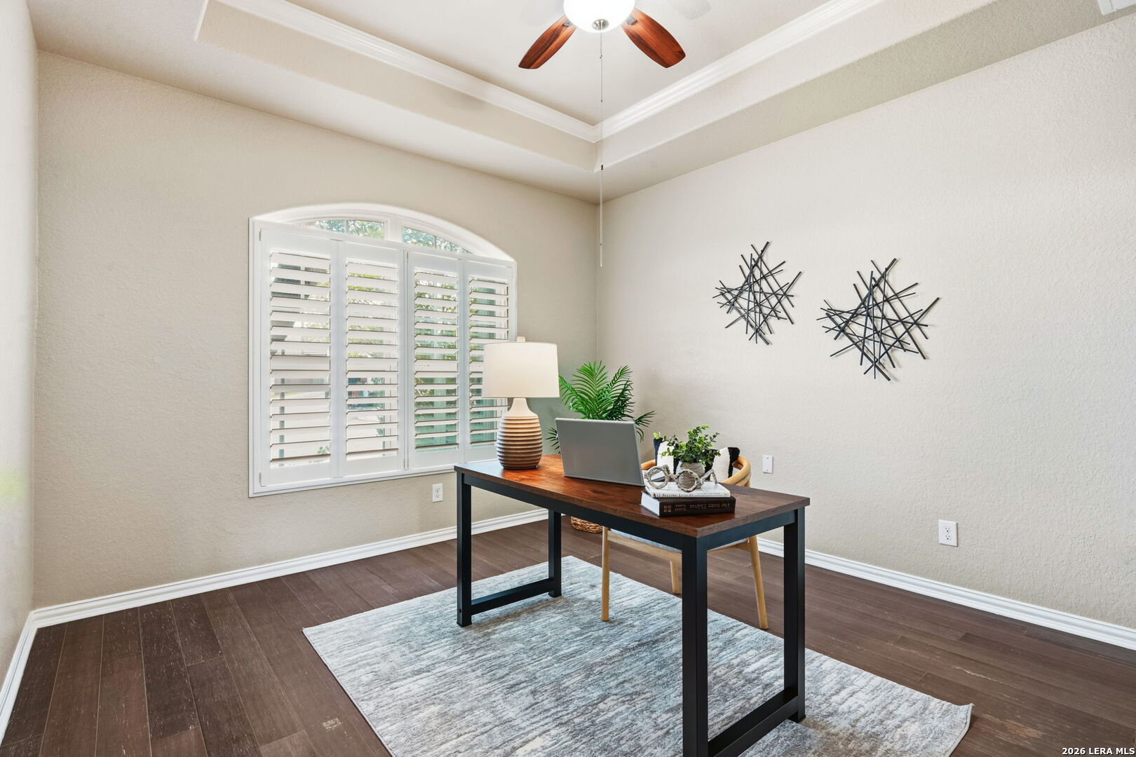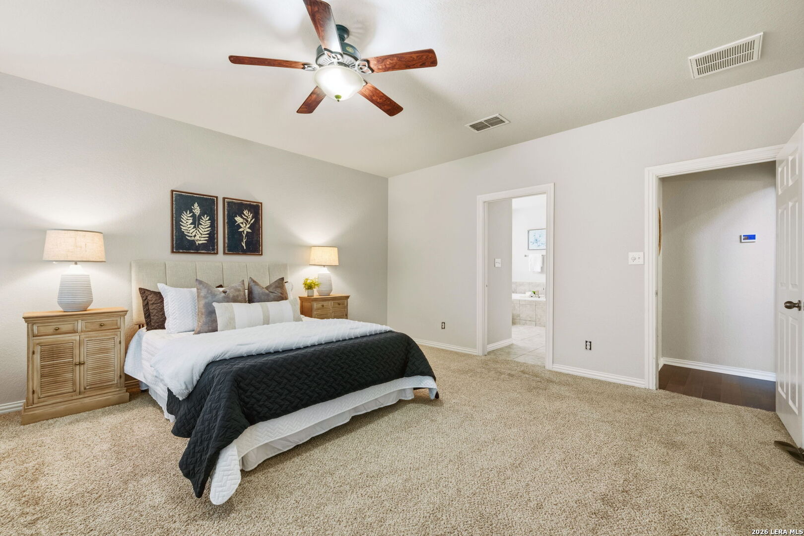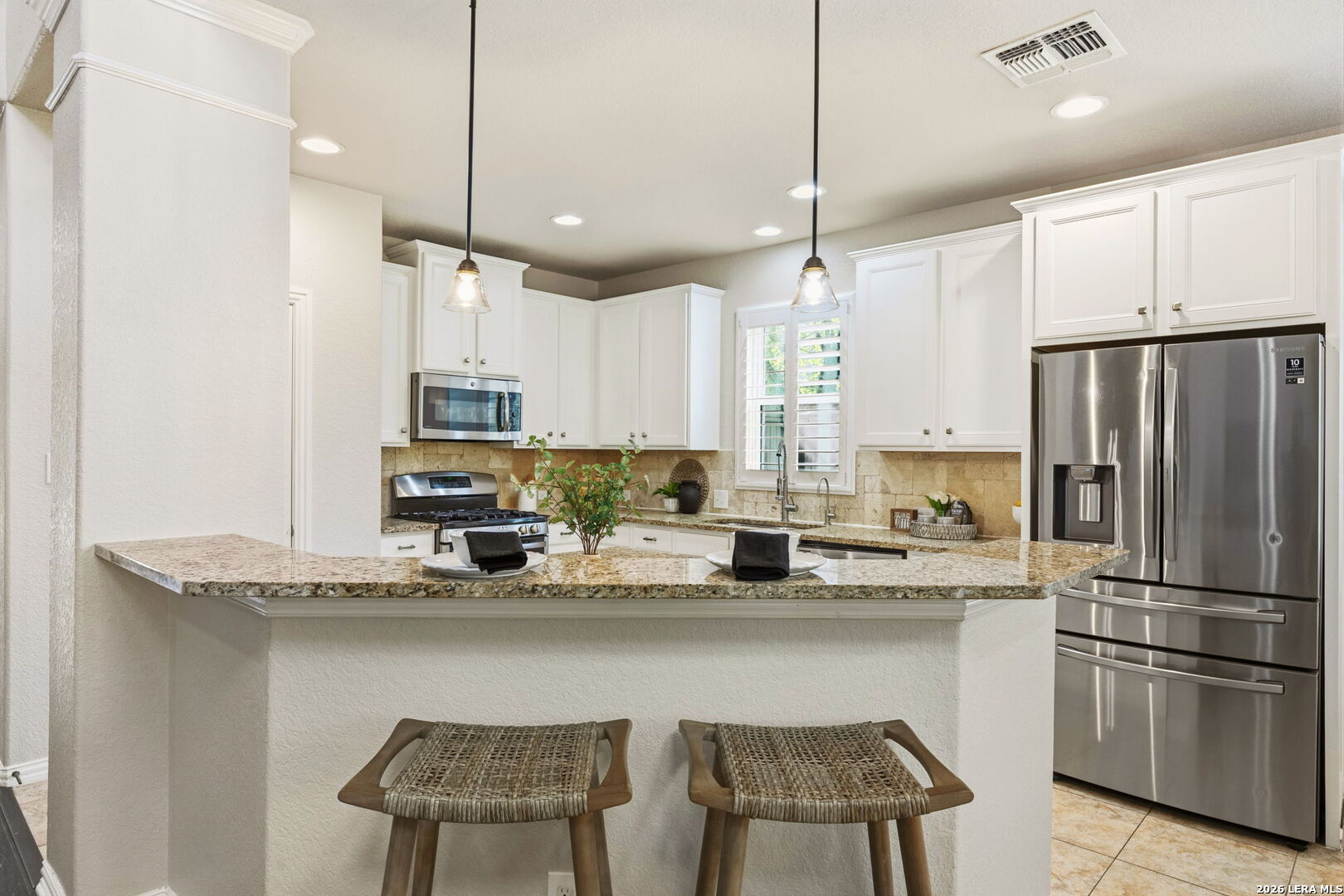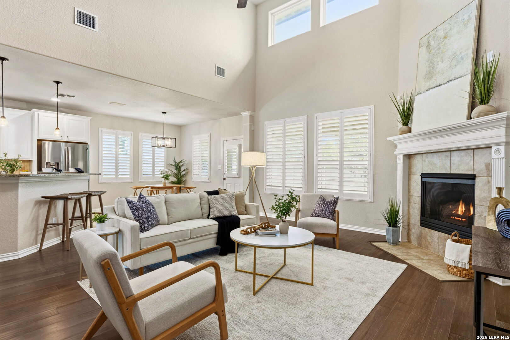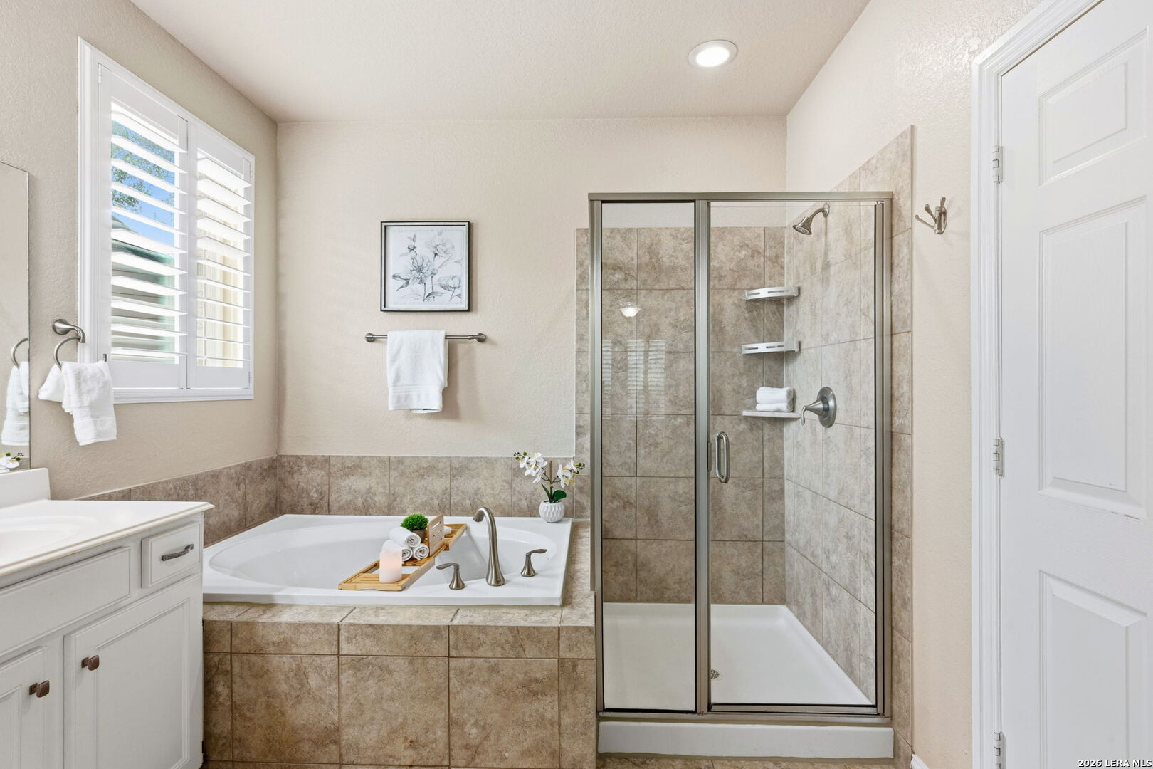Exceptional opportunity in the gated community of Kinder Ranch-offering a rare advantage in today's market with a VA assumable loan at an incredible 2.75% interest rate (for qualified buyers). Situated on a generously sized lot, this beautifully maintained David Weekley home delivers the space, upgrades, and value buyers are searching for-without the wait or added expense of new construction. Step inside through a custom iron door into a grand foyer featuring rich bamboo flooring and a light-filled interior. The impressive two-story family room showcases soaring ceilings, plantation shutters, and an open-concept design ideal for both everyday living and entertaining. The thoughtfully designed kitchen offers a breakfast bar, eat-in dining space, and seamless flow into the main living areas, complemented by surround sound throughout the downstairs. A separate dining room provides flexibility for formal gatherings or could be used as a flex room. Enjoy outdoor living at its finest with an expansive covered patio, basketball pad, and a spacious backyard-perfect for entertaining or relaxing in your own private retreat. Located within highly sought-after Comal ISD, this home combines lifestyle, value, and location-making it a standout option in a neighborhood where homes are competing with new construction. Motivated seller-bring your buyers.