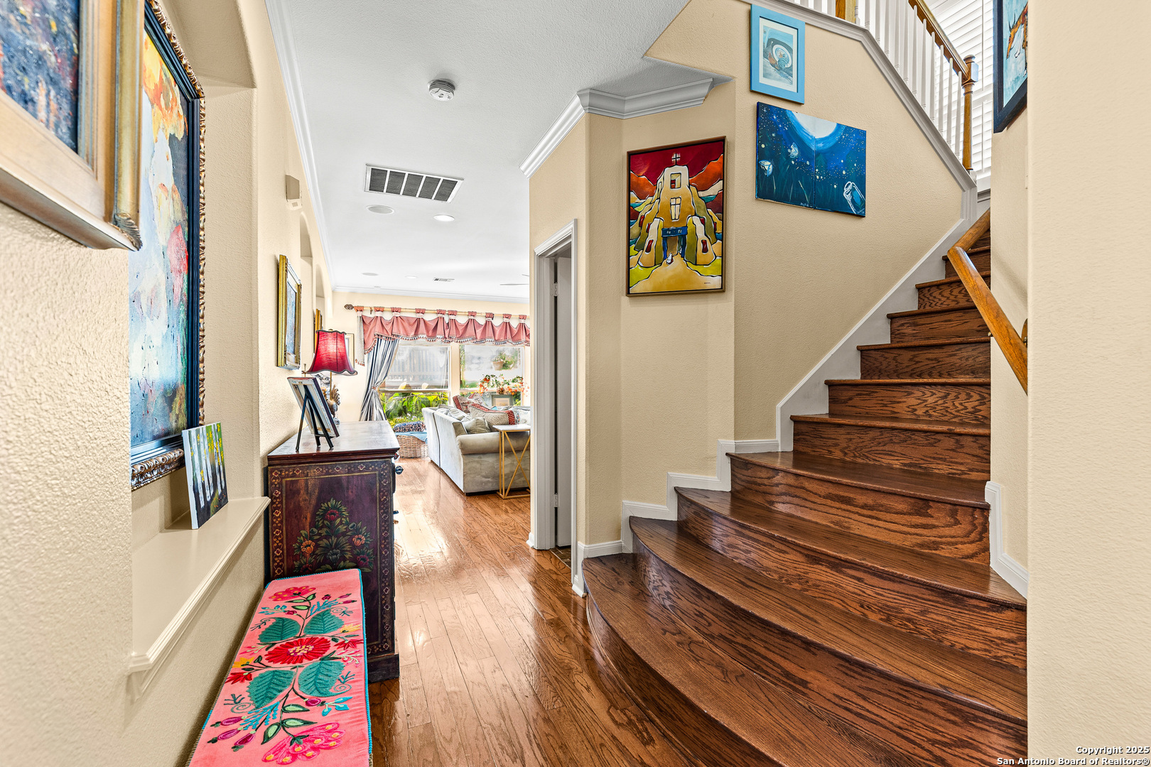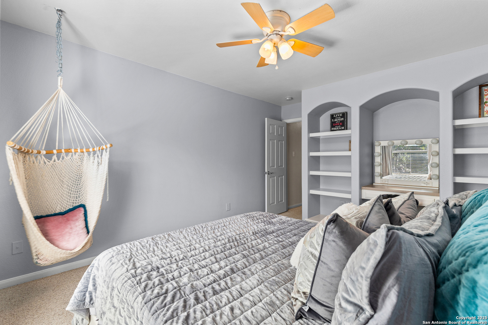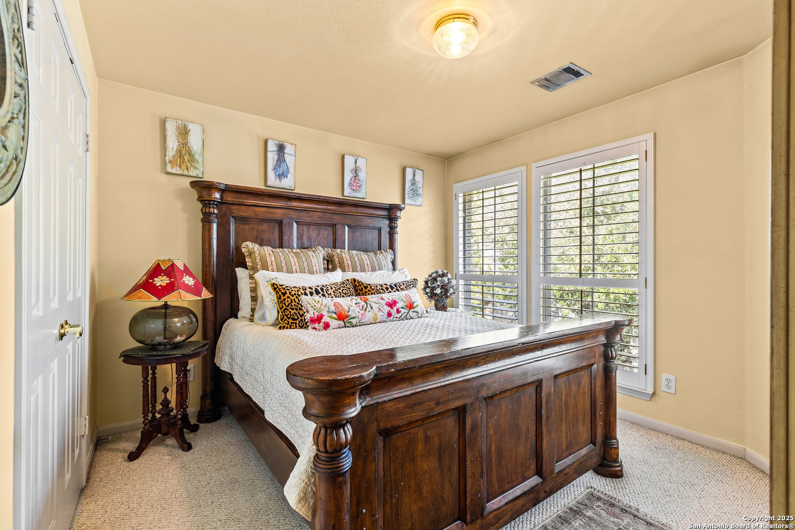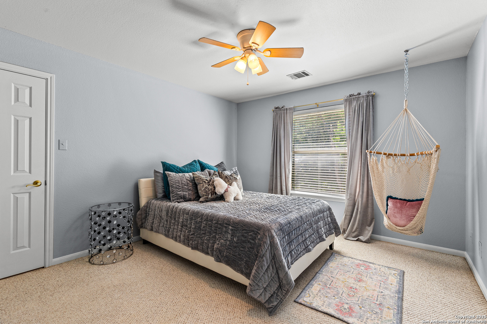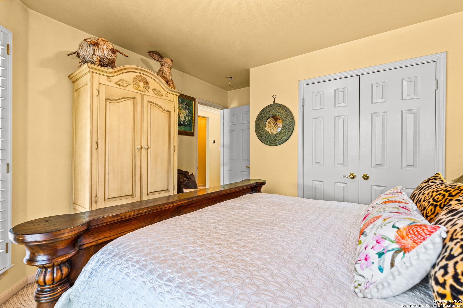 Imagine pulling into Legend Hollow, a private, gated enclave nestled within the prestigious Crownridge community. This is where you'll find a stunning two-story home offering the perfect blend of luxury, comfort, and convenience. This spacious residence boasts 4 bedrooms and 2.5 bathrooms, all situated on a generous half-acre lot that backs directly onto a serene greenbelt. This means privacy, beautiful views, and no rear neighbors - a true premium in this area! And here's the kicker: this exceptional home is perfectly positioned on a quiet cul-de-sac, offering minimal traffic. Thoughtful Layout and Features! As you step inside, you'll immediately appreciate the thoughtful floor plan. The primary bedroom is conveniently located on the first level, providing a private retreat. The renovated primary bathroom is a spa-like sanctuary, featuring a separate tub perfect for unwinding after a long day, alongside a spacious walk-in shower and dual vanities. The main level also offers a variety of living spaces designed for both entertaining and everyday life. You'll find a dedicated dining room, perfect for formal gatherings, a comfortable living room, and a cozy family room where everyone can relax. Head upstairs, and you'll discover three additional spacious bedrooms, offering plenty of room for family or guests. Plus, there's a versatile loft area that can be used as a media room, a play area, or a secondary living space. And for all your organizational needs, you'll love the extra storage room. The heart of this home, the kitchen, has been beautifully renovated, featuring modern appliances, elegant countertops, and ample cabinet space, a wine refrigerator in the island making it a joy for any home chef. Now, let's talk about the backyard. It's truly a private oasis, backing onto that gorgeous greenbelt. This expansive outdoor space is private and serene, making it absolutely perfect for barbecuing with friends and family, or simply enjoying a quiet morning coffee amidst nature. It's your personal slice of tranquility. Beyond the home itself, the location is unbeatable. You'll enjoy easy access to major highways, making your commute a breeze. Plus, you're just a short drive from world-class shopping, dining, and entertainment options at La Cantera, ensuring you're always close to everything San Antonio has to offer. This home truly offers an exceptional lifestyle in a prime location, especially with the added tranquility of being on a cul-de-sac and that incredible backyard.