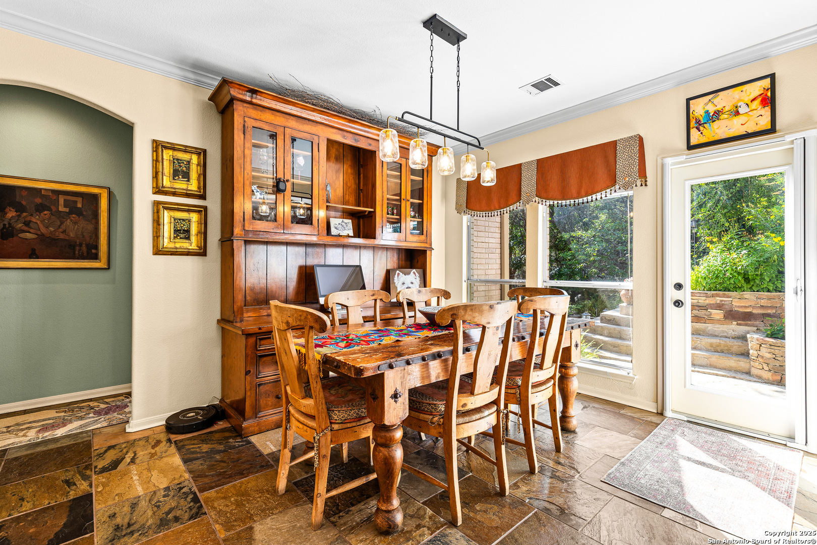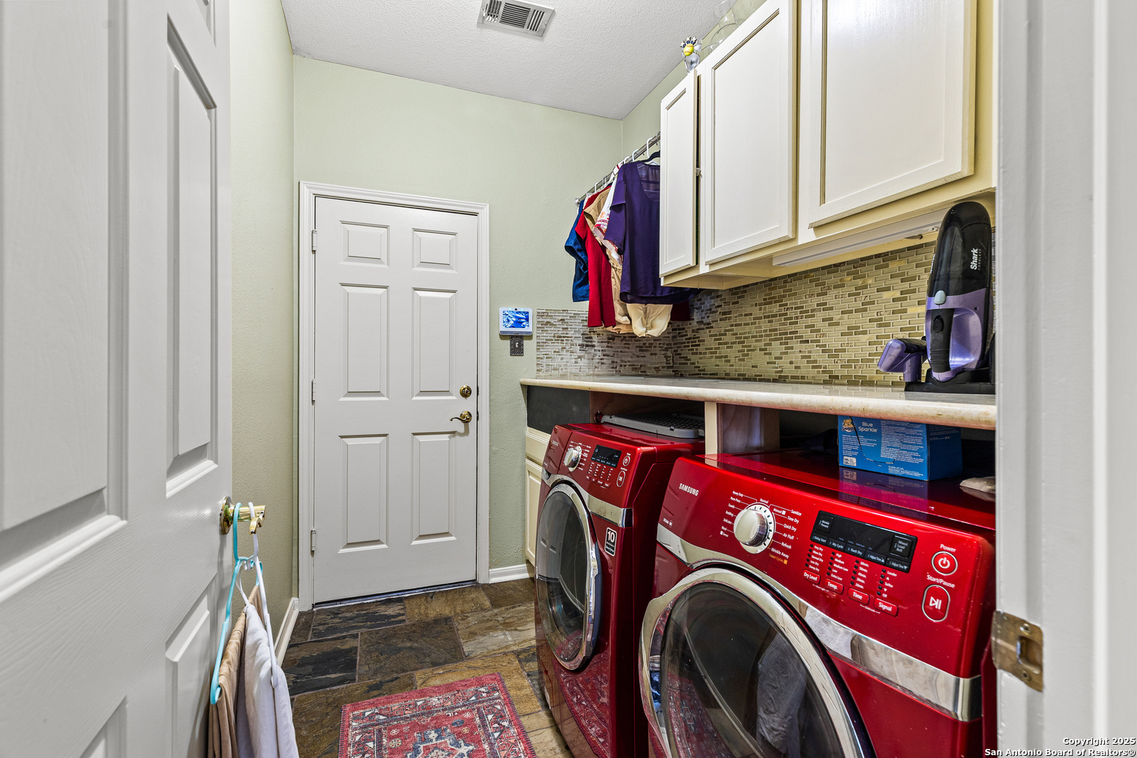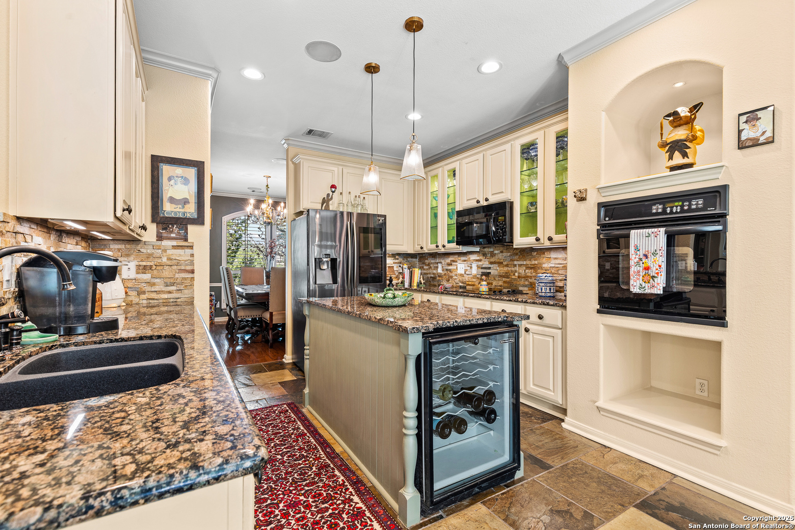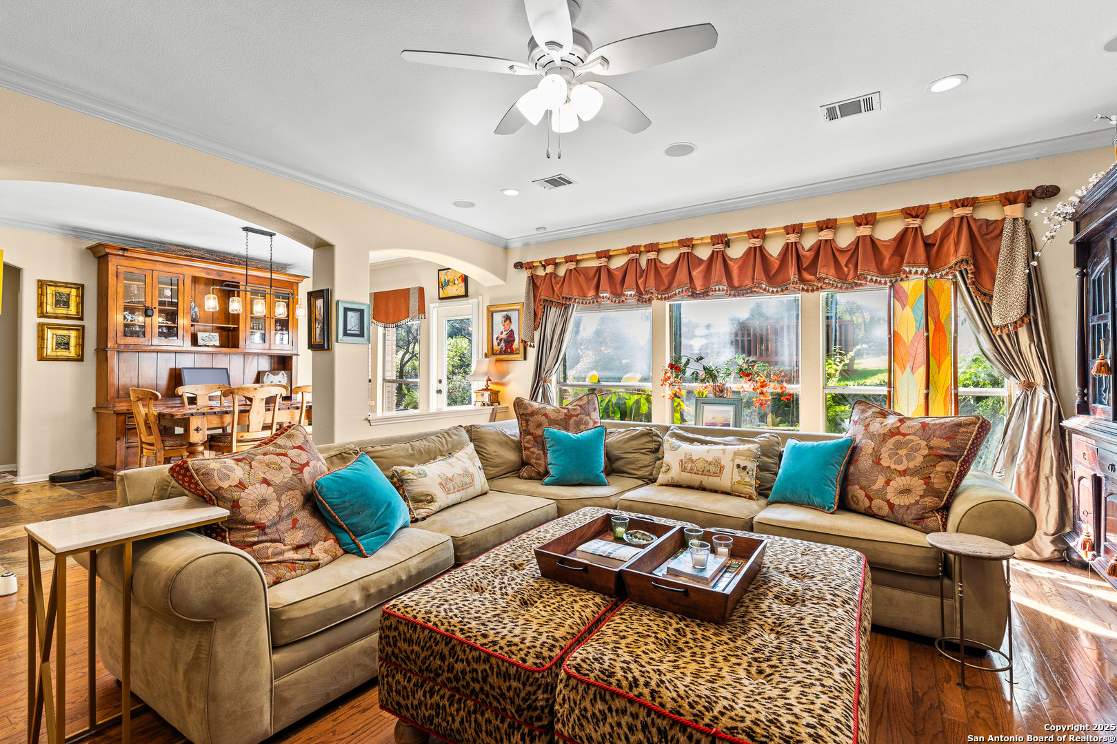 Imagine pulling into Legend Hollow, a private, gated enclave nestled within the prestigious Crownridge community. This is where you'll find a stunning two-story home offering the perfect blend of luxury, comfort, and convenience. This spacious residence boasts 4 bedrooms and 2.5 bathrooms, all situated on a generous half-acre lot that backs directly onto a serene greenbelt. This means privacy, beautiful views, and no rear neighbors - a true premium in this area! And here's the kicker: this exceptional home is perfectly positioned on a quiet cul-de-sac, offering minimal traffic. Thoughtful Layout and Features! As you step inside, you'll immediately appreciate the thoughtful floor plan. The primary bedroom is conveniently located on the first level, providing a private retreat. The renovated primary bathroom is a spa-like sanctuary, featuring a separate tub perfect for unwinding after a long day, alongside a spacious walk-in shower and dual vanities. The main level also offers a variety of living spaces designed for both entertaining and everyday life. You'll find a dedicated dining room, perfect for formal gatherings, a comfortable living room, and a cozy family room where everyone can relax. Head upstairs, and you'll discover three additional spacious bedrooms, offering plenty of room for family or guests. Plus, there's a versatile loft area that can be used as a media room, a play area, or a secondary living space. And for all your organizational needs, you'll love the extra storage room. The heart of this home, the kitchen, has been beautifully renovated, featuring modern appliances, elegant countertops, and ample cabinet space, a wine refrigerator in the island making it a joy for any home chef. Now, let's talk about the backyard. It's truly a private oasis, backing onto that gorgeous greenbelt. This expansive outdoor space is private and serene, making it absolutely perfect for barbecuing with friends and family, or simply enjoying a quiet morning coffee amidst nature. It's your personal slice of tranquility. Beyond the home itself, the location is unbeatable. You'll enjoy easy access to major highways, making your commute a breeze. Plus, you're just a short drive from world-class shopping, dining, and entertainment options at La Cantera, ensuring you're always close to everything San Antonio has to offer. This home truly offers an exceptional lifestyle in a prime location, especially with the added tranquility of being on a cul-de-sac and that incredible backyard.