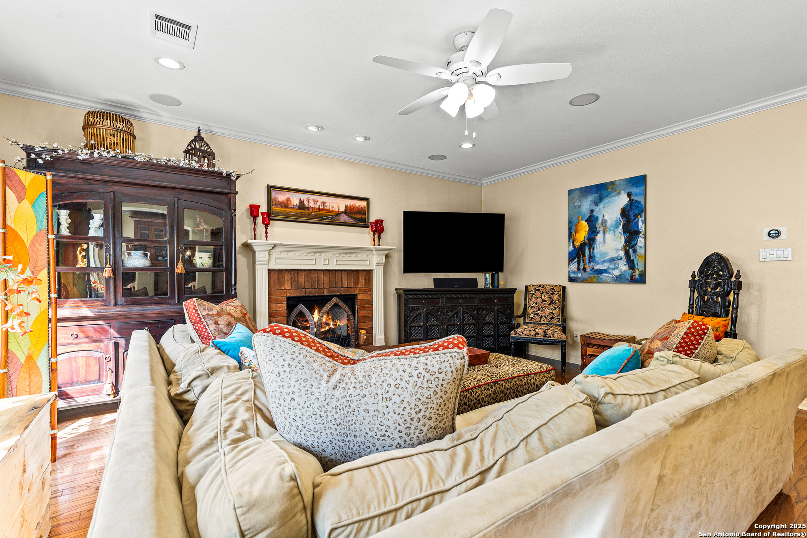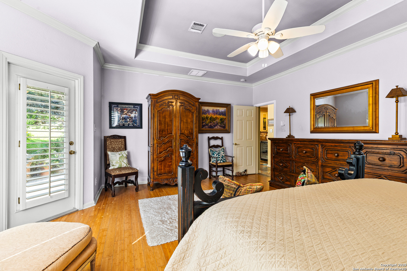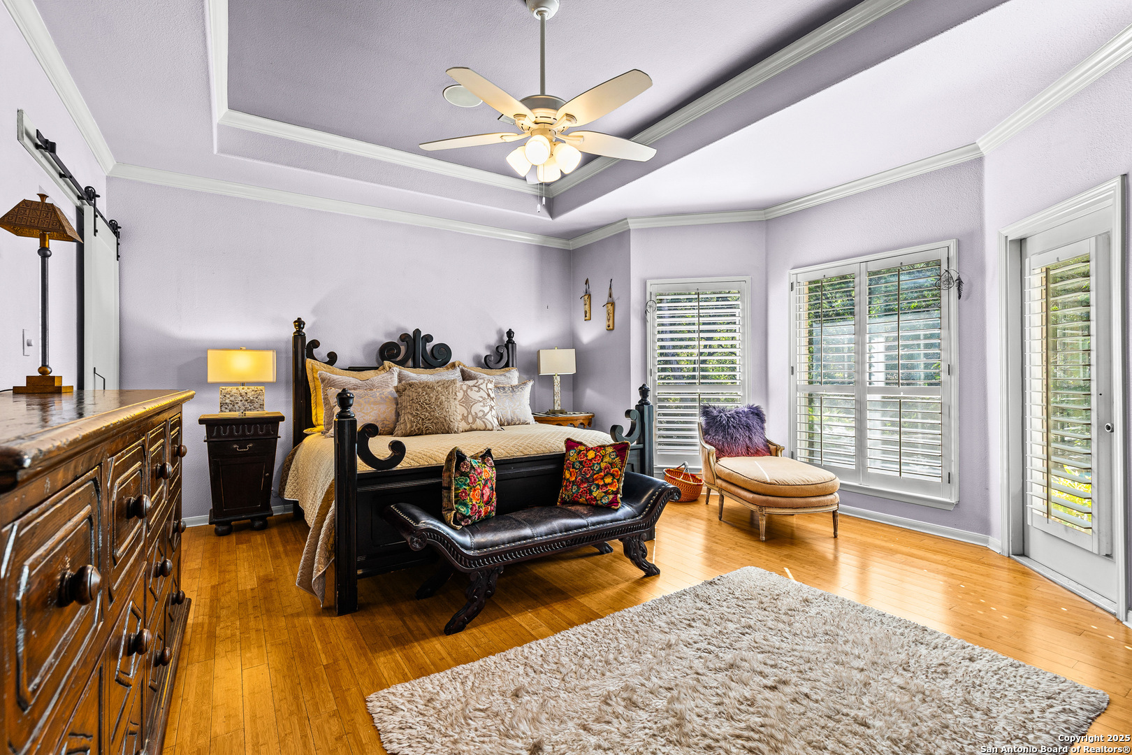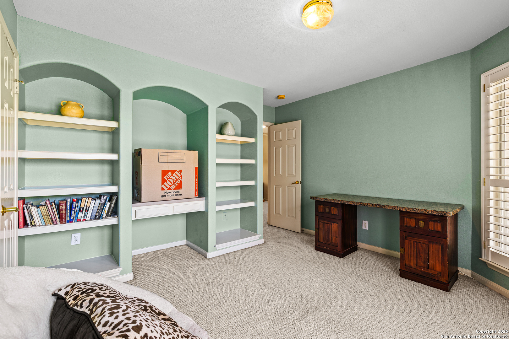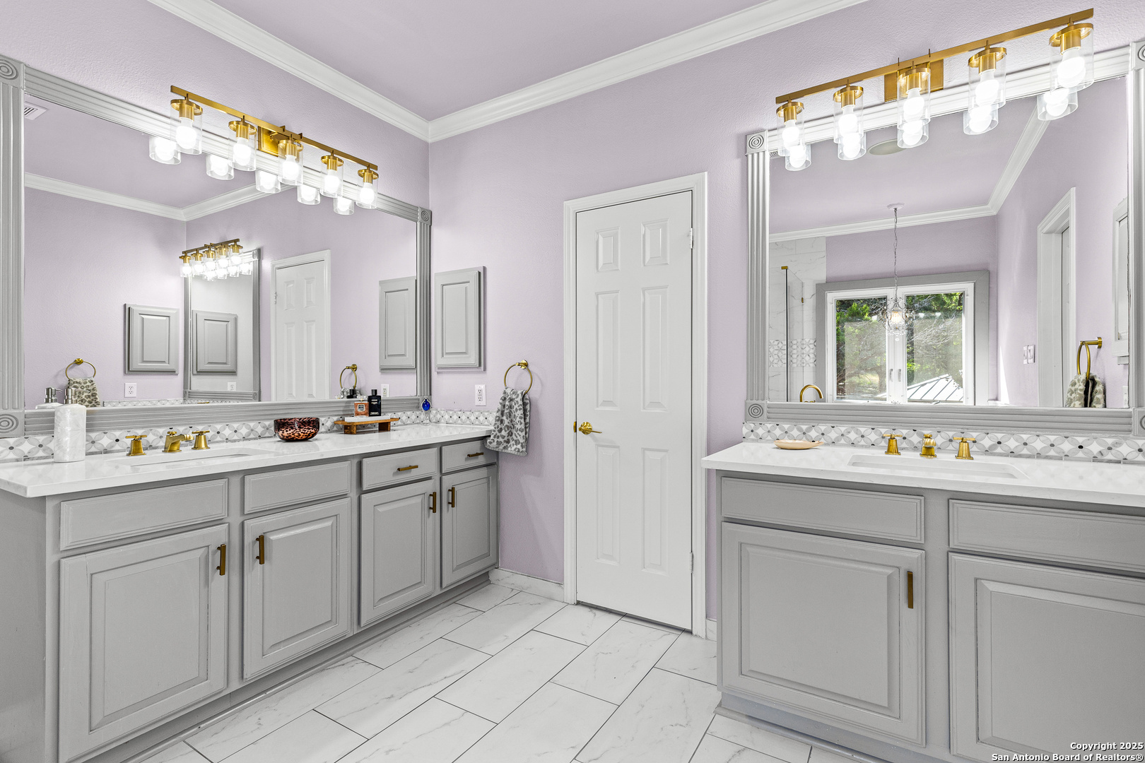 Imagine pulling into Legend Hollow, a private, gated enclave nestled within the prestigious Crownridge community. This is where you'll find a stunning two-story home offering the perfect blend of luxury, comfort, and convenience. This spacious residence boasts 4 bedrooms and 2.5 bathrooms, all situated on a generous half-acre lot that backs directly onto a serene greenbelt. This means privacy, beautiful views, and no rear neighbors - a true premium in this area! And here's the kicker: this exceptional home is perfectly positioned on a quiet cul-de-sac, offering minimal traffic. Thoughtful Layout and Features! As you step inside, you'll immediately appreciate the thoughtful floor plan. The primary bedroom is conveniently located on the first level, providing a private retreat. The renovated primary bathroom is a spa-like sanctuary, featuring a separate tub perfect for unwinding after a long day, alongside a spacious walk-in shower and dual vanities. The main level also offers a variety of living spaces designed for both entertaining and everyday life. You'll find a dedicated dining room, perfect for formal gatherings, a comfortable living room, and a cozy family room where everyone can relax. Head upstairs, and you'll discover three additional spacious bedrooms, offering plenty of room for family or guests. Plus, there's a versatile loft area that can be used as a media room, a play area, or a secondary living space. And for all your organizational needs, you'll love the extra storage room. The heart of this home, the kitchen, has been beautifully renovated, featuring modern appliances, elegant countertops, and ample cabinet space, a wine refrigerator in the island making it a joy for any home chef. Now, let's talk about the backyard. It's truly a private oasis, backing onto that gorgeous greenbelt. This expansive outdoor space is private and serene, making it absolutely perfect for barbecuing with friends and family, or simply enjoying a quiet morning coffee amidst nature. It's your personal slice of tranquility. Beyond the home itself, the location is unbeatable. You'll enjoy easy access to major highways, making your commute a breeze. Plus, you're just a short drive from world-class shopping, dining, and entertainment options at La Cantera, ensuring you're always close to everything San Antonio has to offer. This home truly offers an exceptional lifestyle in a prime location, especially with the added tranquility of being on a cul-de-sac and that incredible backyard.