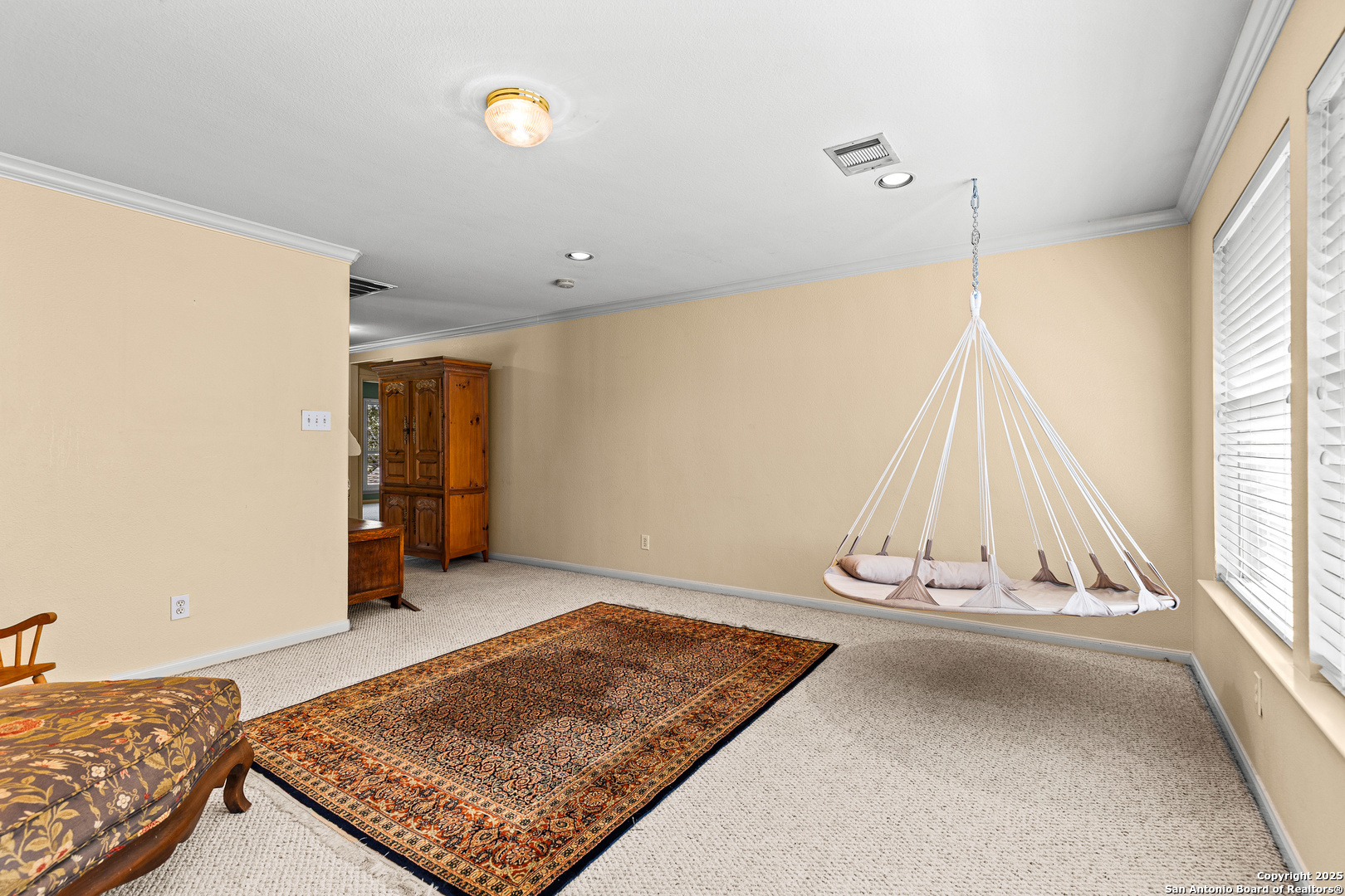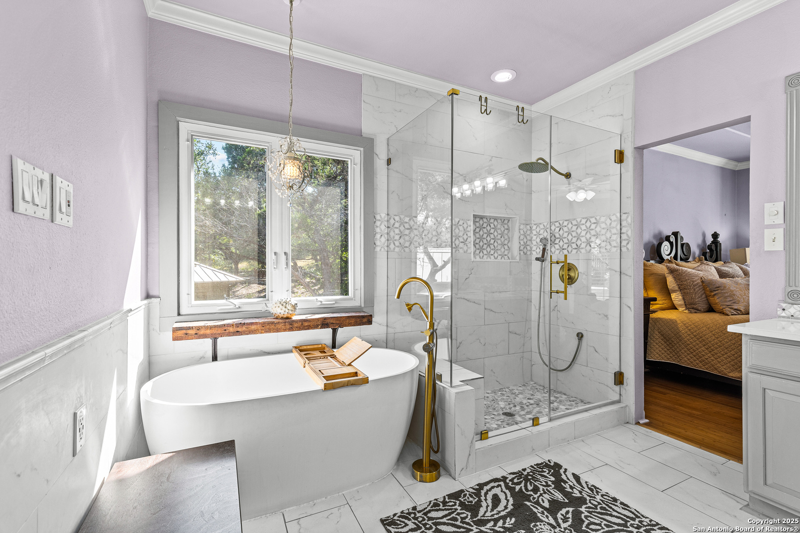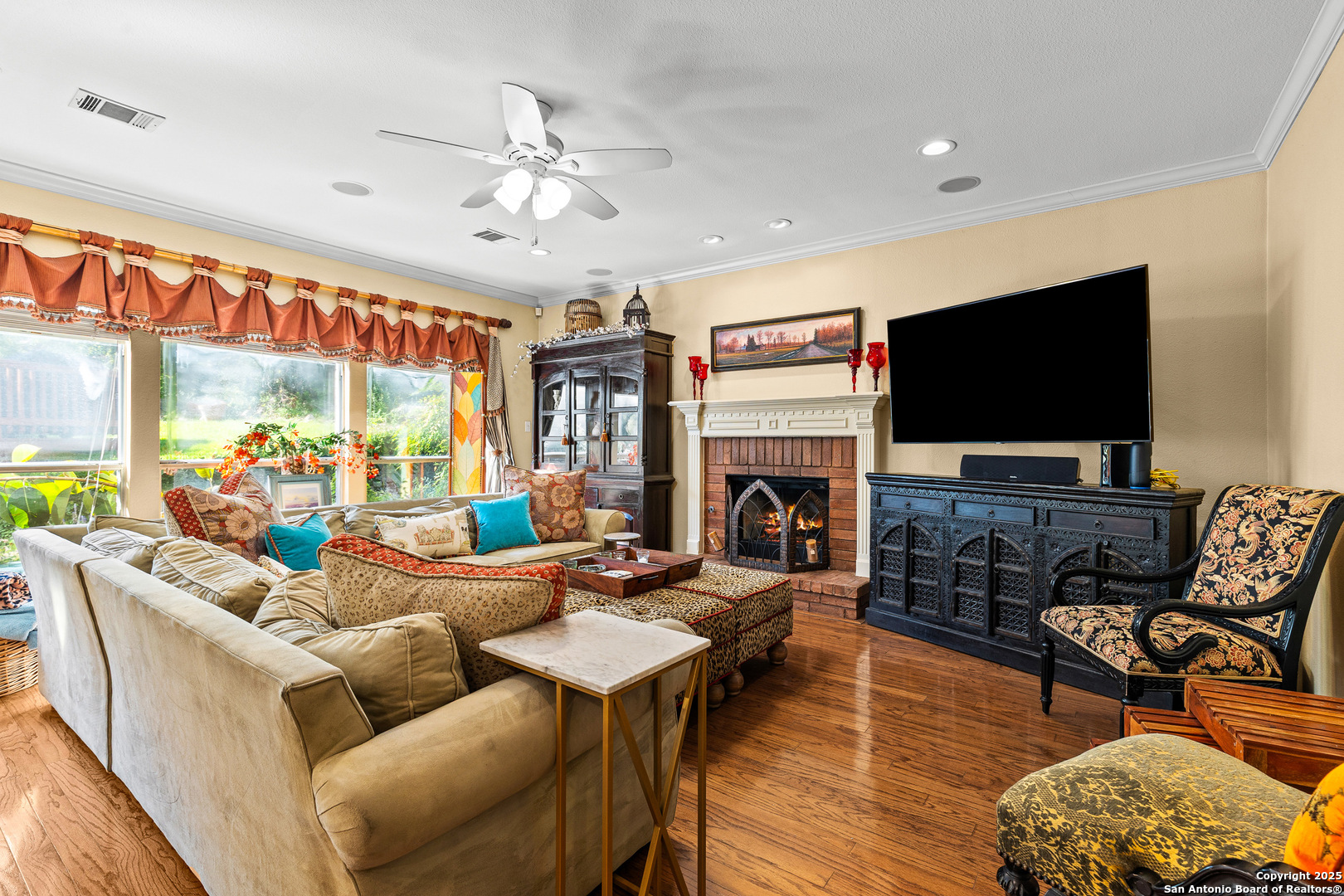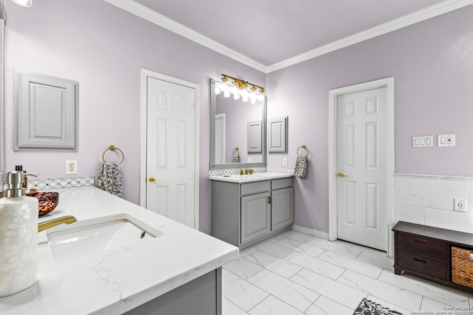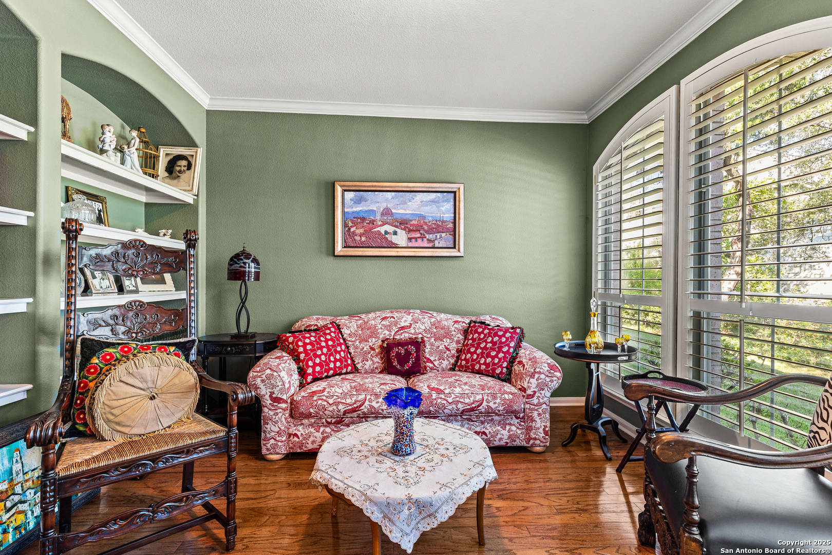 Imagine pulling into Legend Hollow, a private, gated enclave nestled within the prestigious Crownridge community. This is where you'll find a stunning two-story home offering the perfect blend of luxury, comfort, and convenience. This spacious residence boasts 4 bedrooms and 2.5 bathrooms, all situated on a generous half-acre lot that backs directly onto a serene greenbelt. This means privacy, beautiful views, and no rear neighbors - a true premium in this area! And here's the kicker: this exceptional home is perfectly positioned on a quiet cul-de-sac, offering minimal traffic. Thoughtful Layout and Features! As you step inside, you'll immediately appreciate the thoughtful floor plan. The primary bedroom is conveniently located on the first level, providing a private retreat. The renovated primary bathroom is a spa-like sanctuary, featuring a separate tub perfect for unwinding after a long day, alongside a spacious walk-in shower and dual vanities. The main level also offers a variety of living spaces designed for both entertaining and everyday life. You'll find a dedicated dining room, perfect for formal gatherings, a comfortable living room, and a cozy family room where everyone can relax. Head upstairs, and you'll discover three additional spacious bedrooms, offering plenty of room for family or guests. Plus, there's a versatile loft area that can be used as a media room, a play area, or a secondary living space. And for all your organizational needs, you'll love the extra storage room. The heart of this home, the kitchen, has been beautifully renovated, featuring modern appliances, elegant countertops, and ample cabinet space, a wine refrigerator in the island making it a joy for any home chef. Now, let's talk about the backyard. It's truly a private oasis, backing onto that gorgeous greenbelt. This expansive outdoor space is private and serene, making it absolutely perfect for barbecuing with friends and family, or simply enjoying a quiet morning coffee amidst nature. It's your personal slice of tranquility. Beyond the home itself, the location is unbeatable. You'll enjoy easy access to major highways, making your commute a breeze. Plus, you're just a short drive from world-class shopping, dining, and entertainment options at La Cantera, ensuring you're always close to everything San Antonio has to offer. This home truly offers an exceptional lifestyle in a prime location, especially with the added tranquility of being on a cul-de-sac and that incredible backyard.
