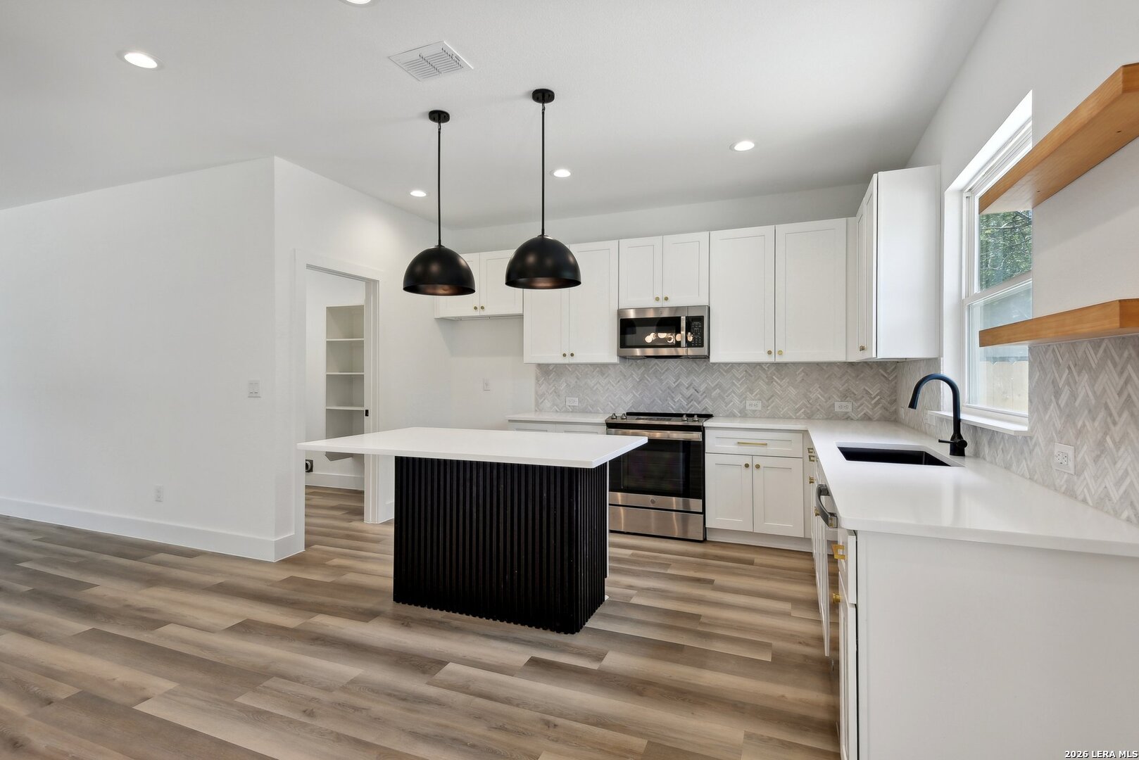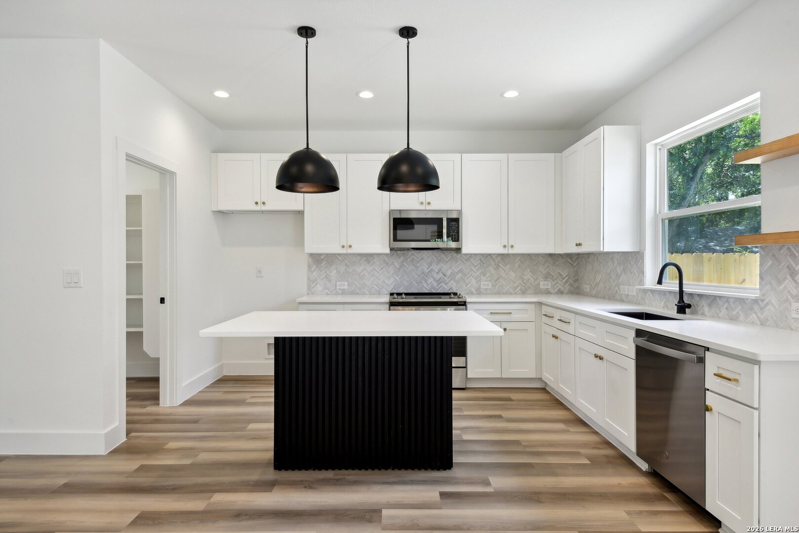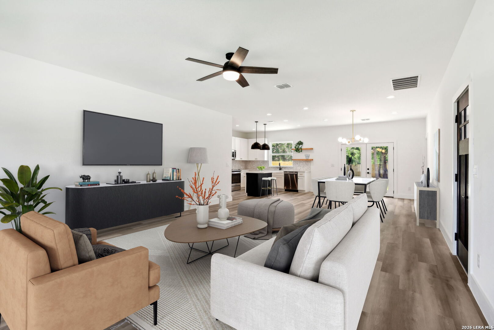 Thoughtfully designed new construction home in San Antonio offering modern finishes, natural light, and an ideal location just minutes from the heart of the city. Positioned near some of the area's most sought after destinations including the San Antonio River Walk, Pearl District, Hemisfair Park, Alamodome, and Frost Bank Center, this property provides convenient access to downtown San Antonio dining, shopping, and entertainment while maintaining a comfortable residential setting. Inside, a bright open concept floor plan creates an effortless flow between the living area, dining space, and kitchen, making the layout ideal for everyday living and entertaining. Large windows bring in abundant natural light while clean architectural lines and neutral tones enhance the home's modern aesthetic. The gourmet kitchen serves as the centerpiece of the home, featuring quartz countertops, a striking marble backsplash, stainless steel appliances, custom cabinetry, and a large center island designed for both function and style. The primary suite offers a spacious and relaxing retreat complete with a walk in closet and a beautifully designed spa style bathroom featuring dual vanities and a glass enclosed shower with floor to ceiling tile. Each space throughout the home reflects thoughtful design and contemporary finishes. Outdoor living continues in the private landscaped backyard, one of the larger outdoor spaces you will find near downtown San Antonio. The expansive yard provides flexibility for outdoor gatherings, gardening, or the potential to add an ADU, guest house, or short term rental space. A rare opportunity to own a modern home near downtown San Antonio that blends style, comfort, and accessibility to some of the city's most vibrant cultural attractions. This property delivers a unique urban lifestyle with close proximity to the San Antonio River Walk, Pearl District, Hemisfair Park, and major entertainment venues.