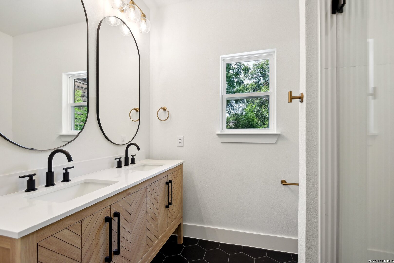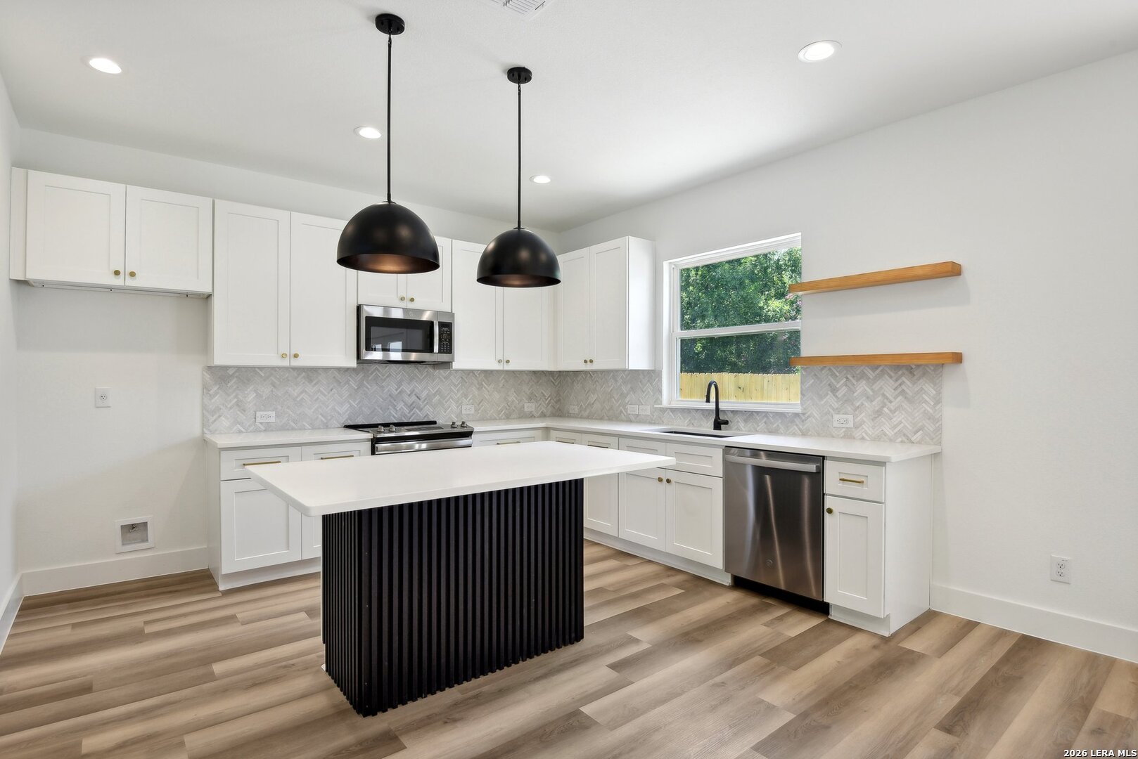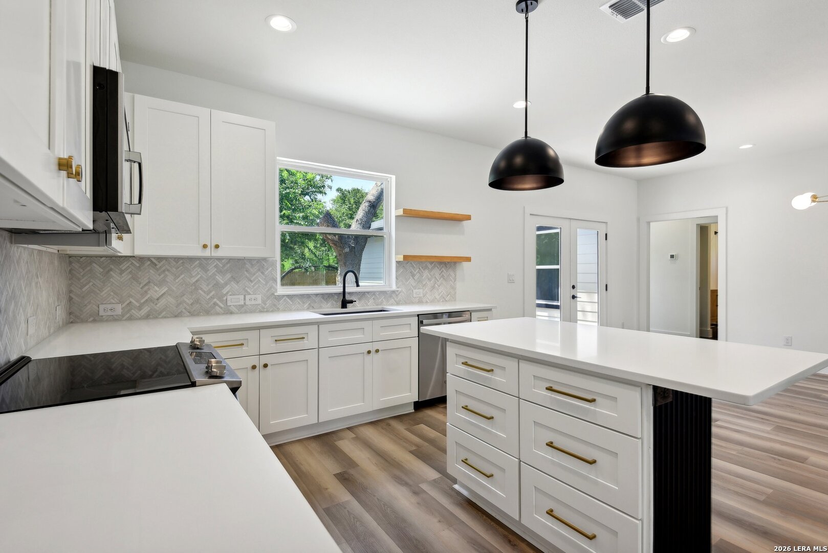 Thoughtfully designed new construction home in San Antonio offering modern finishes, natural light, and an ideal location just minutes from the heart of the city. Positioned near some of the area's most sought after destinations including the San Antonio River Walk, Pearl District, Hemisfair Park, Alamodome, and Frost Bank Center, this property provides convenient access to downtown San Antonio dining, shopping, and entertainment while maintaining a comfortable residential setting. Inside, a bright open concept floor plan creates an effortless flow between the living area, dining space, and kitchen, making the layout ideal for everyday living and entertaining. Large windows bring in abundant natural light while clean architectural lines and neutral tones enhance the home's modern aesthetic. The gourmet kitchen serves as the centerpiece of the home, featuring quartz countertops, a striking marble backsplash, stainless steel appliances, custom cabinetry, and a large center island designed for both function and style. The primary suite offers a spacious and relaxing retreat complete with a walk in closet and a beautifully designed spa style bathroom featuring dual vanities and a glass enclosed shower with floor to ceiling tile. Each space throughout the home reflects thoughtful design and contemporary finishes. Outdoor living continues in the private landscaped backyard, one of the larger outdoor spaces you will find near downtown San Antonio. The expansive yard provides flexibility for outdoor gatherings, gardening, or the potential to add an ADU, guest house, or short term rental space. A rare opportunity to own a modern home near downtown San Antonio that blends style, comfort, and accessibility to some of the city's most vibrant cultural attractions. This property delivers a unique urban lifestyle with close proximity to the San Antonio River Walk, Pearl District, Hemisfair Park, and major entertainment venues.