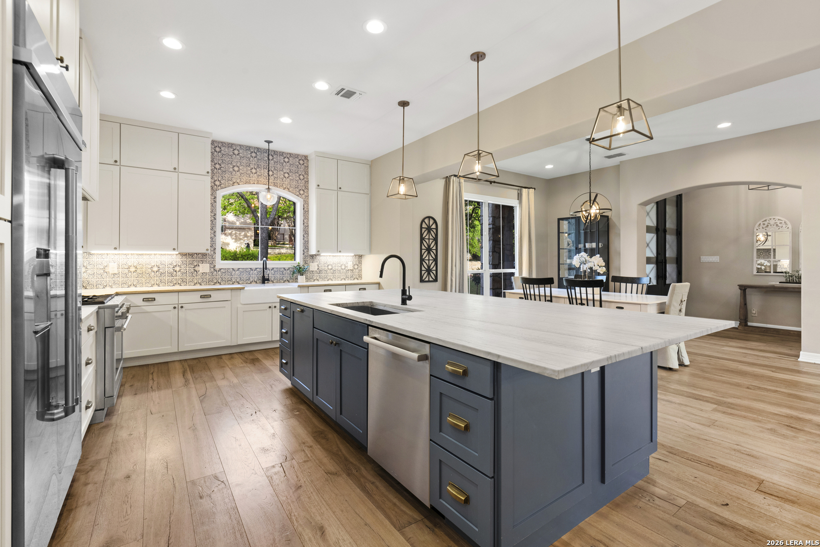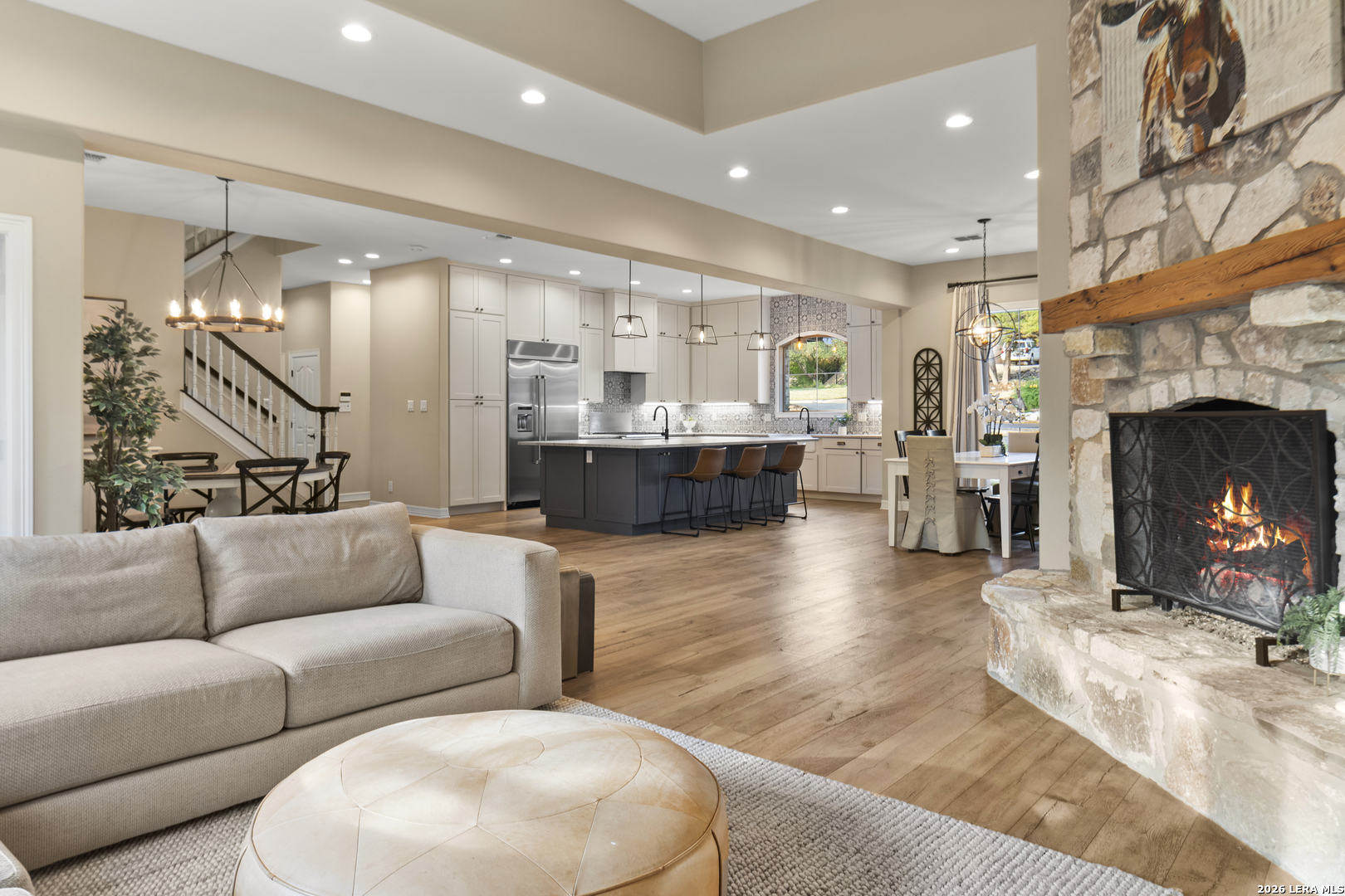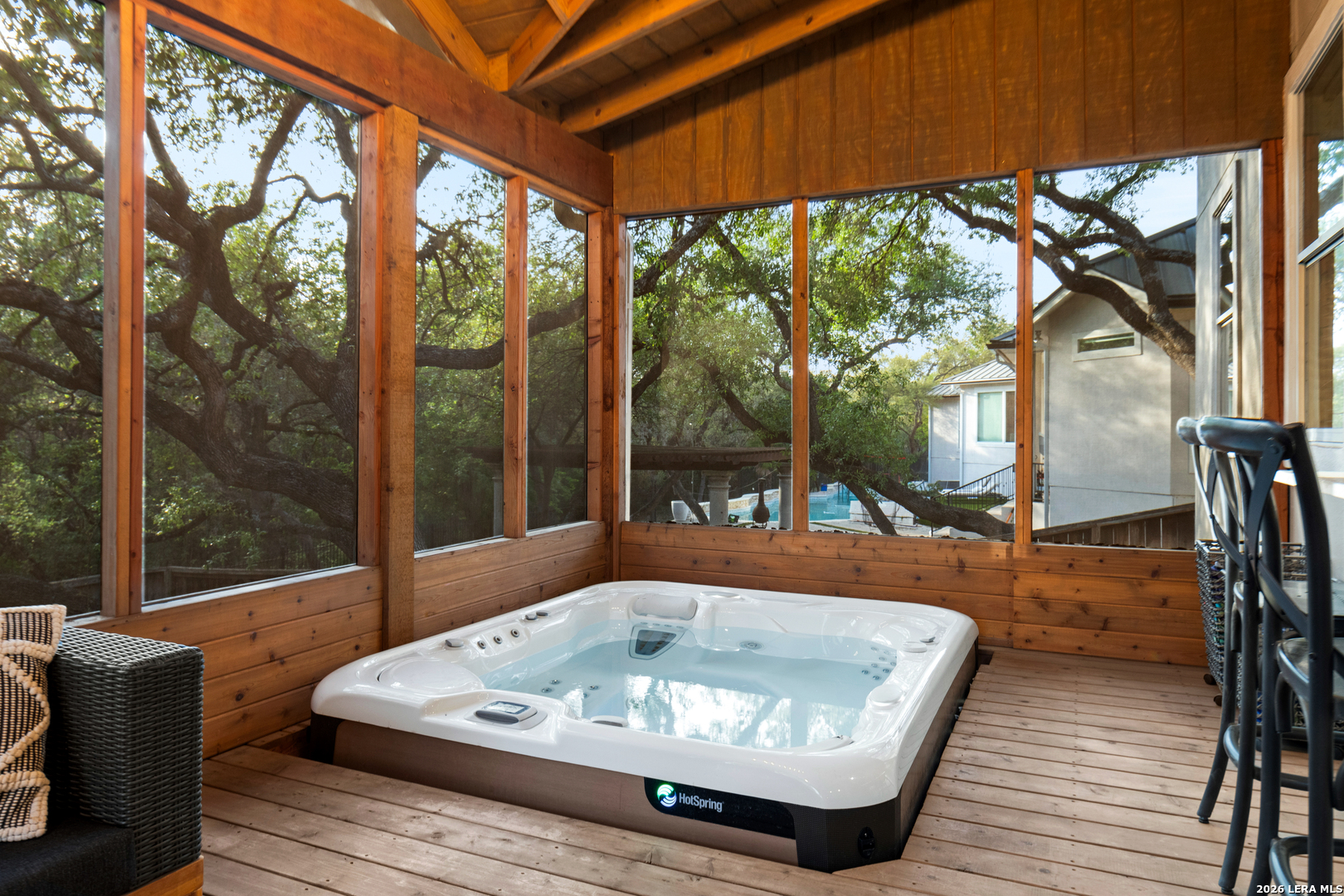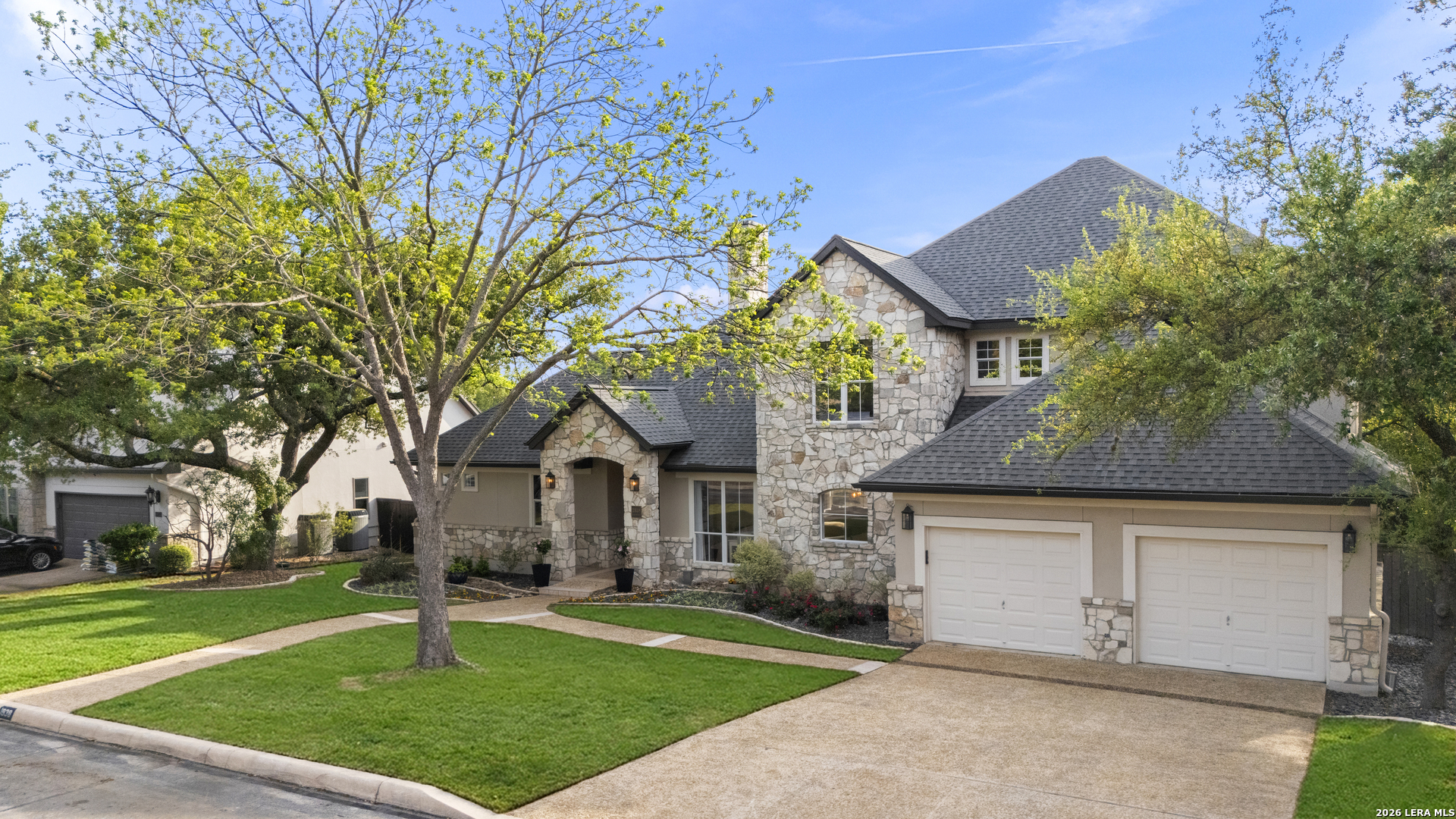 Greenbelt privacy, a screened outdoor living retreat, and fully renovated kitchen and primary bath, 1938 Far Niente is the kind of home buyers hope to find in The Vineyard, but rarely see come on market. Tucked at the end of a quiet cul de sac in the exclusive Province at The Vineyard, this beautiful custom home sits on a 0.3 acre greenbelt lot, framed by mature oaks and thoughtfully transformed with extensive, high level renovations throughout. The gourmet kitchen, featuring custom cabinetry, quartzite counters, a designer Walker Zanger backsplash, and a high end appliance package including a Jenn Air built in refrigerator and Monogram gas range. The main living room centers around a stone fireplace, and is framed by expansive windows which overlook the greenbelt. Wide plank engineered hardwood floors run throughout the main level. Outdoor living has been completely reimagined to maximize both privacy and enjoyment. A screened in porch with integrated lighting, outdoor kitchen, and hot tub creates a true extension of the home, while a lower deck and fire pit seating area offer additional spaces to gather beneath the canopy of mature trees. The primary suite on the main level serves as a private retreat, featuring a fully renovated bathroom in 2026 with a freestanding soaking tub, walk in glass shower, updated cabinetry, and refined finishes. A separate guest suite downstairs, thoughtfully positioned away from the primary, provides ideal privacy for visitors. A study with custom built ins completes the first floor. Upstairs offers versatility with a spacious game room, a private secondary suite, and two additional bedrooms connected by a Jack and Jill bath, each enhanced with updated fixtures and finishes, and new carpet. A second study sits alongside a kitchenette, and flexible bonus space in the converted attic provides room to live, work, and unwind. Located within walking distance to the neighborhood pool and Vineyard Ranch Elementary School, and with bus service to Lopez Middle School and Reagan High School, this home offers a rare opportunity to enjoy a fully renovated property on a premier greenbelt lot in one of North Central San Antonio's most sought after communities.