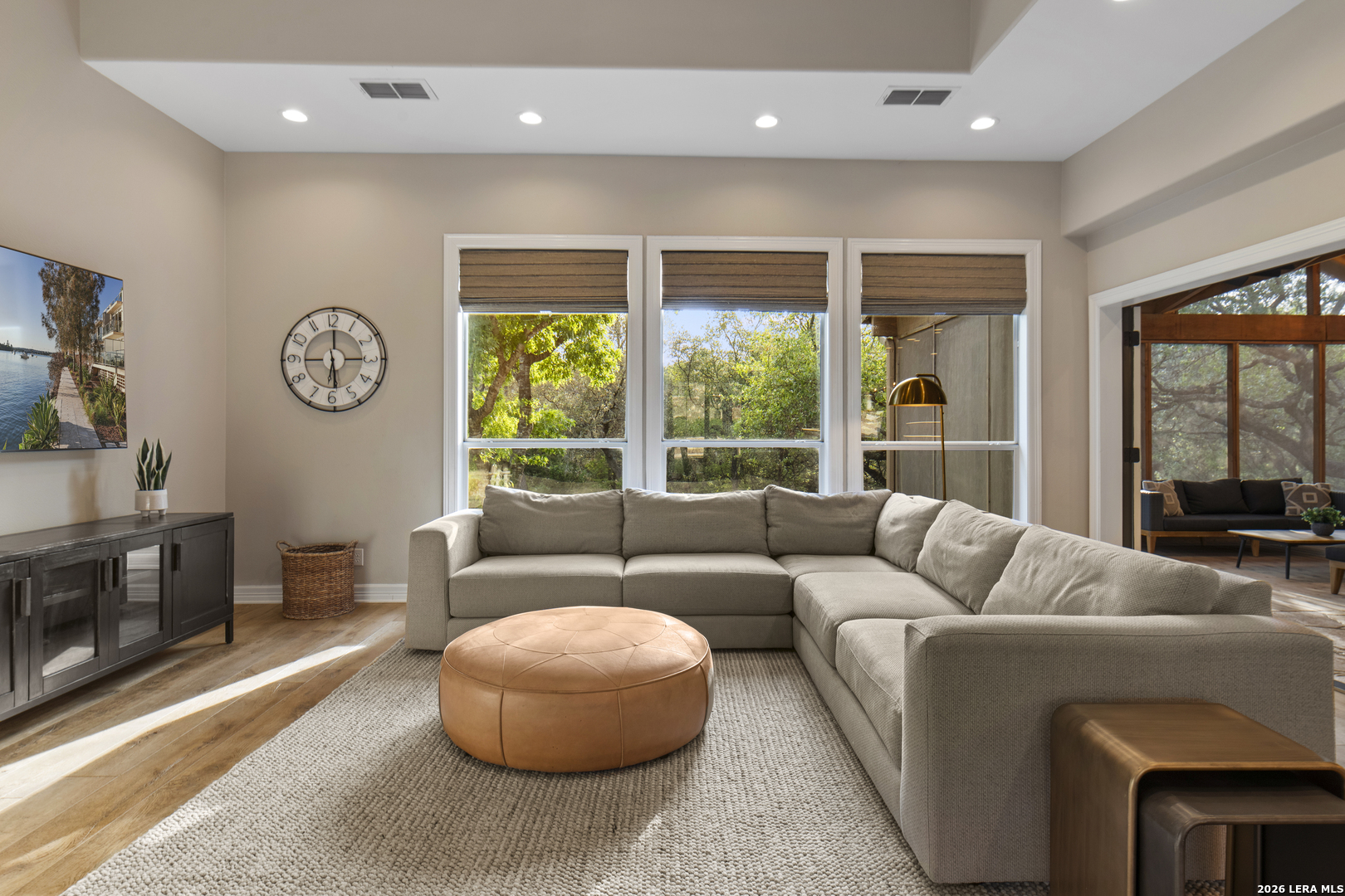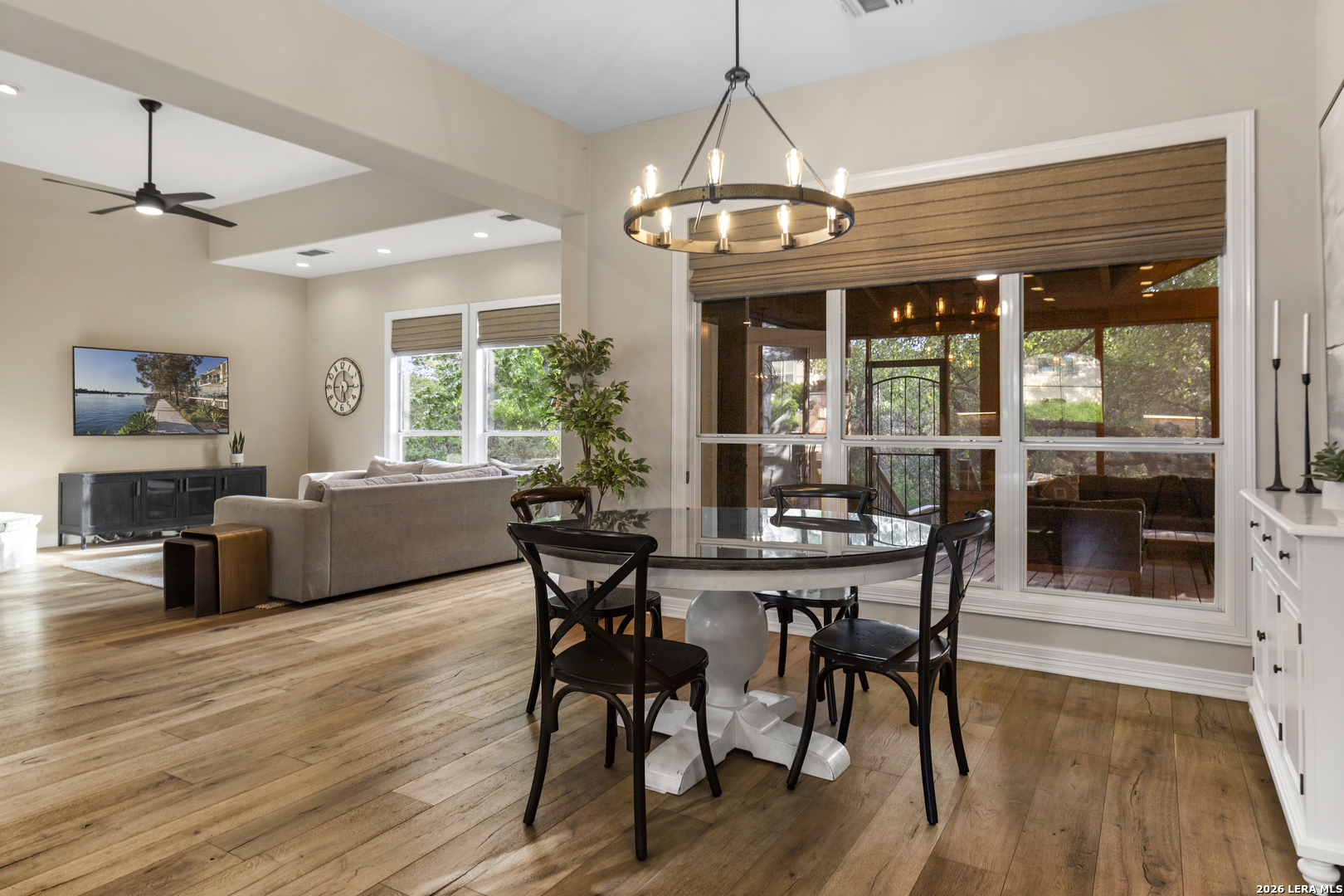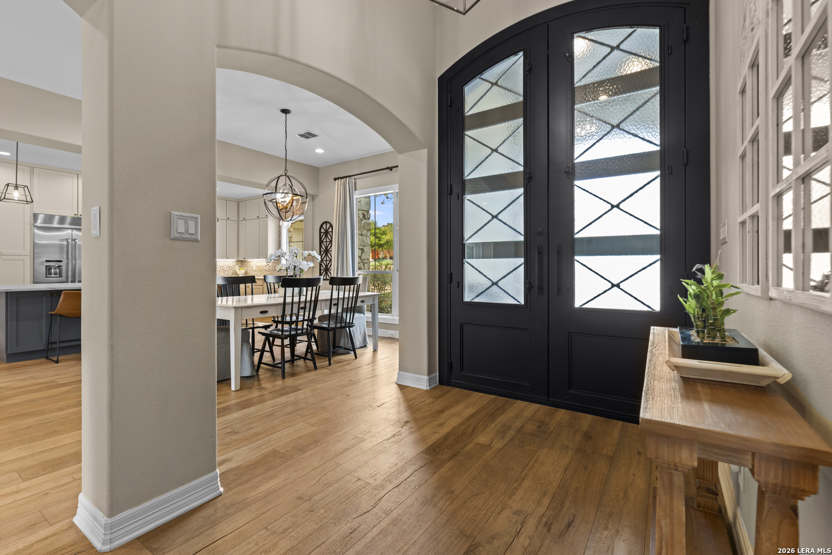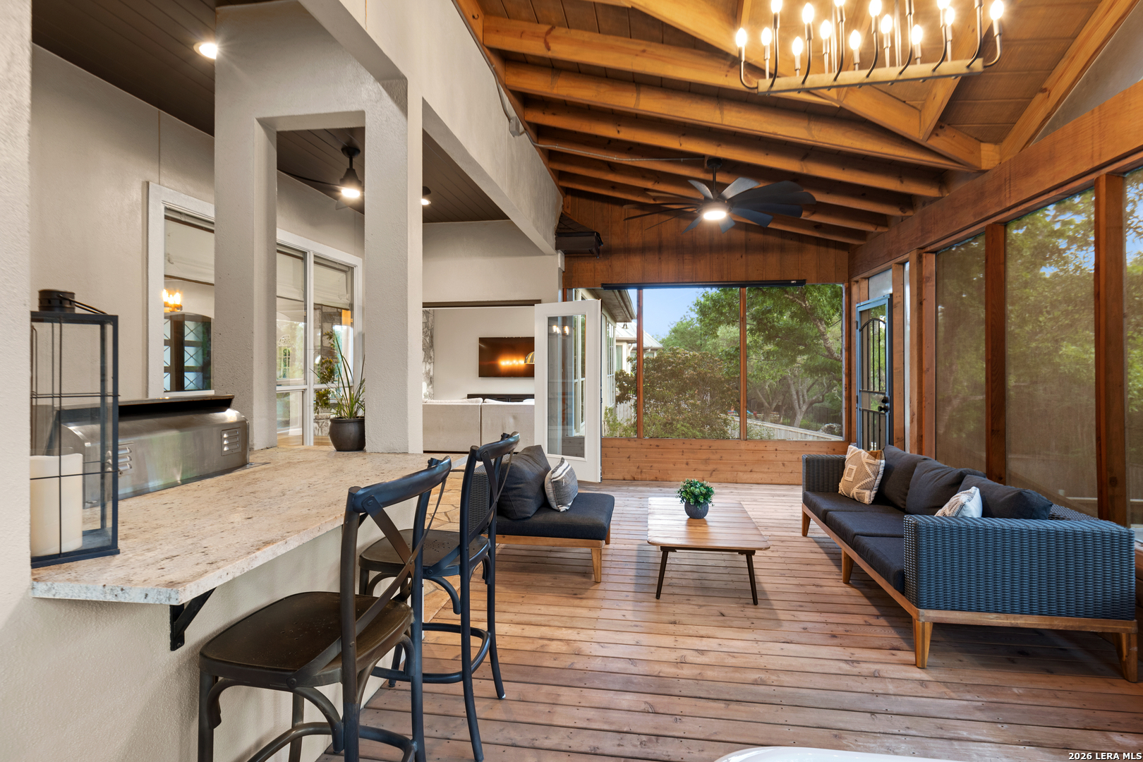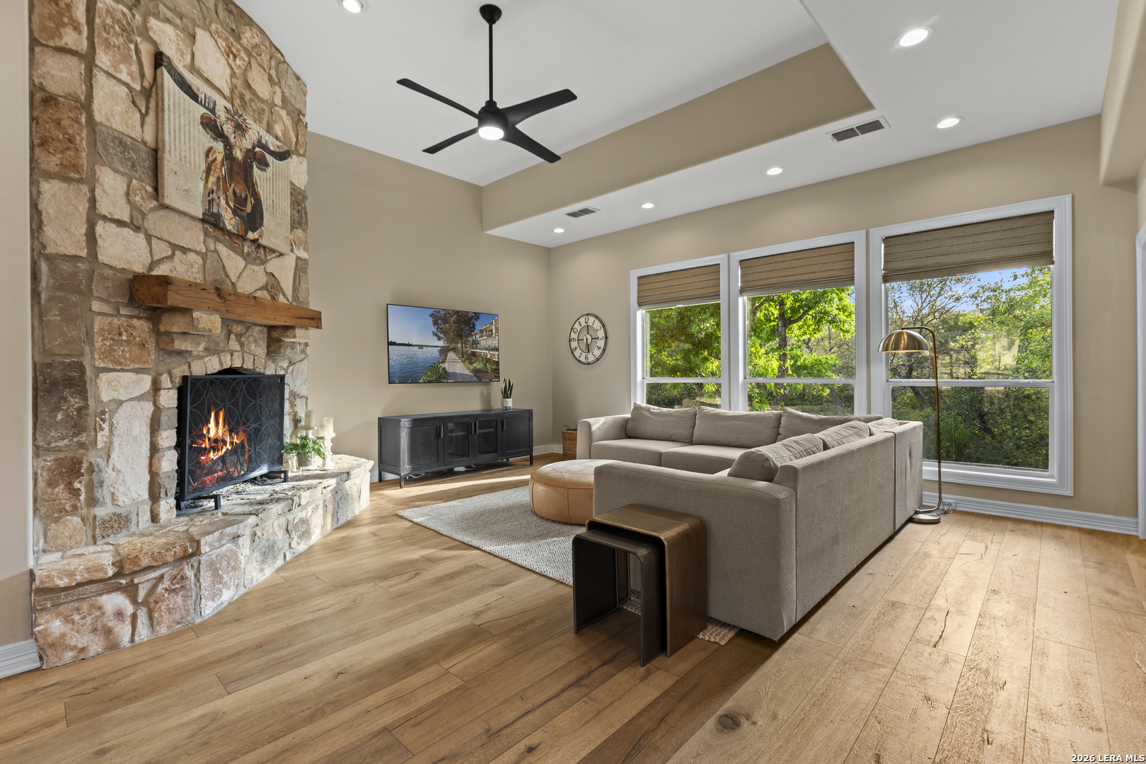 Greenbelt privacy, a screened outdoor living retreat, and fully renovated kitchen and primary bath, 1938 Far Niente is the kind of home buyers hope to find in The Vineyard, but rarely see come on market. Tucked at the end of a quiet cul de sac in the exclusive Province at The Vineyard, this beautiful custom home sits on a 0.3 acre greenbelt lot, framed by mature oaks and thoughtfully transformed with extensive, high level renovations throughout. The gourmet kitchen, featuring custom cabinetry, quartzite counters, a designer Walker Zanger backsplash, and a high end appliance package including a Jenn Air built in refrigerator and Monogram gas range. The main living room centers around a stone fireplace, and is framed by expansive windows which overlook the greenbelt. Wide plank engineered hardwood floors run throughout the main level. Outdoor living has been completely reimagined to maximize both privacy and enjoyment. A screened in porch with integrated lighting, outdoor kitchen, and hot tub creates a true extension of the home, while a lower deck and fire pit seating area offer additional spaces to gather beneath the canopy of mature trees. The primary suite on the main level serves as a private retreat, featuring a fully renovated bathroom in 2026 with a freestanding soaking tub, walk in glass shower, updated cabinetry, and refined finishes. A separate guest suite downstairs, thoughtfully positioned away from the primary, provides ideal privacy for visitors. A study with custom built ins completes the first floor. Upstairs offers versatility with a spacious game room, a private secondary suite, and two additional bedrooms connected by a Jack and Jill bath, each enhanced with updated fixtures and finishes, and new carpet. A second study sits alongside a kitchenette, and flexible bonus space in the converted attic provides room to live, work, and unwind. Located within walking distance to the neighborhood pool and Vineyard Ranch Elementary School, and with bus service to Lopez Middle School and Reagan High School, this home offers a rare opportunity to enjoy a fully renovated property on a premier greenbelt lot in one of North Central San Antonio's most sought after communities.