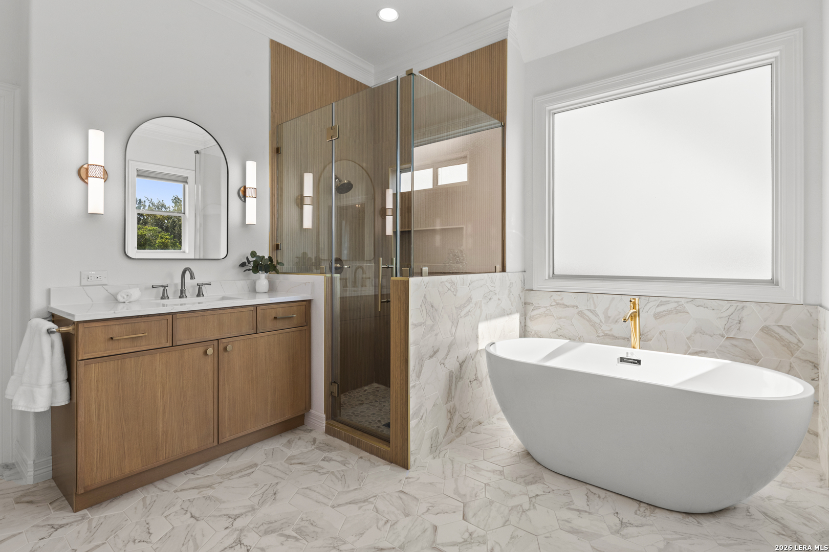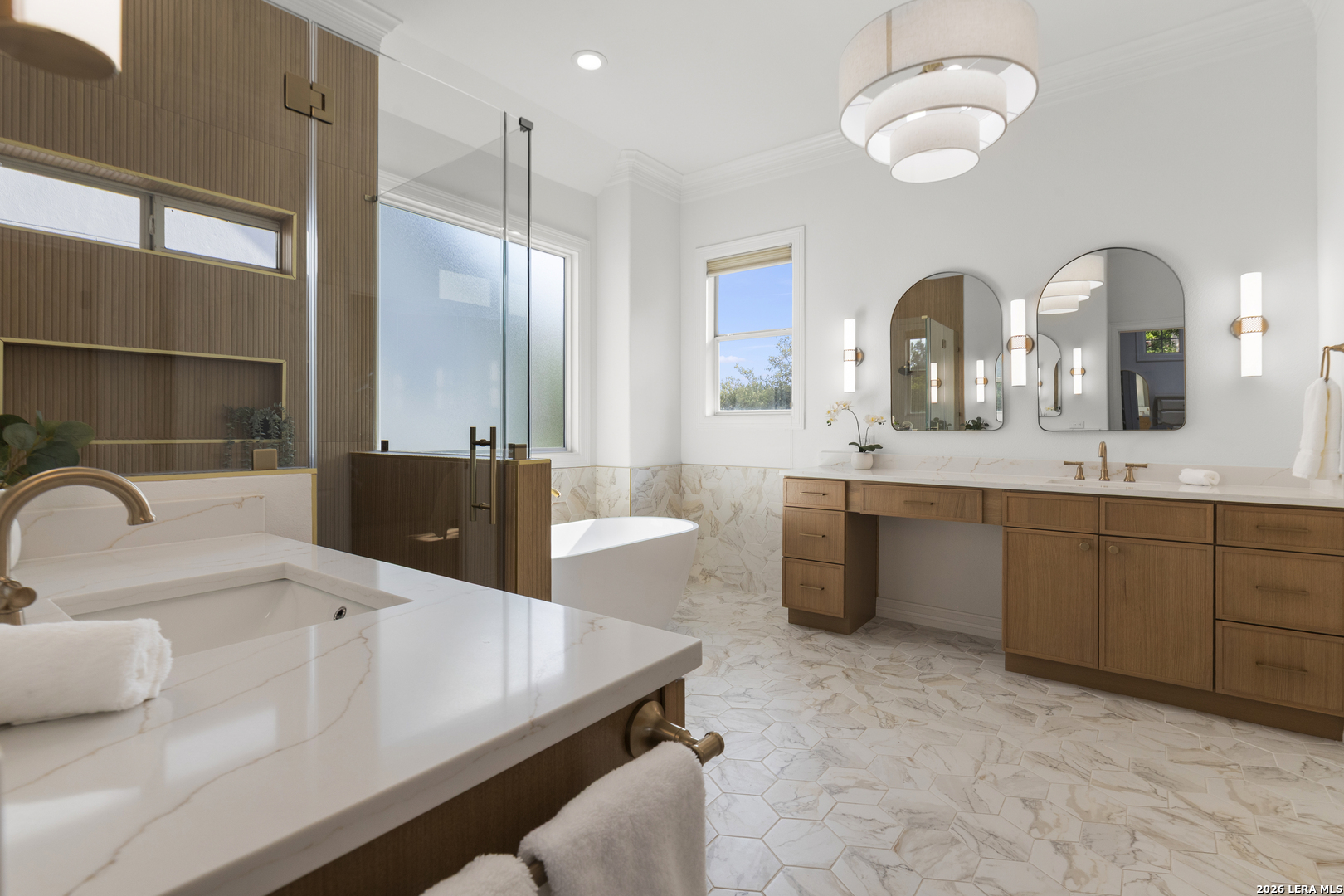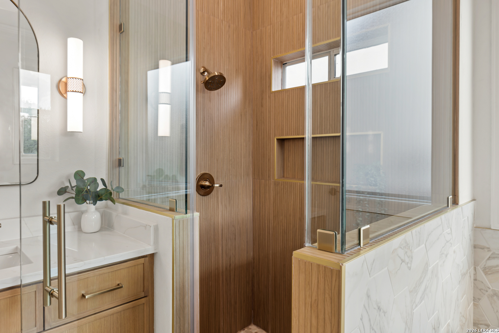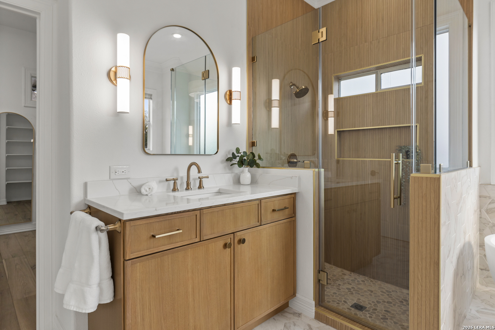 Greenbelt privacy, a screened outdoor living retreat, and fully renovated kitchen and primary bath, 1938 Far Niente is the kind of home buyers hope to find in The Vineyard, but rarely see come on market. Tucked at the end of a quiet cul de sac in the exclusive Province at The Vineyard, this beautiful custom home sits on a 0.3 acre greenbelt lot, framed by mature oaks and thoughtfully transformed with extensive, high level renovations throughout. The gourmet kitchen, featuring custom cabinetry, quartzite counters, a designer Walker Zanger backsplash, and a high end appliance package including a Jenn Air built in refrigerator and Monogram gas range. The main living room centers around a stone fireplace, and is framed by expansive windows which overlook the greenbelt. Wide plank engineered hardwood floors run throughout the main level. Outdoor living has been completely reimagined to maximize both privacy and enjoyment. A screened in porch with integrated lighting, outdoor kitchen, and hot tub creates a true extension of the home, while a lower deck and fire pit seating area offer additional spaces to gather beneath the canopy of mature trees. The primary suite on the main level serves as a private retreat, featuring a fully renovated bathroom in 2026 with a freestanding soaking tub, walk in glass shower, updated cabinetry, and refined finishes. A separate guest suite downstairs, thoughtfully positioned away from the primary, provides ideal privacy for visitors. A study with custom built ins completes the first floor. Upstairs offers versatility with a spacious game room, a private secondary suite, and two additional bedrooms connected by a Jack and Jill bath, each enhanced with updated fixtures and finishes, and new carpet. A second study sits alongside a kitchenette, and flexible bonus space in the converted attic provides room to live, work, and unwind. Located within walking distance to the neighborhood pool and Vineyard Ranch Elementary School, and with bus service to Lopez Middle School and Reagan High School, this home offers a rare opportunity to enjoy a fully renovated property on a premier greenbelt lot in one of North Central San Antonio's most sought after communities.