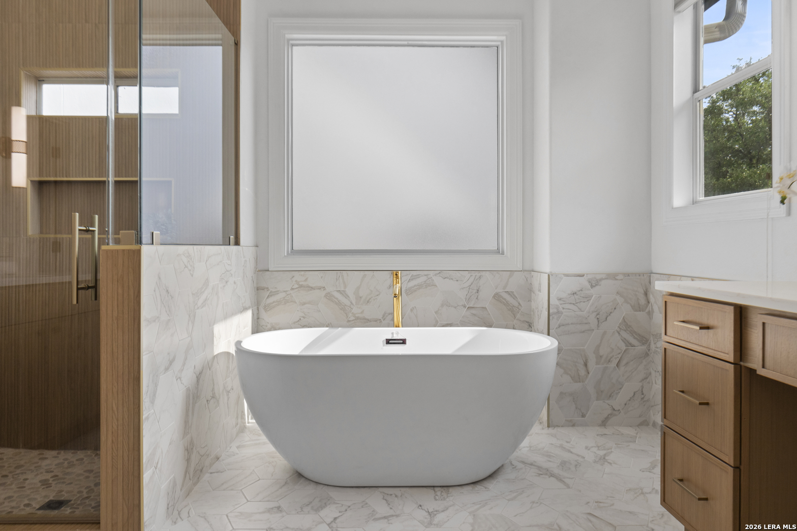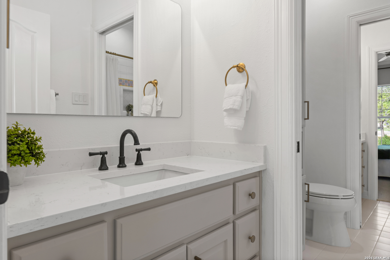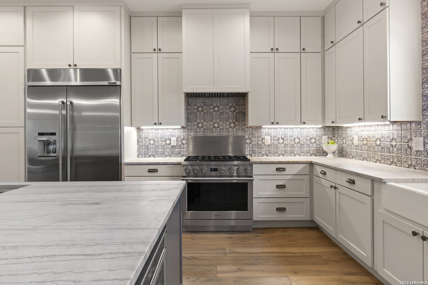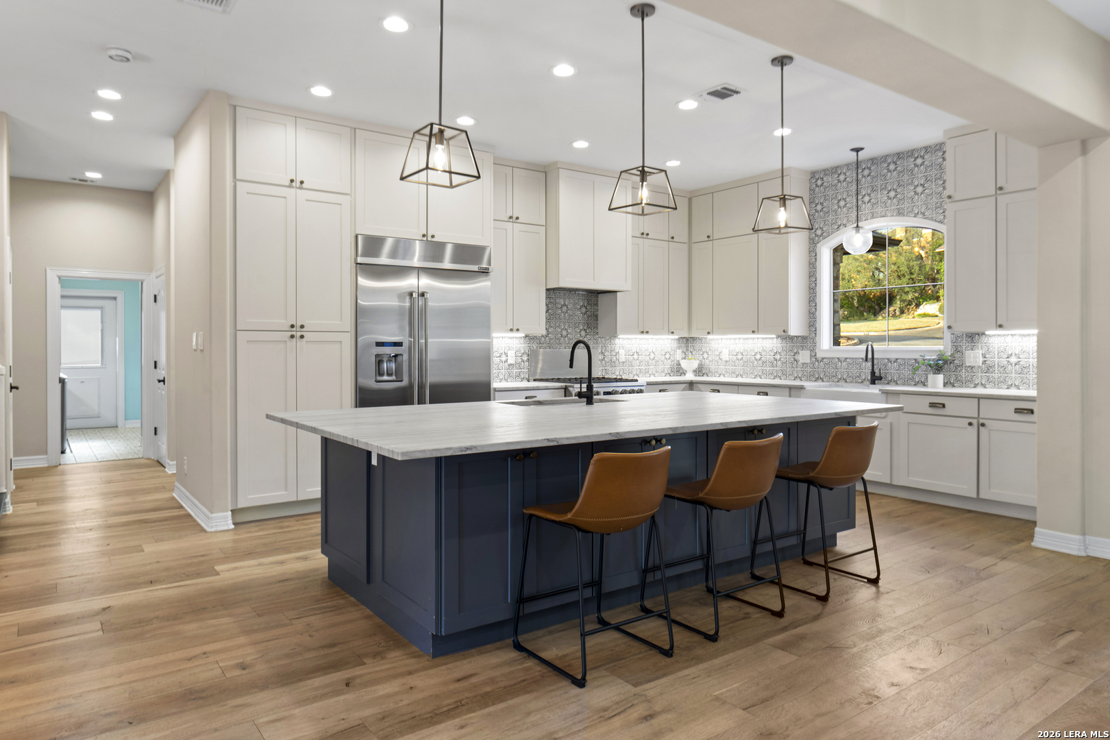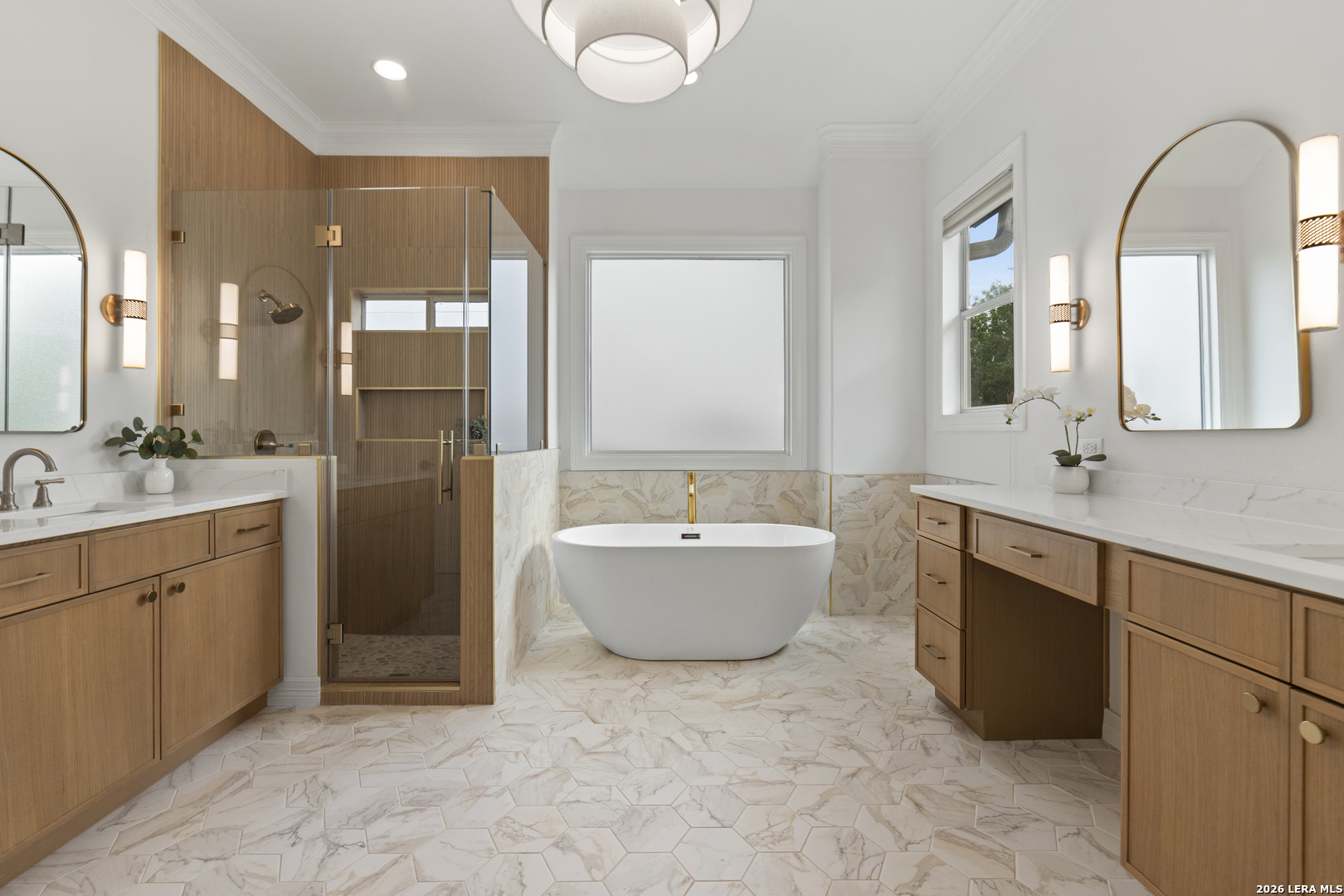 Greenbelt privacy, a screened outdoor living retreat, and fully renovated kitchen and primary bath, 1938 Far Niente is the kind of home buyers hope to find in The Vineyard, but rarely see come on market. Tucked at the end of a quiet cul de sac in the exclusive Province at The Vineyard, this beautiful custom home sits on a 0.3 acre greenbelt lot, framed by mature oaks and thoughtfully transformed with extensive, high level renovations throughout. The gourmet kitchen, featuring custom cabinetry, quartzite counters, a designer Walker Zanger backsplash, and a high end appliance package including a Jenn Air built in refrigerator and Monogram gas range. The main living room centers around a stone fireplace, and is framed by expansive windows which overlook the greenbelt. Wide plank engineered hardwood floors run throughout the main level. Outdoor living has been completely reimagined to maximize both privacy and enjoyment. A screened in porch with integrated lighting, outdoor kitchen, and hot tub creates a true extension of the home, while a lower deck and fire pit seating area offer additional spaces to gather beneath the canopy of mature trees. The primary suite on the main level serves as a private retreat, featuring a fully renovated bathroom in 2026 with a freestanding soaking tub, walk in glass shower, updated cabinetry, and refined finishes. A separate guest suite downstairs, thoughtfully positioned away from the primary, provides ideal privacy for visitors. A study with custom built ins completes the first floor. Upstairs offers versatility with a spacious game room, a private secondary suite, and two additional bedrooms connected by a Jack and Jill bath, each enhanced with updated fixtures and finishes, and new carpet. A second study sits alongside a kitchenette, and flexible bonus space in the converted attic provides room to live, work, and unwind. Located within walking distance to the neighborhood pool and Vineyard Ranch Elementary School, and with bus service to Lopez Middle School and Reagan High School, this home offers a rare opportunity to enjoy a fully renovated property on a premier greenbelt lot in one of North Central San Antonio's most sought after communities.