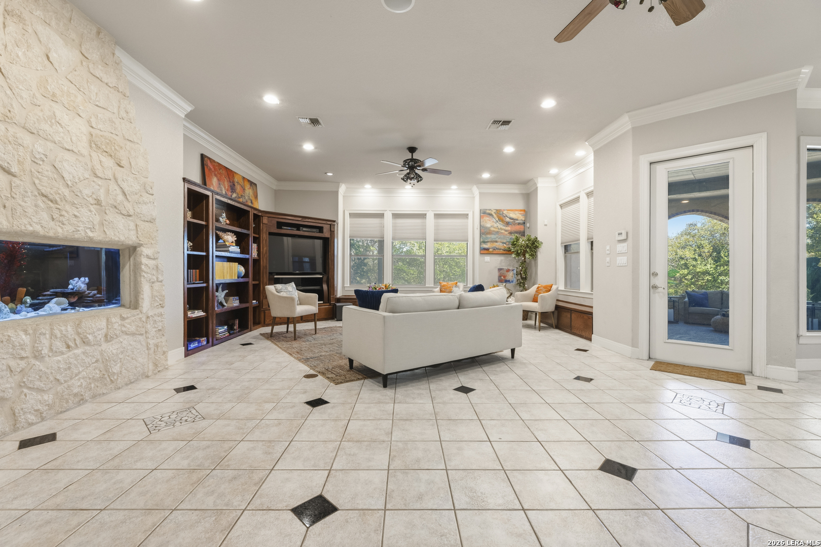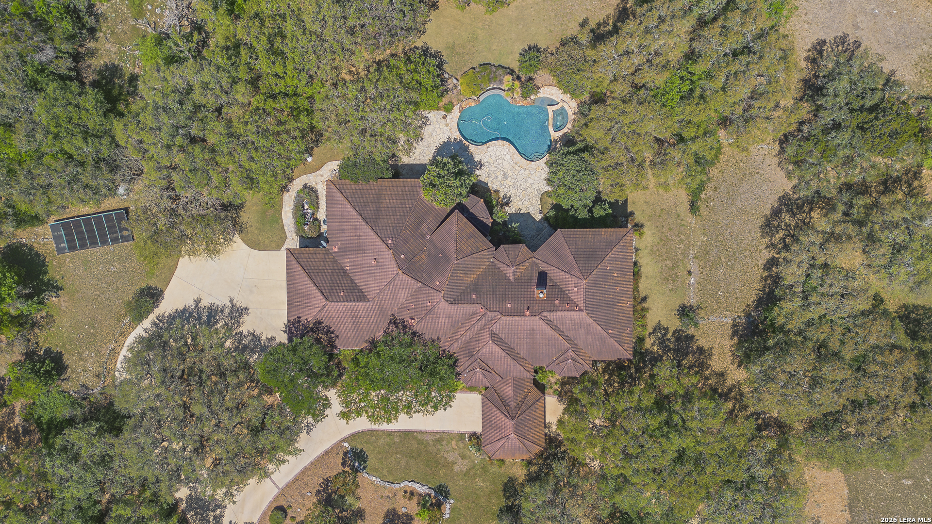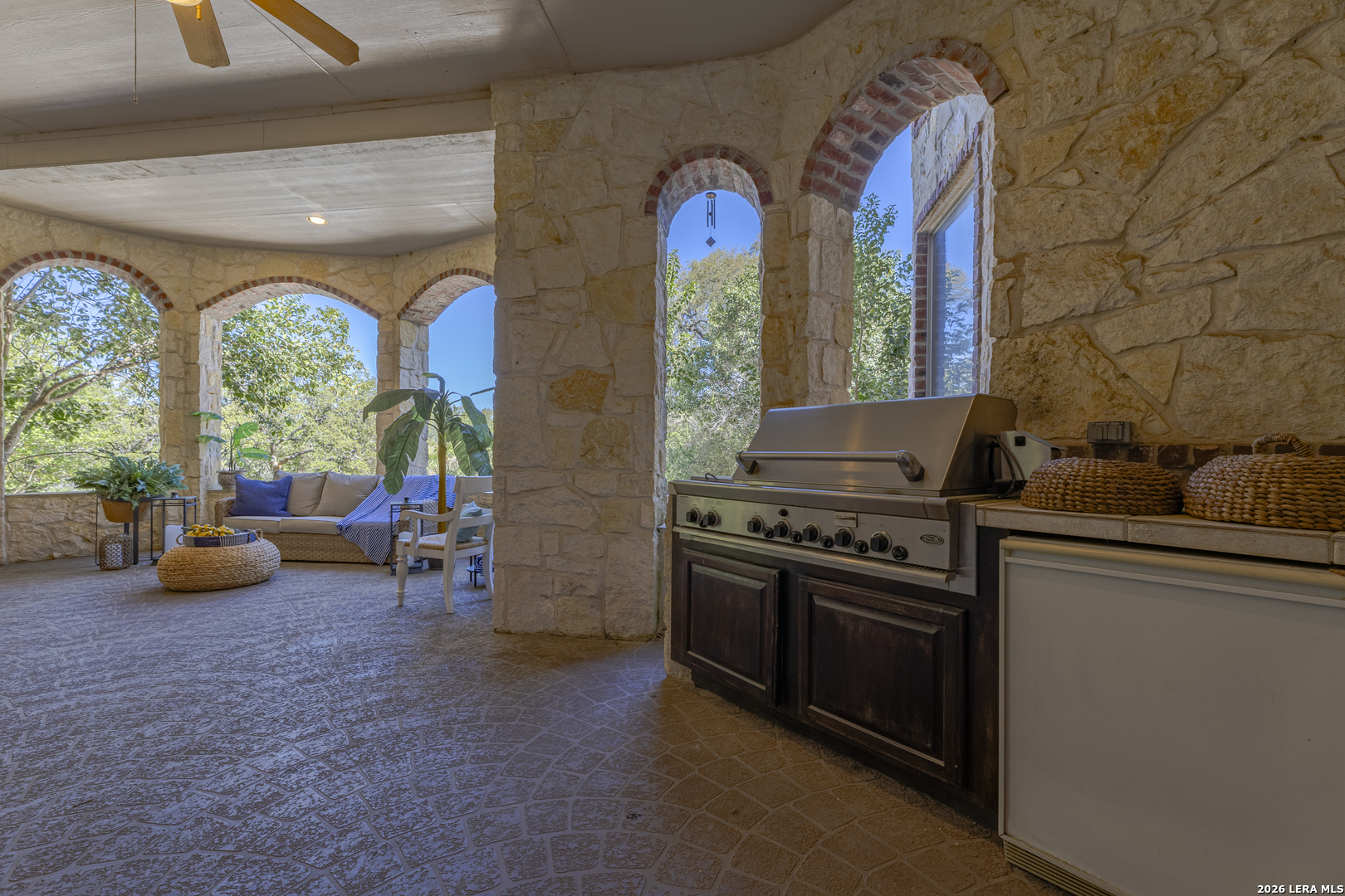 Welcome to your new, stunning home in Greystone where comfort, space, and Texas charm come together in a highly desirable San Antonio location! This beautifully maintained home offers a warm and inviting layout with generous living spaces, perfect for both everyday living and entertaining. This home is equipped with Solar Panels that will bring the electricity down. You have the added security of a guard gated community. Step inside to find an open-concept floor plan filled with natural light, featuring a spacious living area that flows seamlessly into the kitchen and dining space. The kitchen is a true centerpiece, complete with ample custom cabinetry, modern appliances, and plenty of counter space for meal prep or hosting gatherings. the sub-zero refrigerator and freezer are included. The woodwork in the home is absolutely gorgeous. You will absolutely enjoy the theater in this home, invite family or friends over for a fun, entertaining evening. Every bedroom has its own ensuite private bathroom. This home also features two primary suites. The primary suite provides a relaxing retreat with a well-appointed ensuite bath that features a separate walk in shower and garden tub and two walk-in closets, and is ready to be your own private retreat. Additional bedrooms are generously sized, offering flexibility for family, guests, or a secondary home office. You will also love having the game room upstairs, which can be a versatile room as well, for you. Designed with both elegance and intrigue, the home also showcases 3 custom Murphy doors-offering seamless hidden entryways that add character, privacy, and a touch of sophistication. Outside, enjoy a private backyard ideal for weekend barbecues, morning coffee, or simply unwinding after a long day. Whether you're entertaining or enjoying quiet evenings, this outdoor space is ready for it all. Conveniently located near shopping, dining, and major highways, this home offers the perfect balance of tranquility and accessibility. Don't miss your opportunity to own a move-in-ready gem in one of San Antonio's sought-after areas